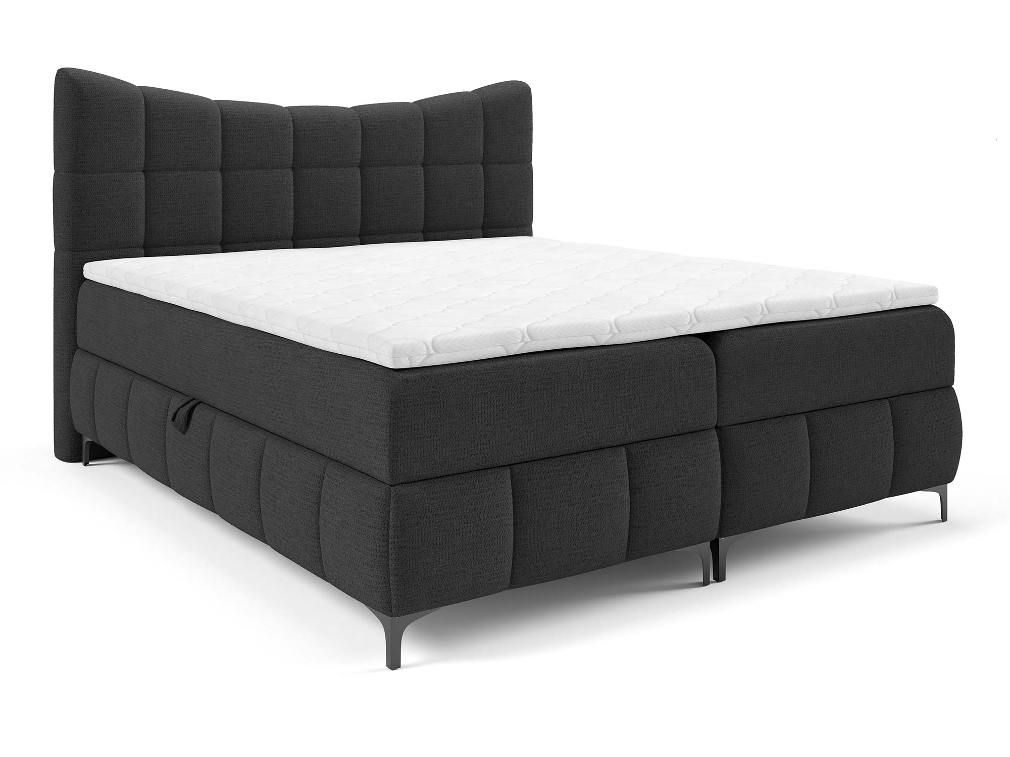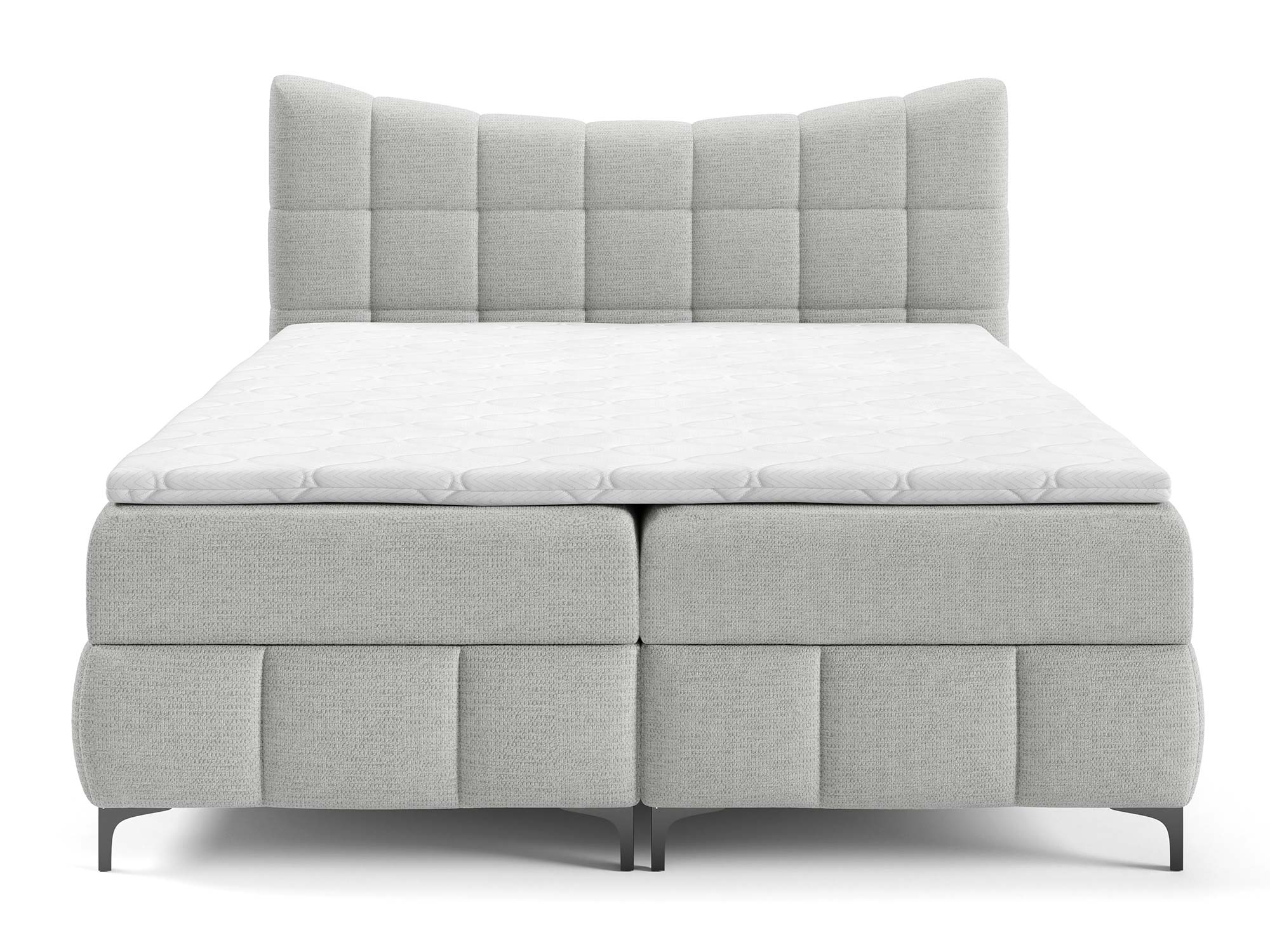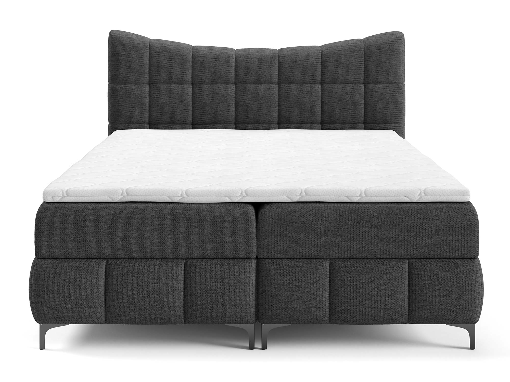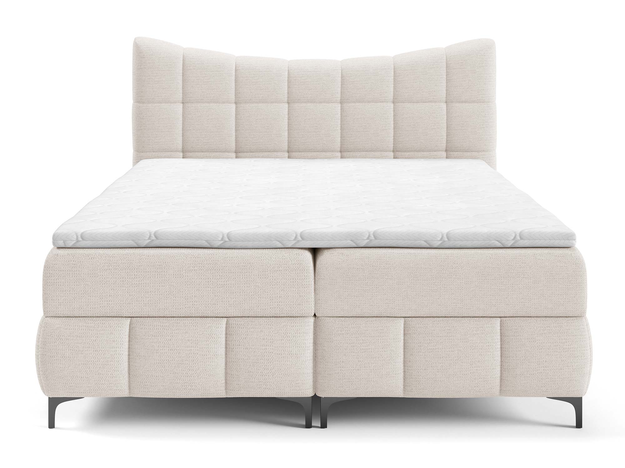 Materace częściowo obite tkaniną to nowoczesne rozwiązanie, które nadaje łóżku designerskiego charakteru. Zastosowany materac główny ze sprężynami bonellowymi zapewnia odpowiednie podparcie i równomierne rozłożenie ciężaru ciała. Dzięki dodatkowi toppera z pianki T-25 o wysokości 4 cm komfort snu wzrasta, a każdy poranek przynosi uczucie świeżości i wypoczynku.