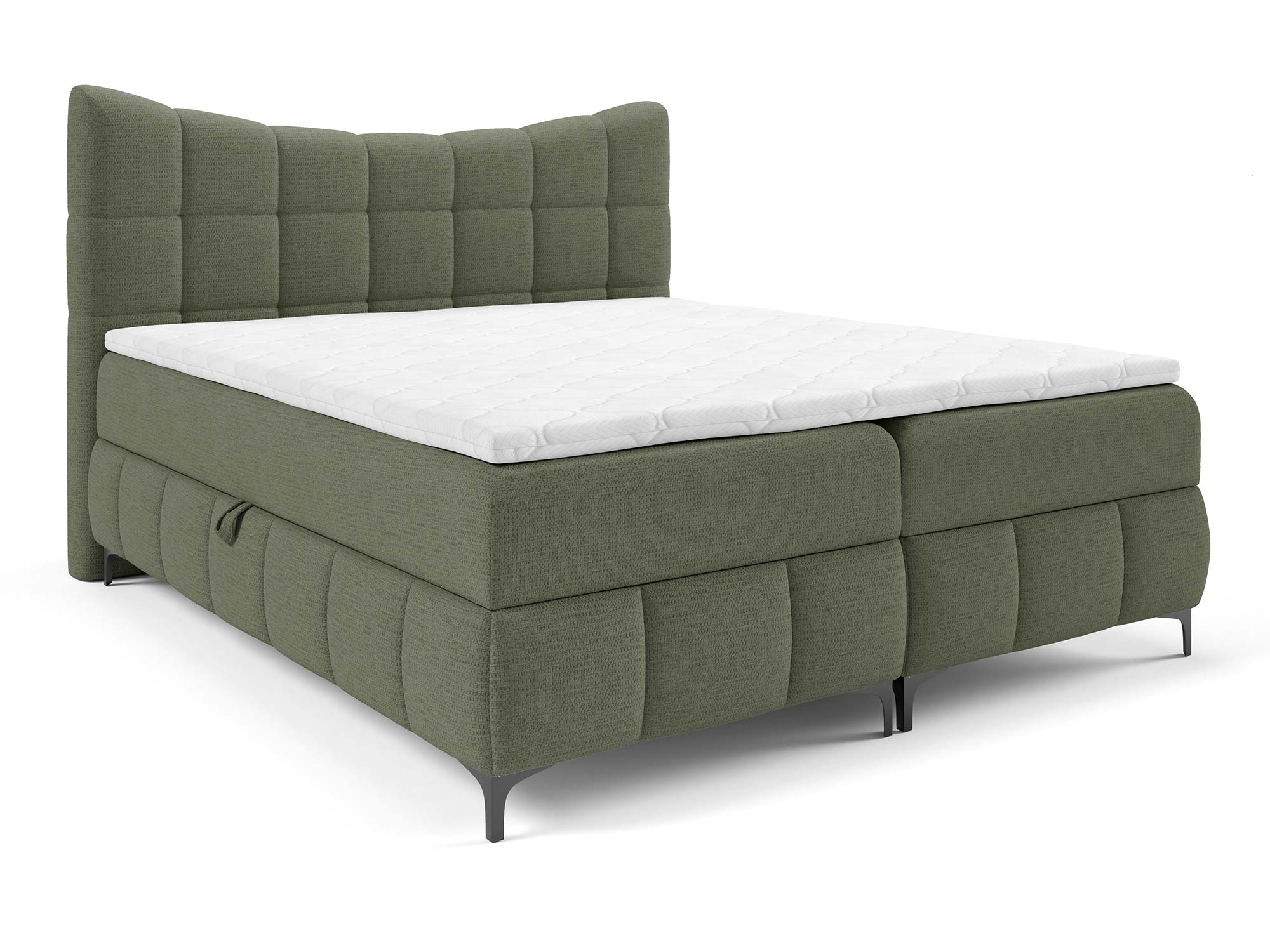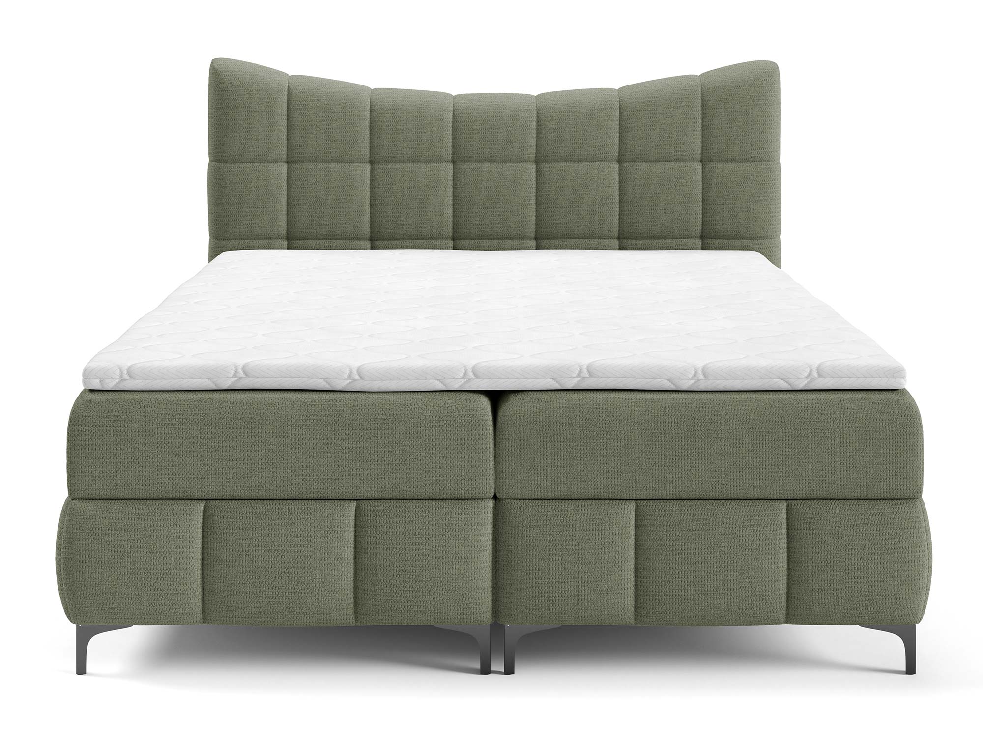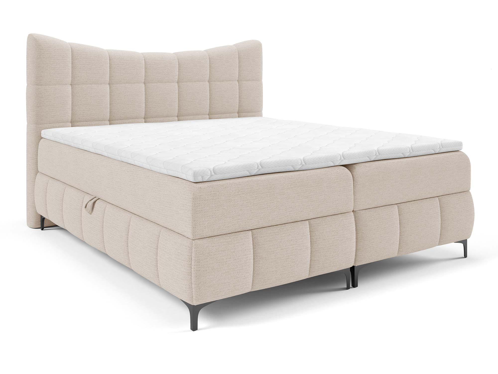 Materace częściowo obite tkaniną to nowoczesne rozwiązanie, które nadaje łóżku designerskiego charakteru. Zastosowany materac główny ze sprężynami bonellowymi zapewnia odpowiednie podparcie i równomierne rozłożenie ciężaru ciała. Dzięki dodatkowi toppera z pianki T-25 o wysokości 4 cm komfort snu wzrasta, a każdy poranek przynosi uczucie świeżości i wypoczynku.