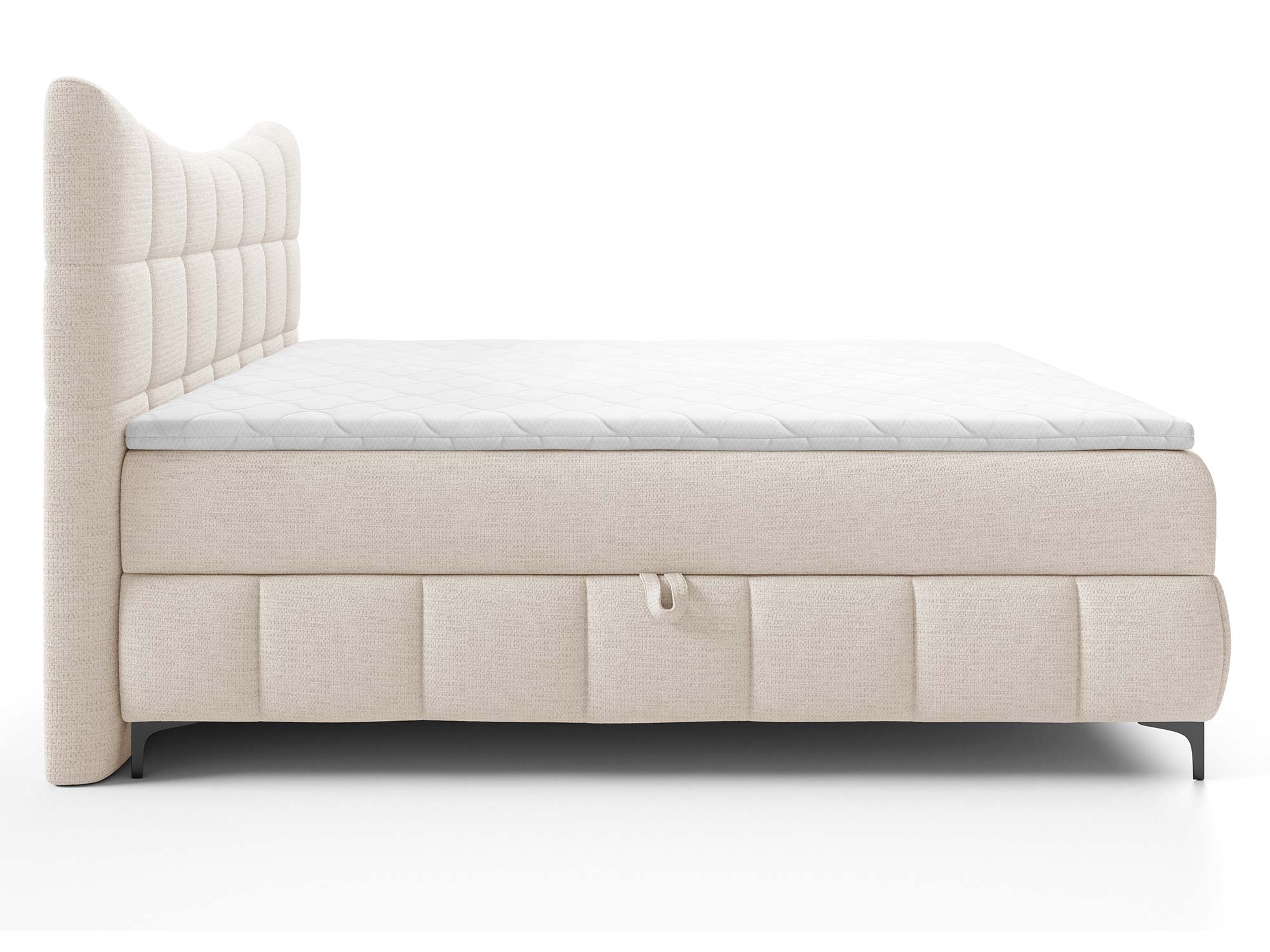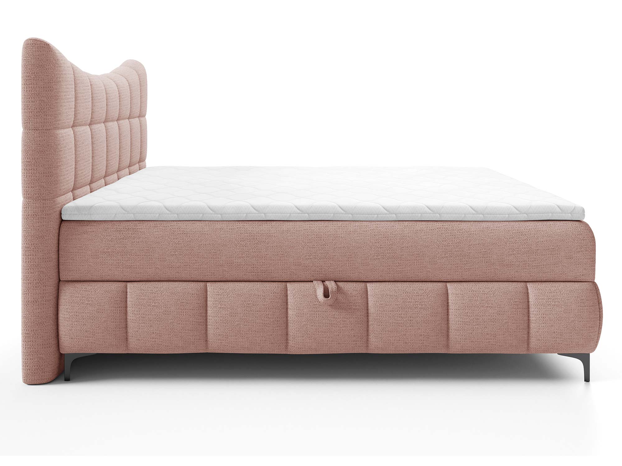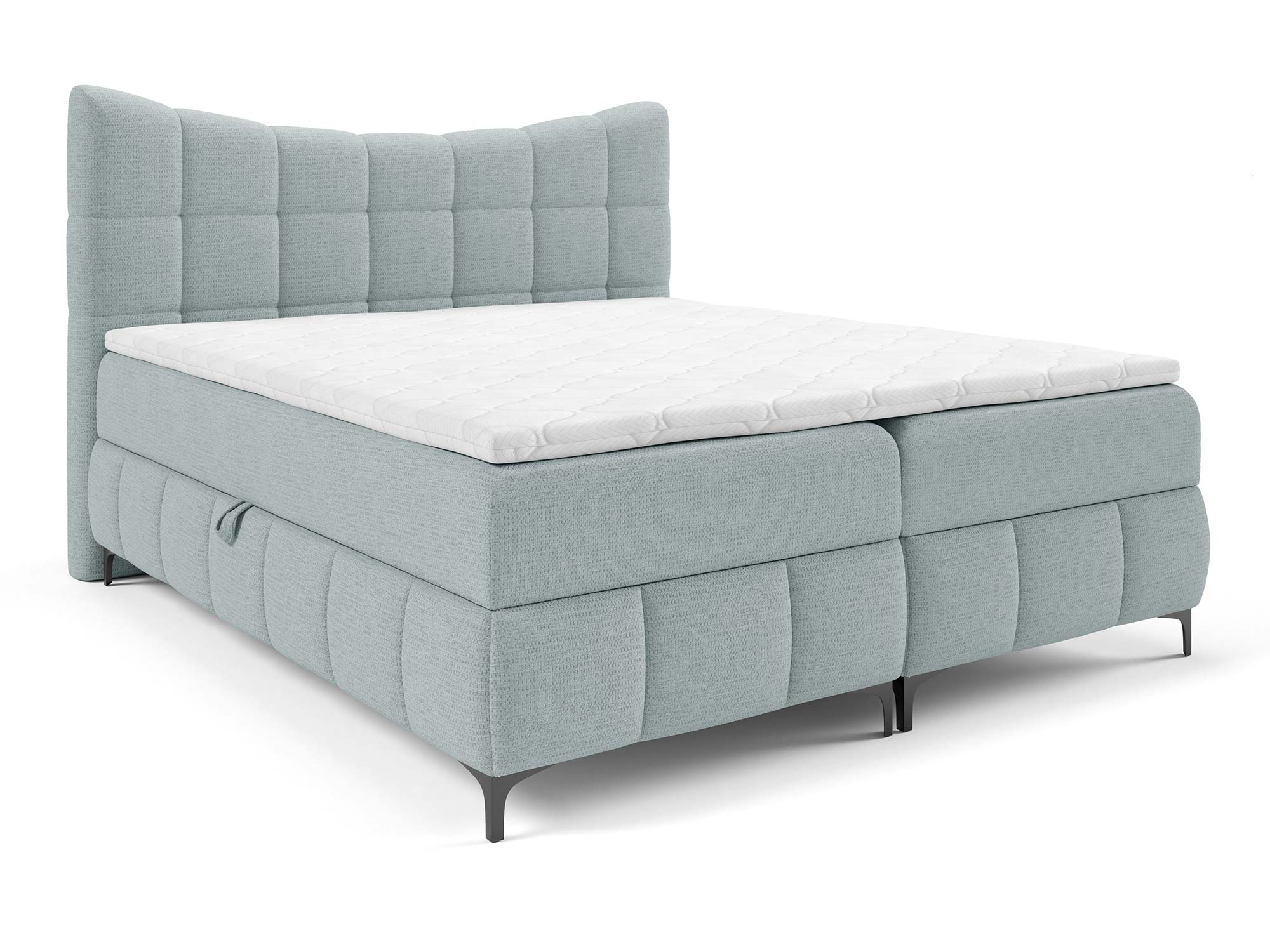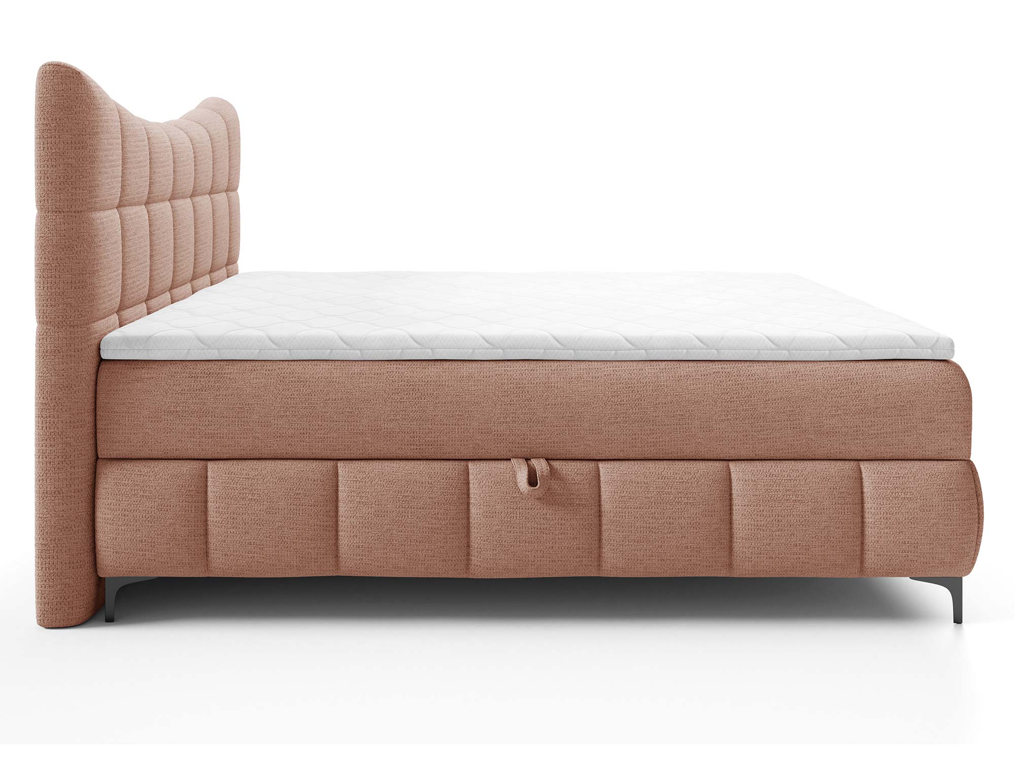 Materace częściowo obite tkaniną to nowoczesne rozwiązanie, które nadaje łóżku designerskiego charakteru. Zastosowany materac główny ze sprężynami bonellowymi zapewnia odpowiednie podparcie i równomierne rozłożenie ciężaru ciała. Dzięki dodatkowi toppera z pianki T-25 o wysokości 4 cm komfort snu wzrasta, a każdy poranek przynosi uczucie świeżości i wypoczynku.