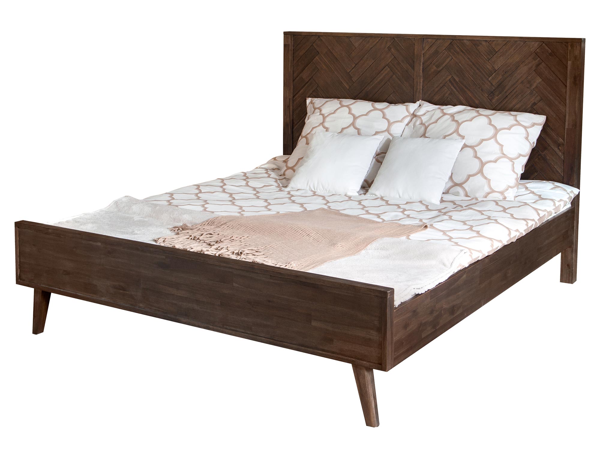 Zestaw sypialniany Ashton to doskonały wybór dla osób, które cenią elegancję, trwałość oraz funkcjonalność. Ciemnobrązowy kolor drewna akacji w połączeniu z frontami z intarsją nadaje sypialni wyjątkowego charakteru, który będzie przyciągać wzrok. Łóżko o szerokości 140 cm oraz dwie szafki nocne to idealne rozwiązanie do niewielkich, ale stylowych wnętrz. Wybierz zestaw Ashton i ciesz się komfortem oraz elegancją w swojej sypialni!