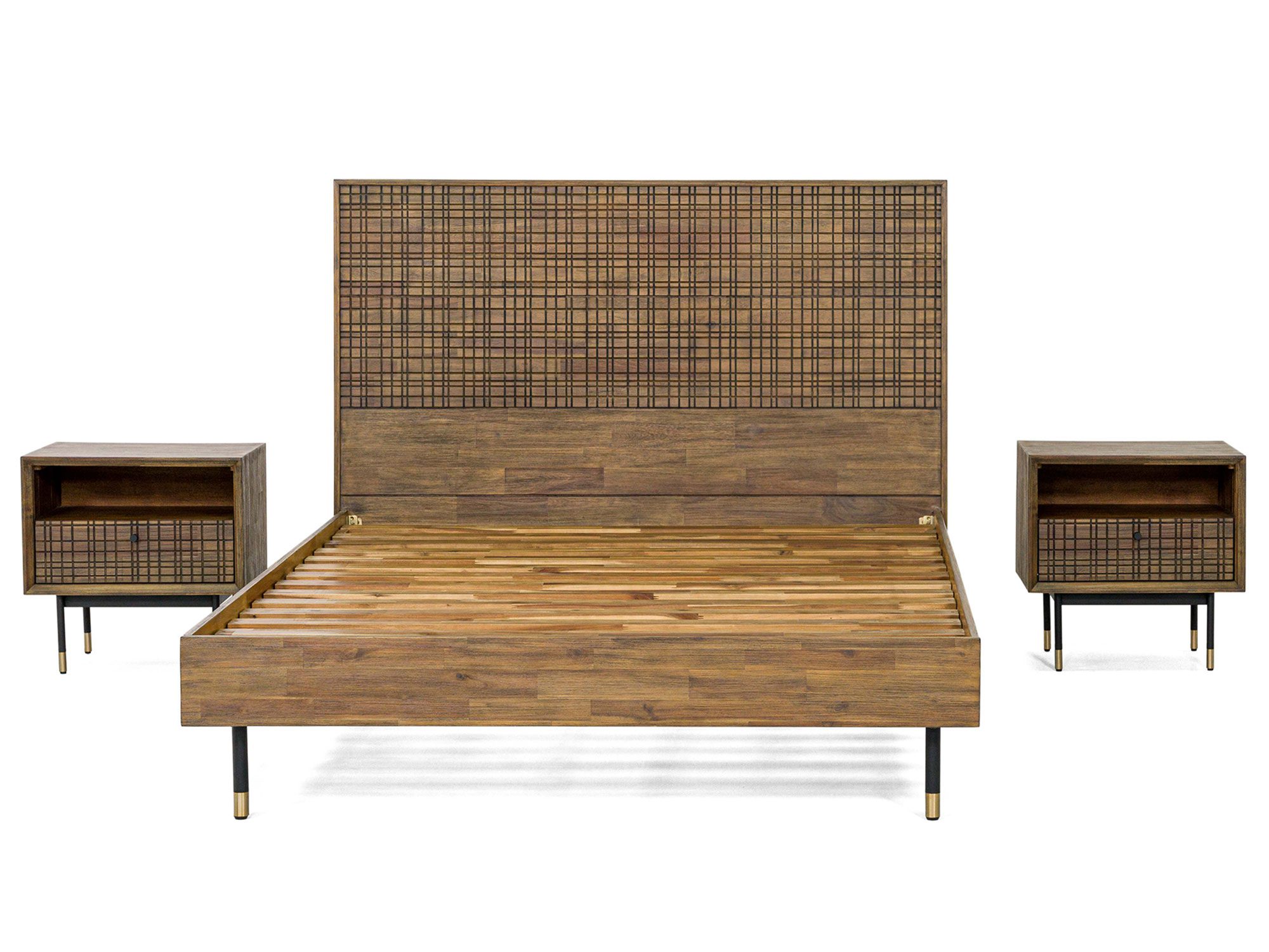 Zestaw sypialniany to elegancka i funkcjonalna propozycja dla osób poszukujących nowoczesnego wyposażenia do swojej sypialni. W skład zestawu wchodzi przestronne łóżko o szerokości 180 cm oraz dwie stylowe szafki nocne, które doskonale uzupełniają całość. Wykonane z trwałego drewna akacji oraz metalowych nóg, zestaw Maze łączy wysoką jakość z eleganckim designem, wprowadzając do Twojej sypialni nowoczesny i komfortowy klimat.