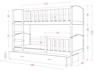 Łóżko piętrowe z pojemnikiem na pościel DUMBO