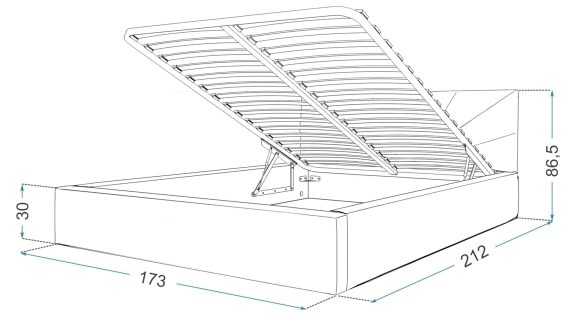 - Szerokość: 173 cm – Wysokość: 86,5 cm – Głębokość: 212 cm