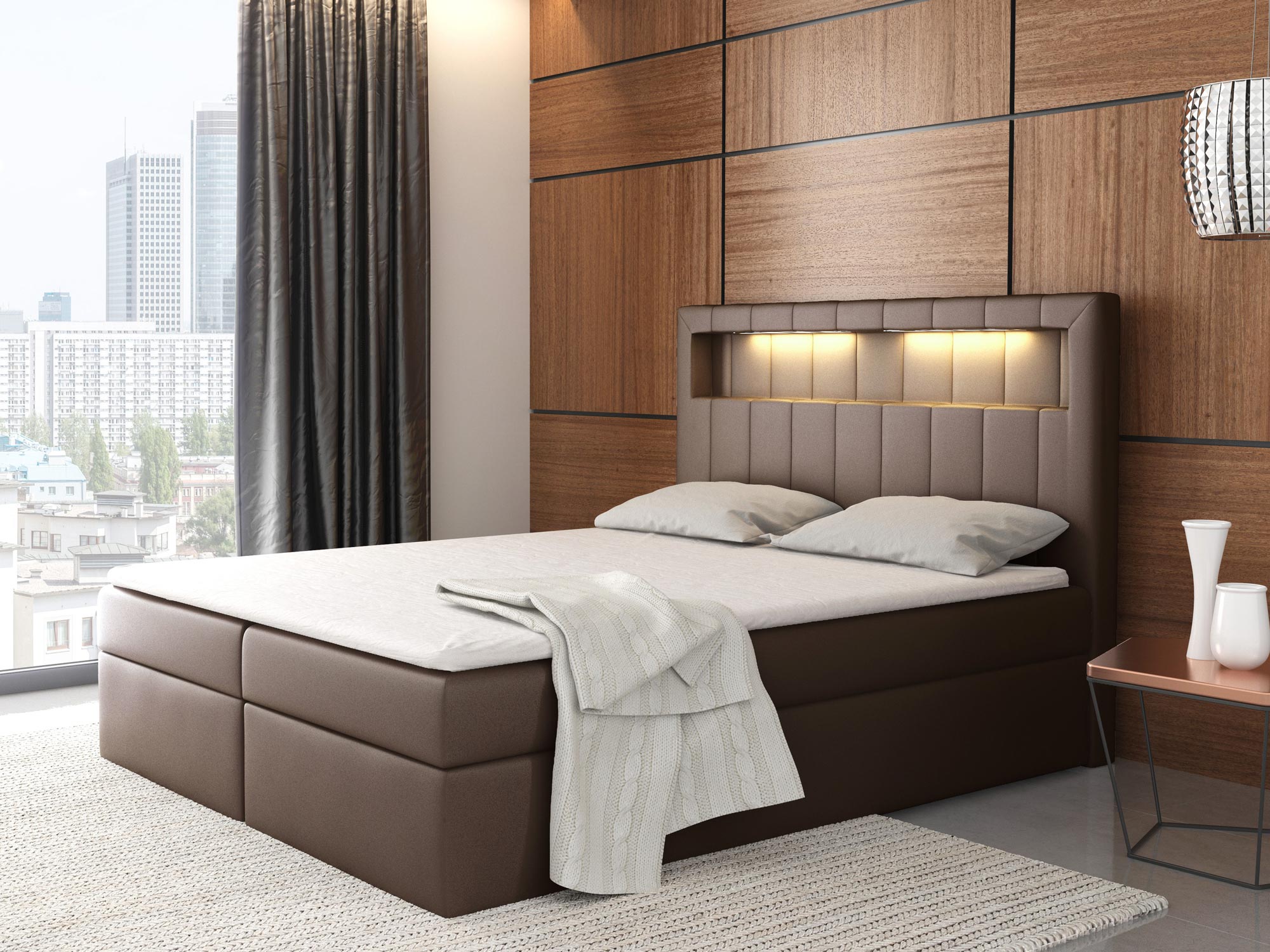 Łóżko Kontynentalne Z Led Wysokie Oparcie KOMAKI