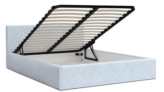 Konstrukcja opiera się na solidnym stelażu metalowym z siłownikami gazowymi, które umożliwiają łatwe i bezwysiłkowe uniesienie materaca, odsłaniając duży schowek na pościel, koce i sezonowe tekstylia. Brzozowe listwy sprężynujące typu flex, umieszczone w plastikowych kieszonkach, zapewniają idealne podparcie i wydłużają żywotność materaca.