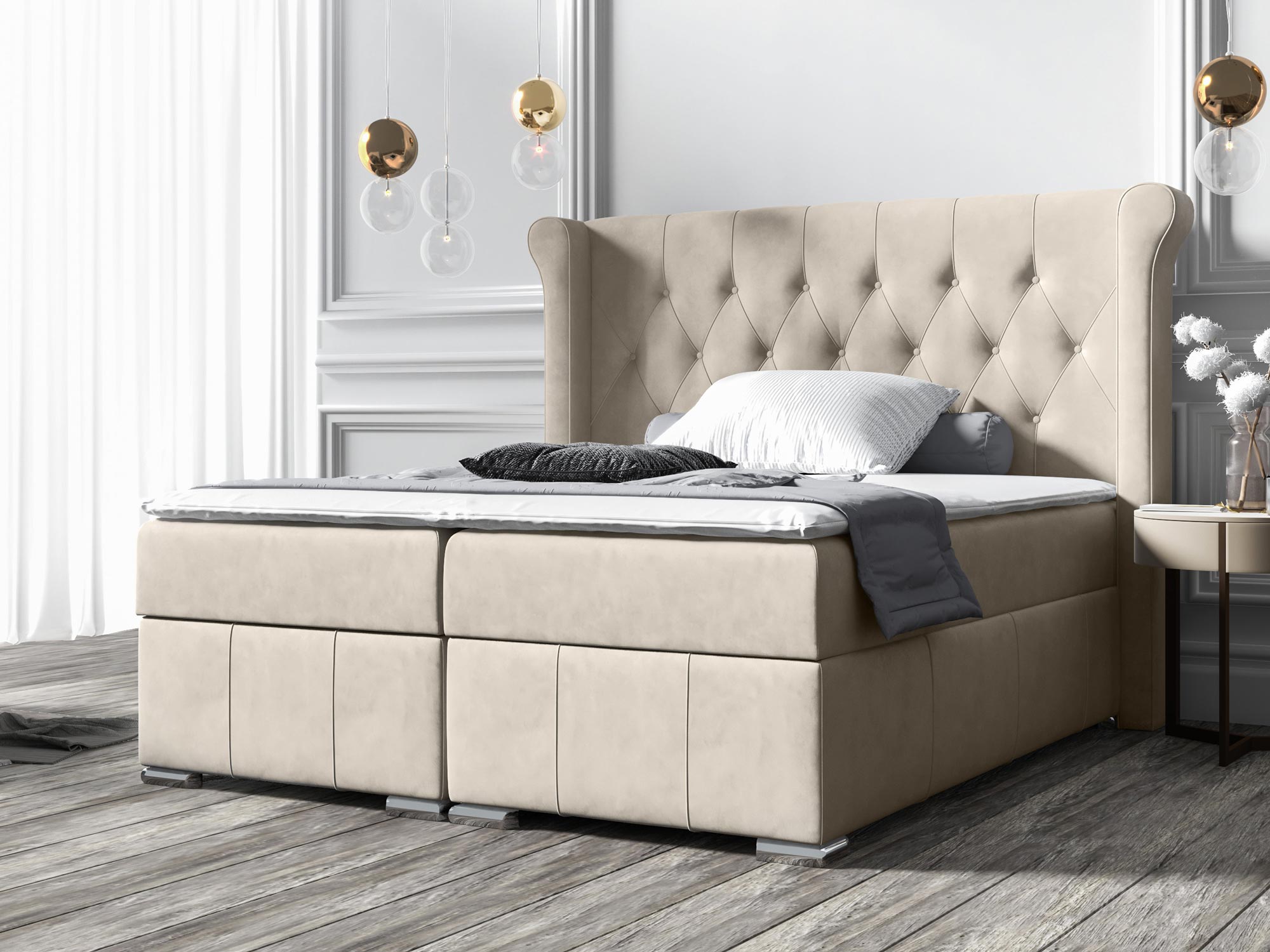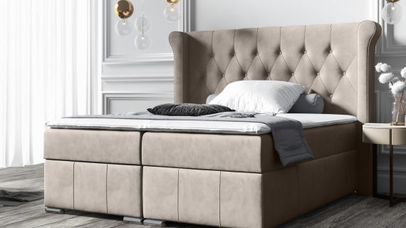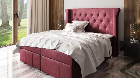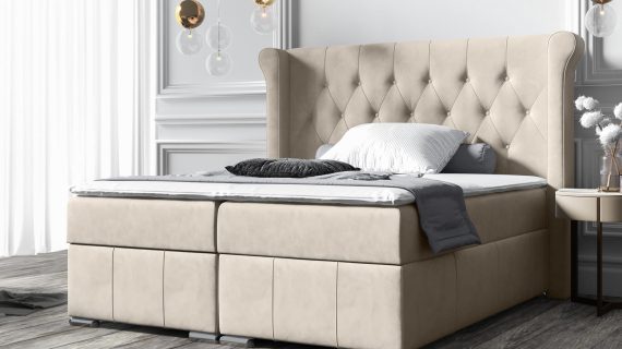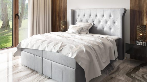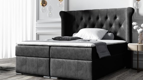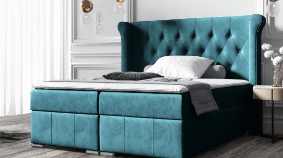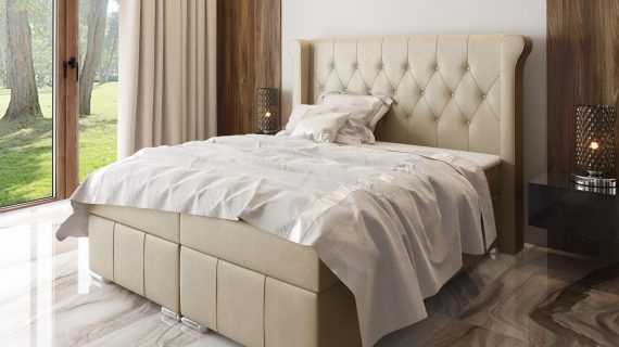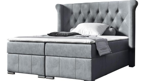 Przede wszystkim prezentowane łóżko kontynentalne posiada w zestawie dwa pojemniki na pościel otwierane z obu stron z automatami sprężynowymi, które ułatwiają otwieranie skrzyni. Co więcej mebel ten posiada wbudowany materac oraz dodatkowy materac nawierzchniowy, które zapewniają doskonały komfort wypoczynku.