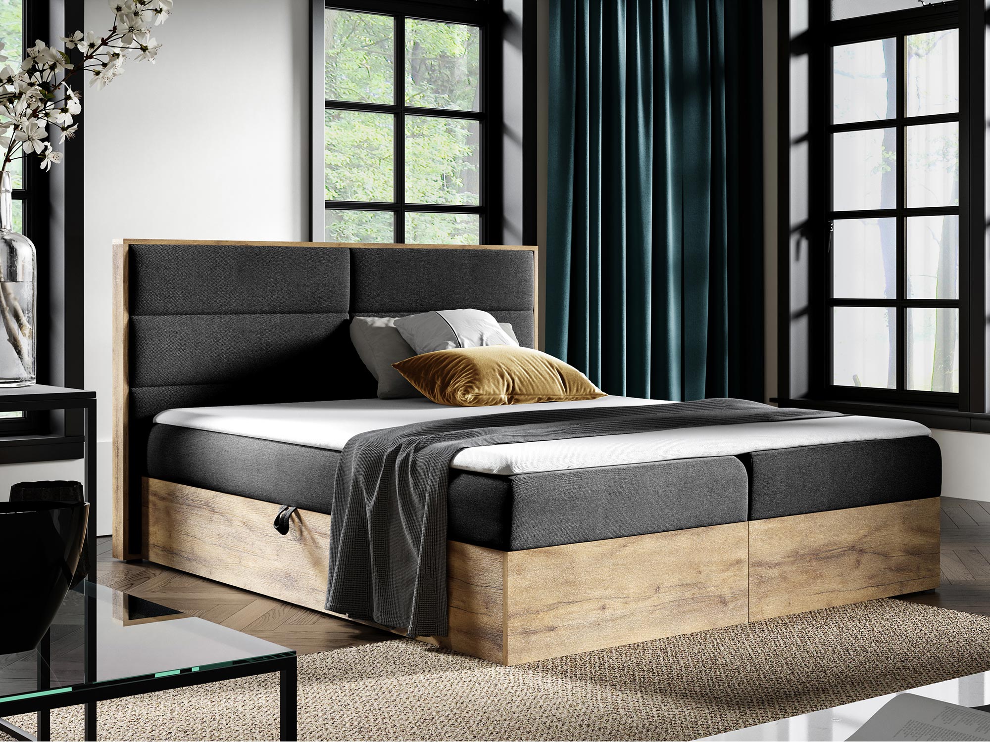 Wygodne Łóżko do Sypialni w Stylu Industrialnym CEDRIC 1 to idealne połączenie nowoczesnego designu i maksymalnej funkcjonalności. Stworzone z myślą o miłośnikach stylu industrialnego, łóżko to wyróżnia się eleganckim wykończeniem w kolorze dąb wotan oraz prostą, minimalistyczną konstrukcją. Wysoka jakość materiałów, w tym materac bonell i topper z pianki wysokoelastycznej T-25, zapewniają doskonały komfort snu. Dodatkowo, dwa pojemniki na pościel sprawiają, że łóżko jest nie tylko stylowe, ale również praktyczne.