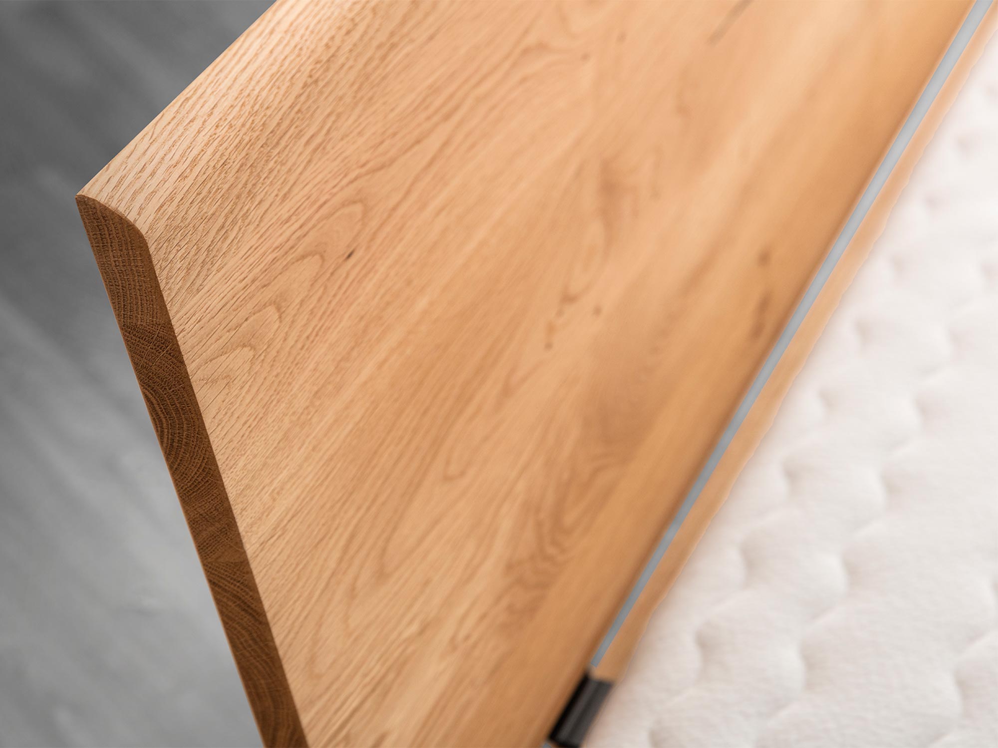 Elona A powstała z dbałością o każdy detal – od wyboru surowca, przez konstrukcję, aż po wykończenie. Główna rola należy tu do litego drewna dębowego: jego gęste, wyraźne słoje i naturalne przejścia kolorystyczne nadają meblowi charakteru premium. Każdy egzemplarz jest inny – tak jak dwa różne drzewa – dlatego Twoje łóżko będzie absolutnie unikatowe.