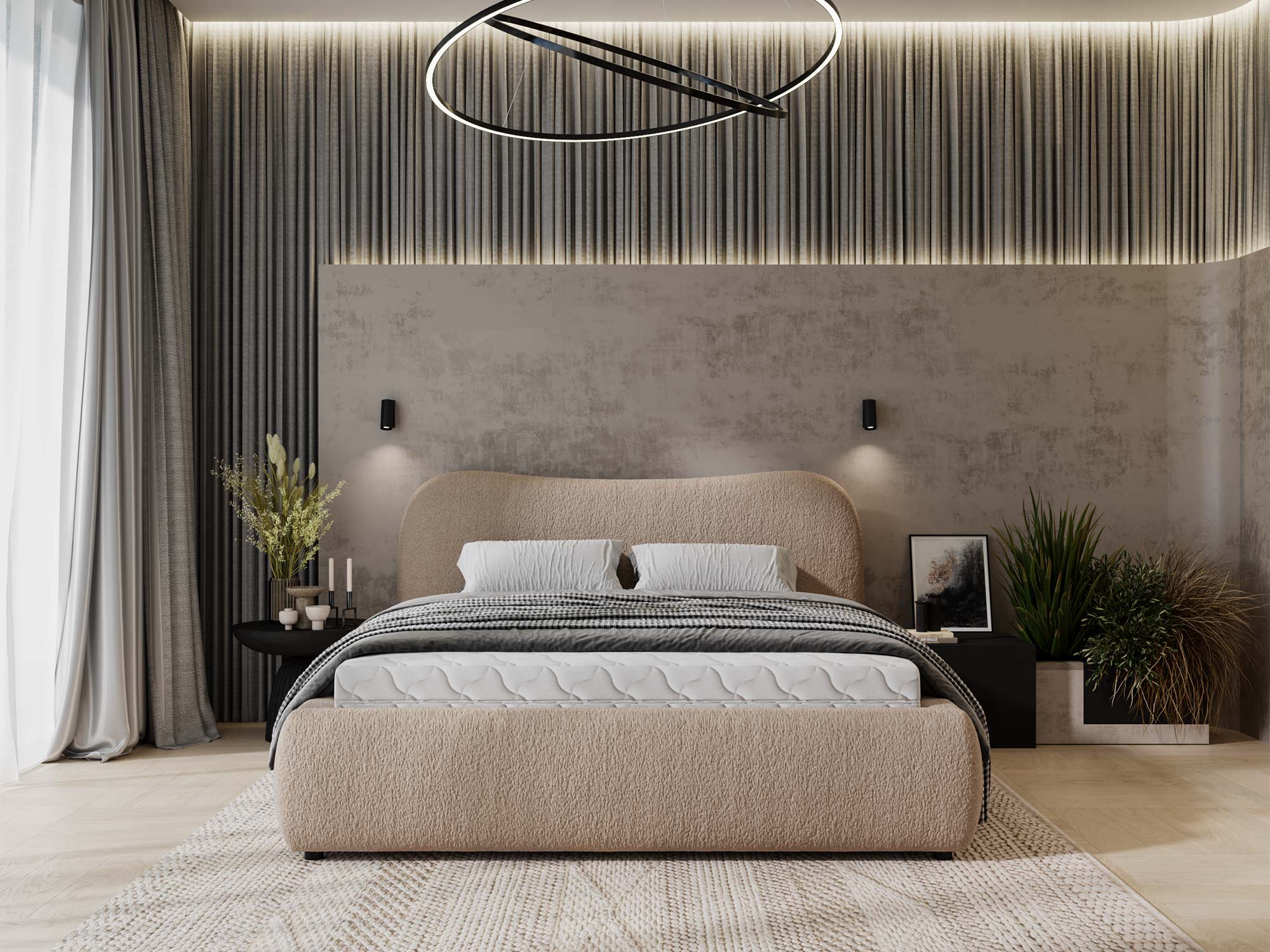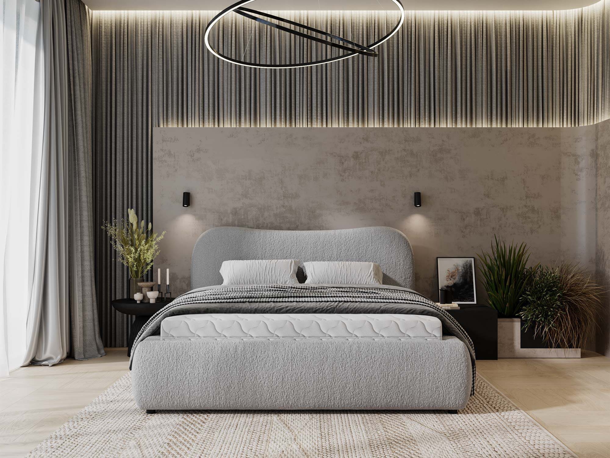 Łóżko DEMISA Różowe i Przytulne do Sypialni to doskonałe połączenie nowoczesności i elegancji, idealne dla osób, które cenią wyjątkowy styl i komfort. Różowa tkanina boucle wprowadza do sypialni ciepło i przytulność, a unikalny design sprawia, że łóżko DEMISA stanowi centralny punkt wnętrza, dodając mu klasy i wyrafinowania. Niezależnie od tego, czy preferujesz styl glamour, czy minimalistyczne aranżacje, łóżko DEMISA wkomponuje się w każdą przestrzeń, podkreślając jej indywidualny charakter.