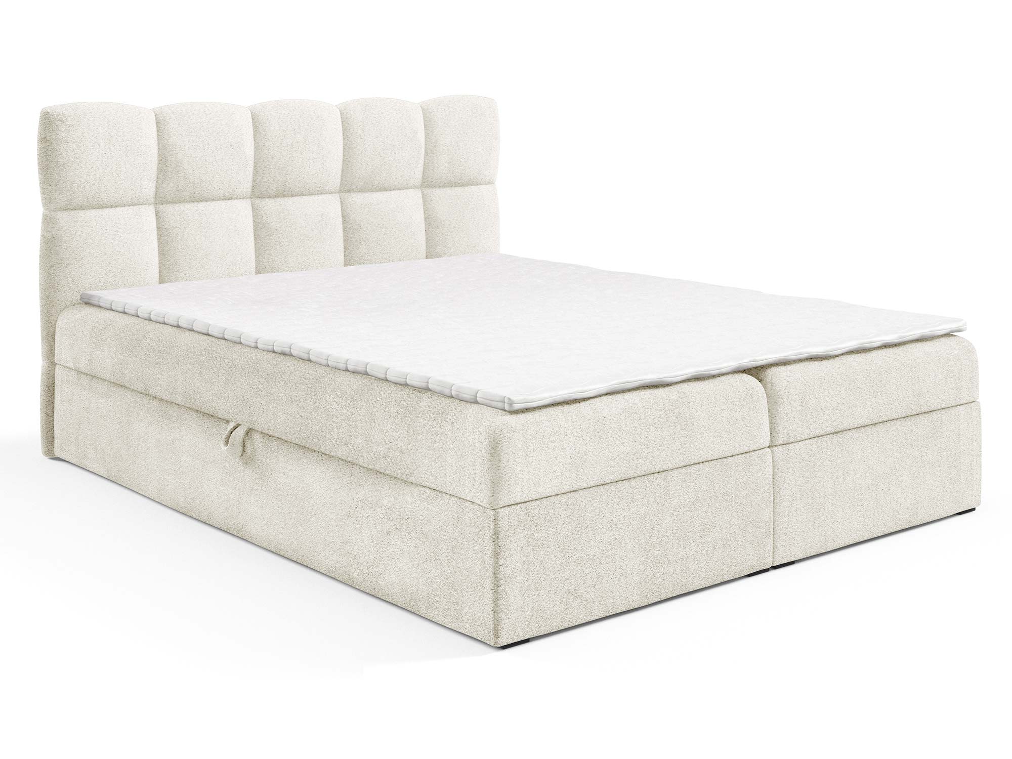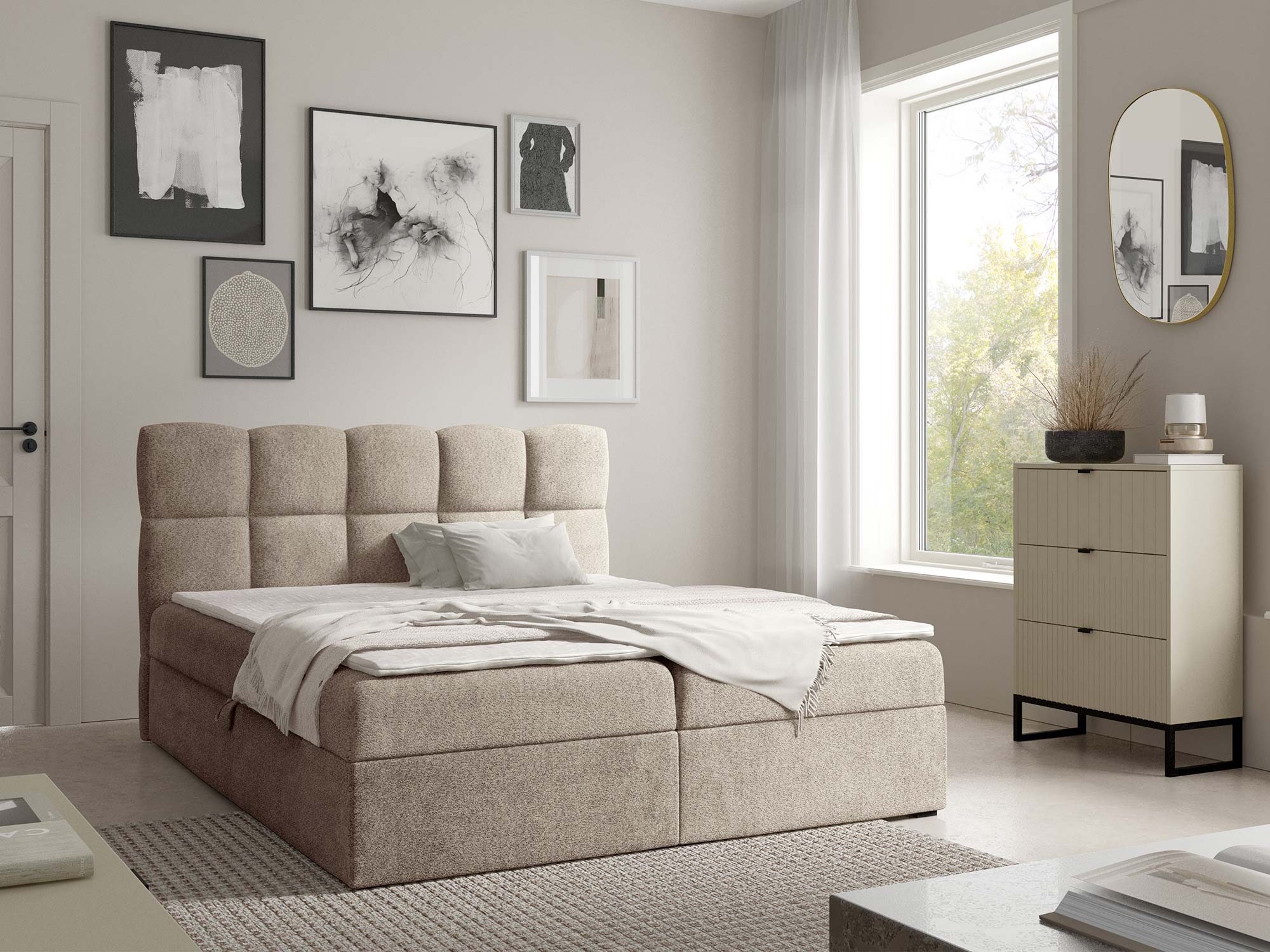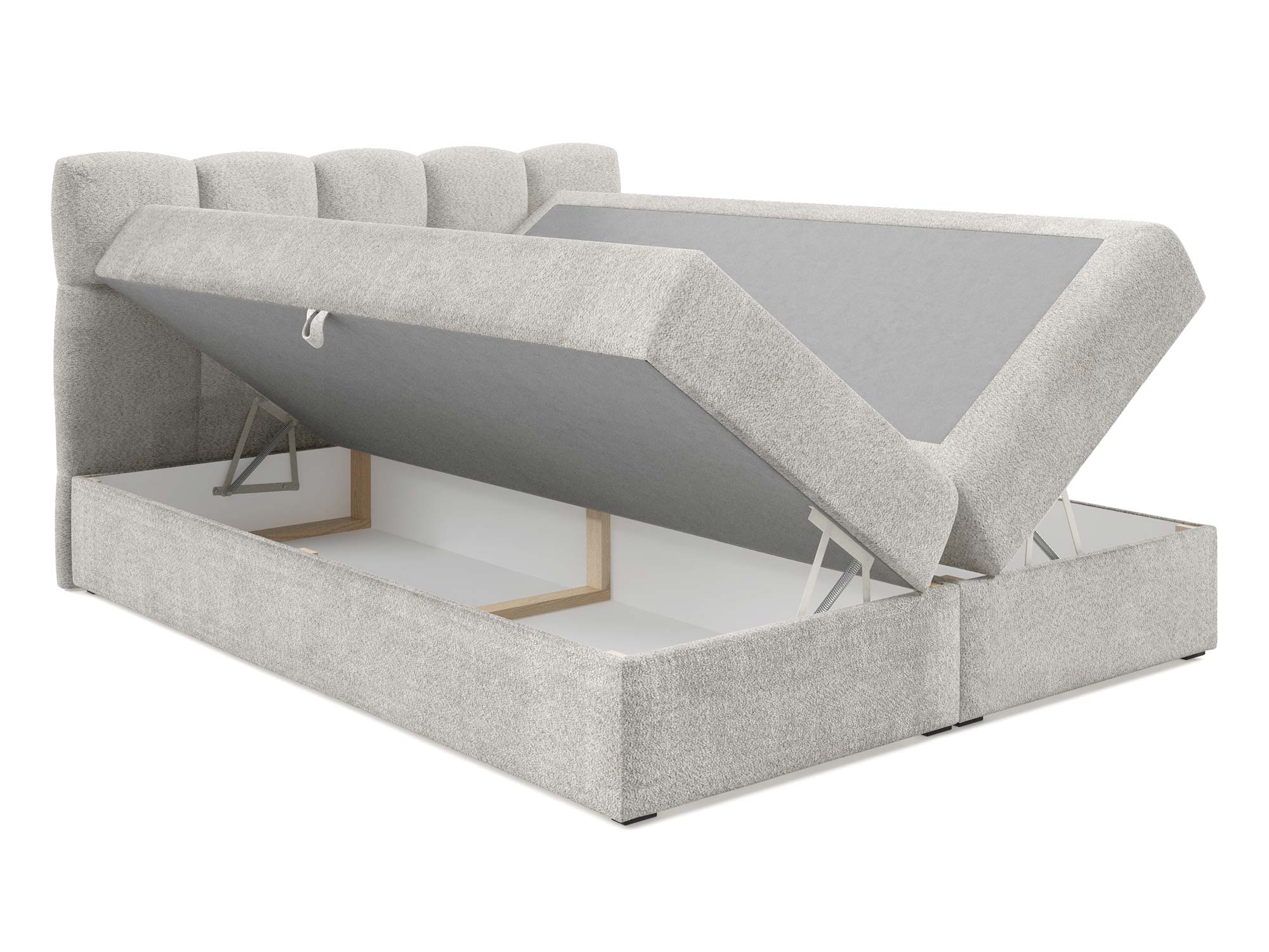 Ogromną zaletą łóżka są dwa pojemniki na pościel. Umieszczone pod powierzchnią spania, stanowią doskonałe miejsce do przechowywania kołder, poduszek, narzut czy sezonowych tekstyliów. Dzięki systemowi sprężynowemu otwieranie pojemników jest niezwykle łatwe – wystarczy lekki ruch, aby zyskać dostęp do praktycznej przestrzeni.