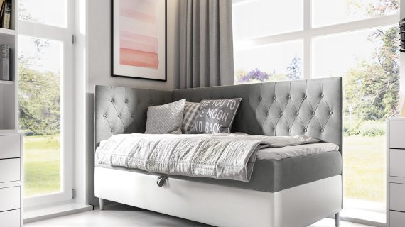 Komfortowe Wysokie Łóżko Kontynentalne ARIEL 3 dostosowuje się do każdej sypialni dzięki opcji wyboru strony otwierania pojemnika na pościel. Taka elastyczność pozwala idealnie dopasować łóżko do aranżacji wnętrza, zapewniając wygodę i pełną funkcjonalność.