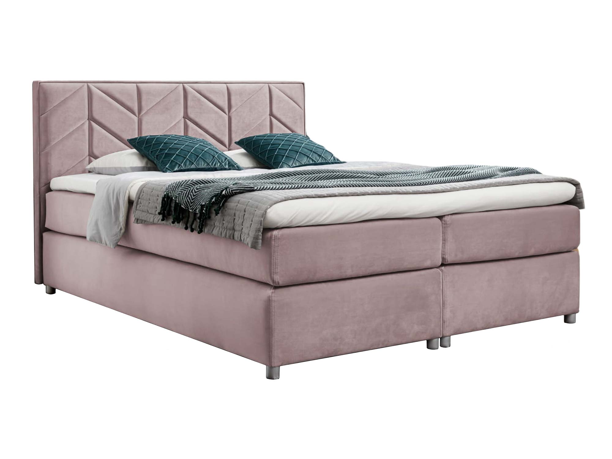 Zagłowie z ozdobnymi przeszyciami pełni nie tylko funkcję dekoracyjną – pozwala także wygodnie oprzeć się podczas wieczornej lektury czy porannej kawy w łóżku. Drewniane nóżki w srebrnym kolorze podkreślają lekkość bryły, a przy tym dodają jej subtelnego blasku. Całość utrzymana jest w eleganckiej, nowoczesnej stylistyce, która sprawi, że Twoja sypialnia będzie wyglądała jak z katalogu wnętrzarskiego.