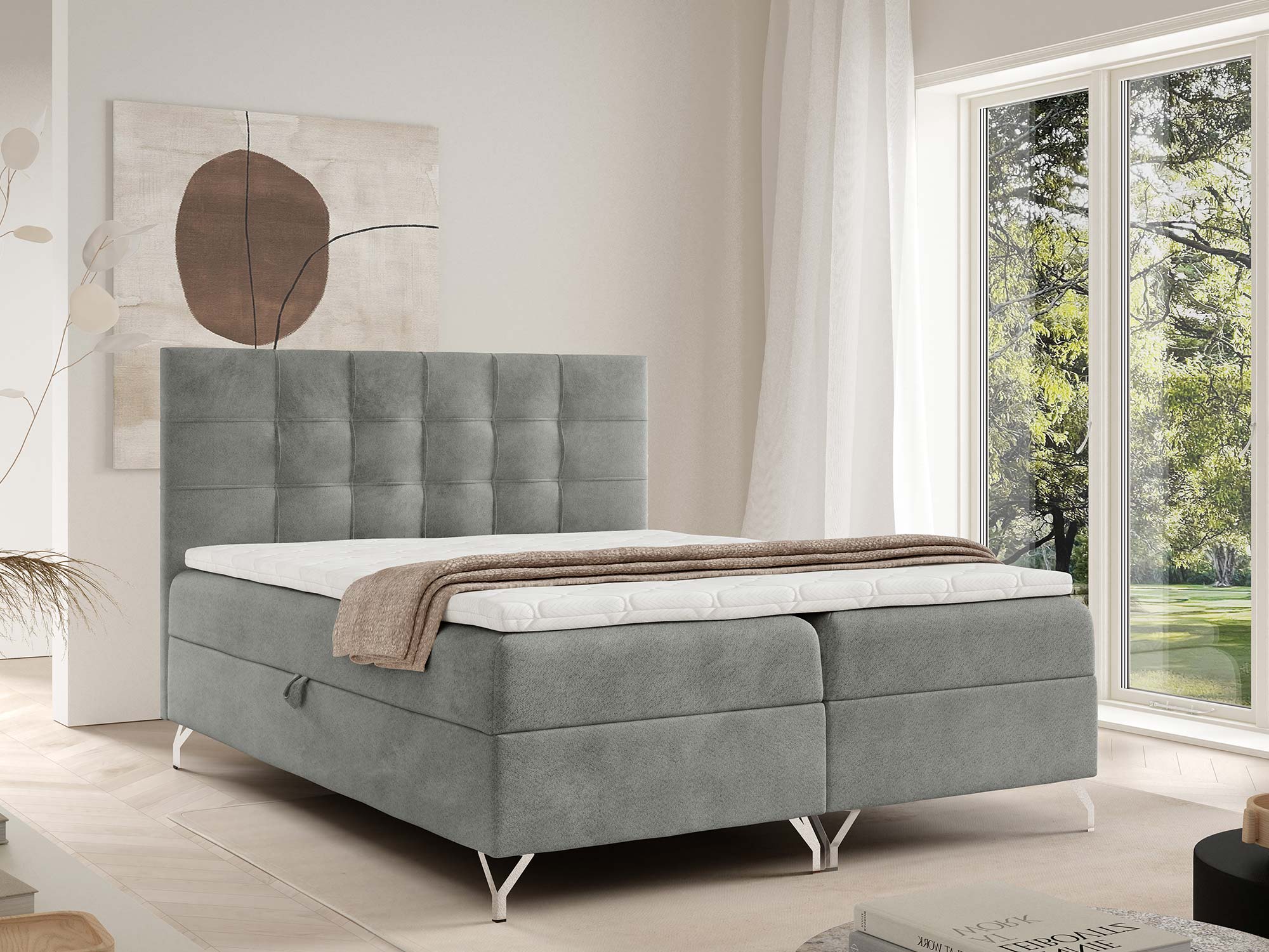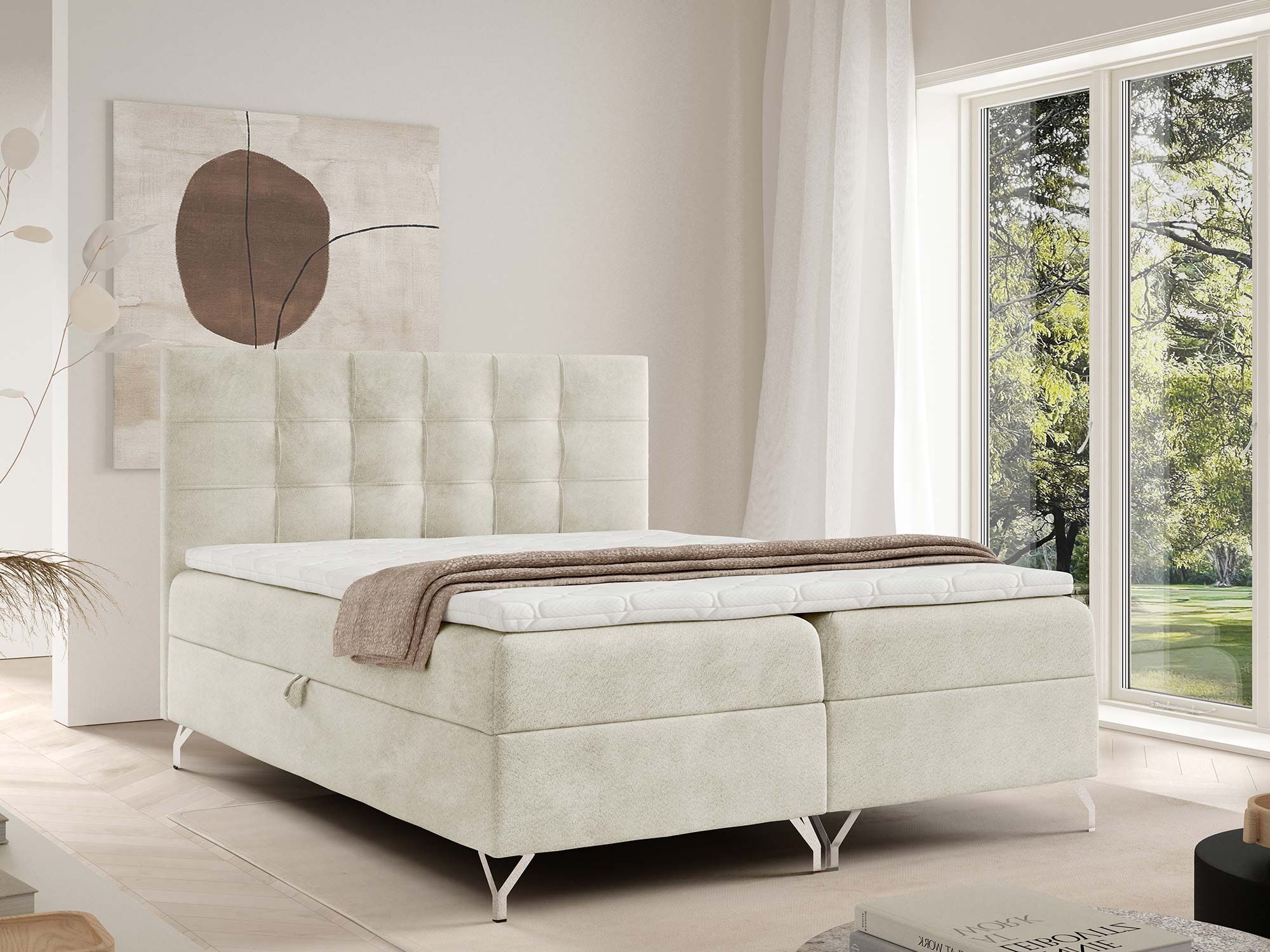 Łóżko Sally 7 to idealny wybór dla osób, które pragną, by ich sypialnia stała się miejscem pełnym harmonii, komfortu i elegancji. Dzięki dwóm pojemnikom na pościel zyskasz dodatkową przestrzeń do przechowywania, a materac ze sprężynami bonell w połączeniu z topperem z pianki T-25 zapewni zdrowy, regenerujący sen każdej nocy. Automat sprężynowy ułatwia podnoszenie powierzchni spania, czyniąc codzienne korzystanie niezwykle wygodnym.