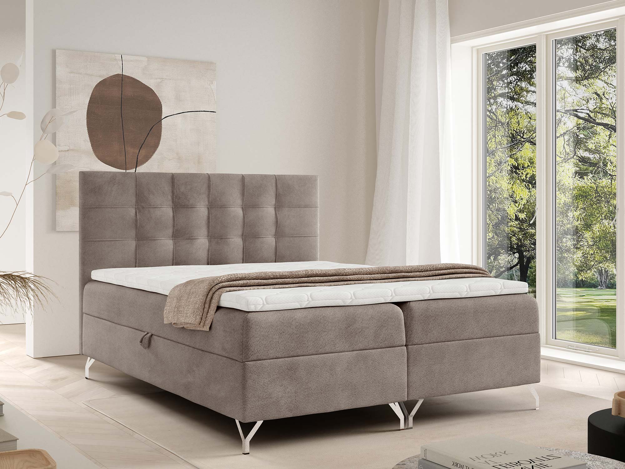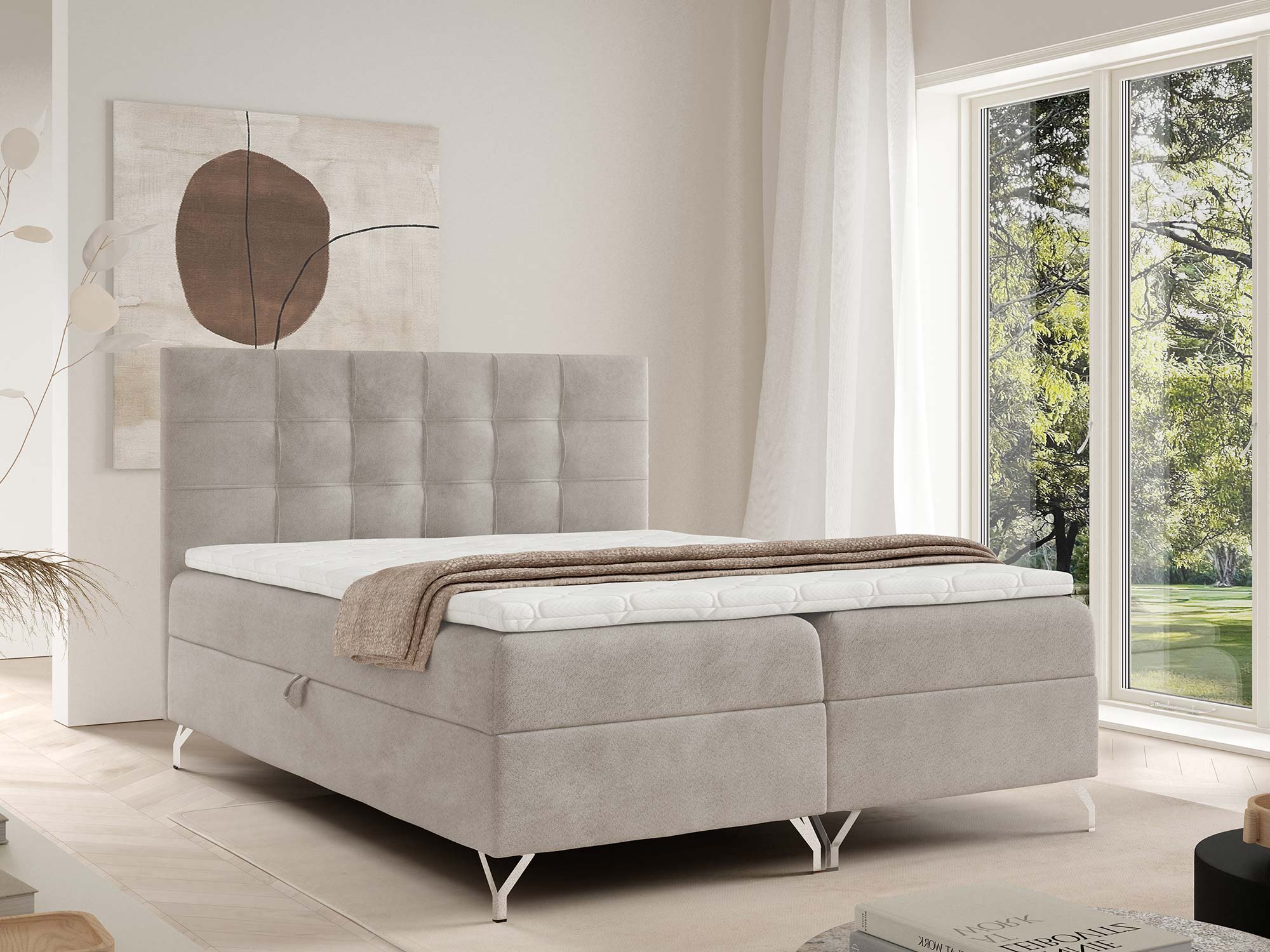 Łóżko Sally 7 to idealny wybór dla osób, które pragną, by ich sypialnia stała się miejscem pełnym harmonii, komfortu i elegancji. Dzięki dwóm pojemnikom na pościel zyskasz dodatkową przestrzeń do przechowywania, a materac ze sprężynami bonell w połączeniu z topperem z pianki T-25 zapewni zdrowy, regenerujący sen każdej nocy. Automat sprężynowy ułatwia podnoszenie powierzchni spania, czyniąc codzienne korzystanie niezwykle wygodnym.