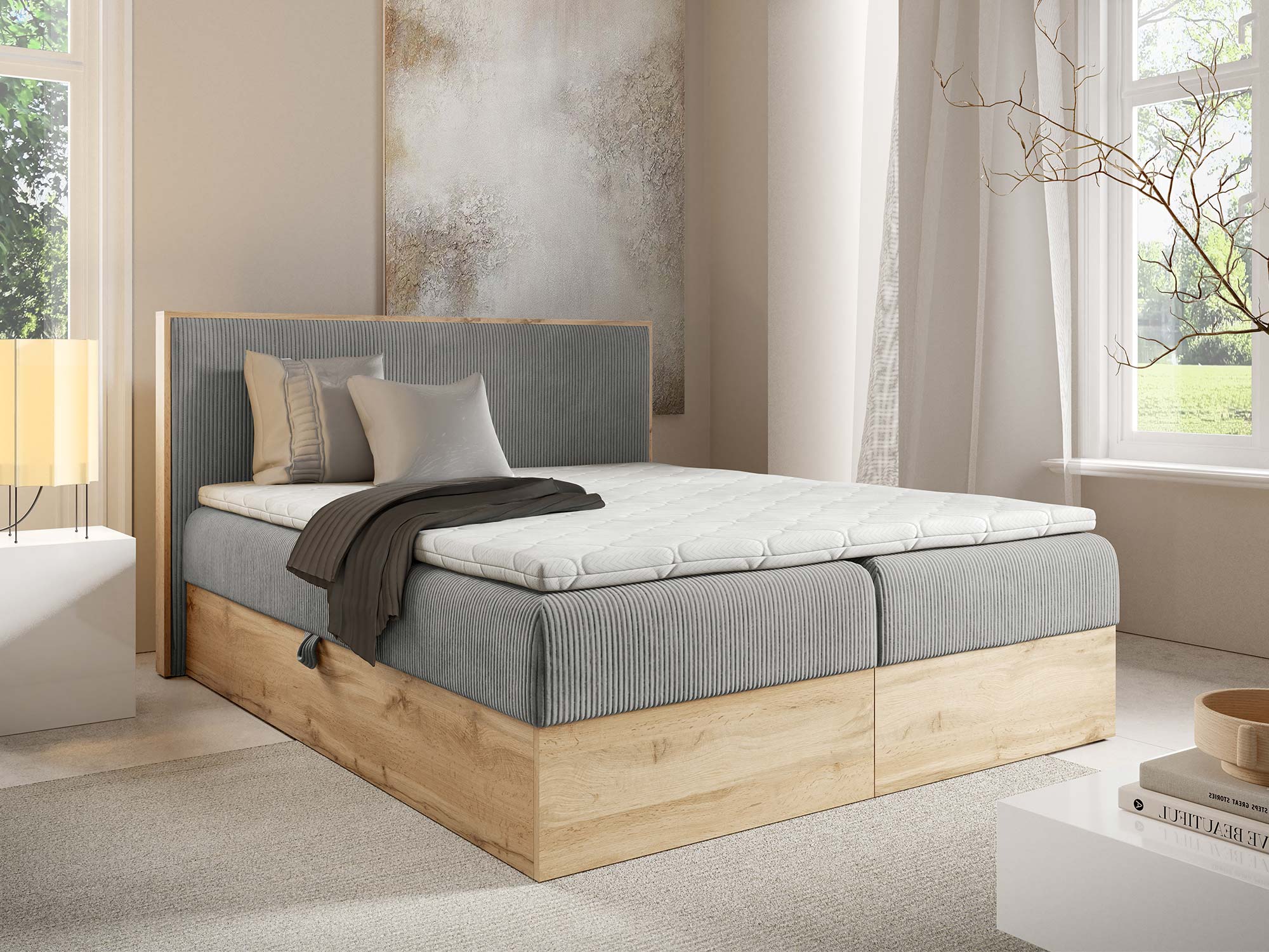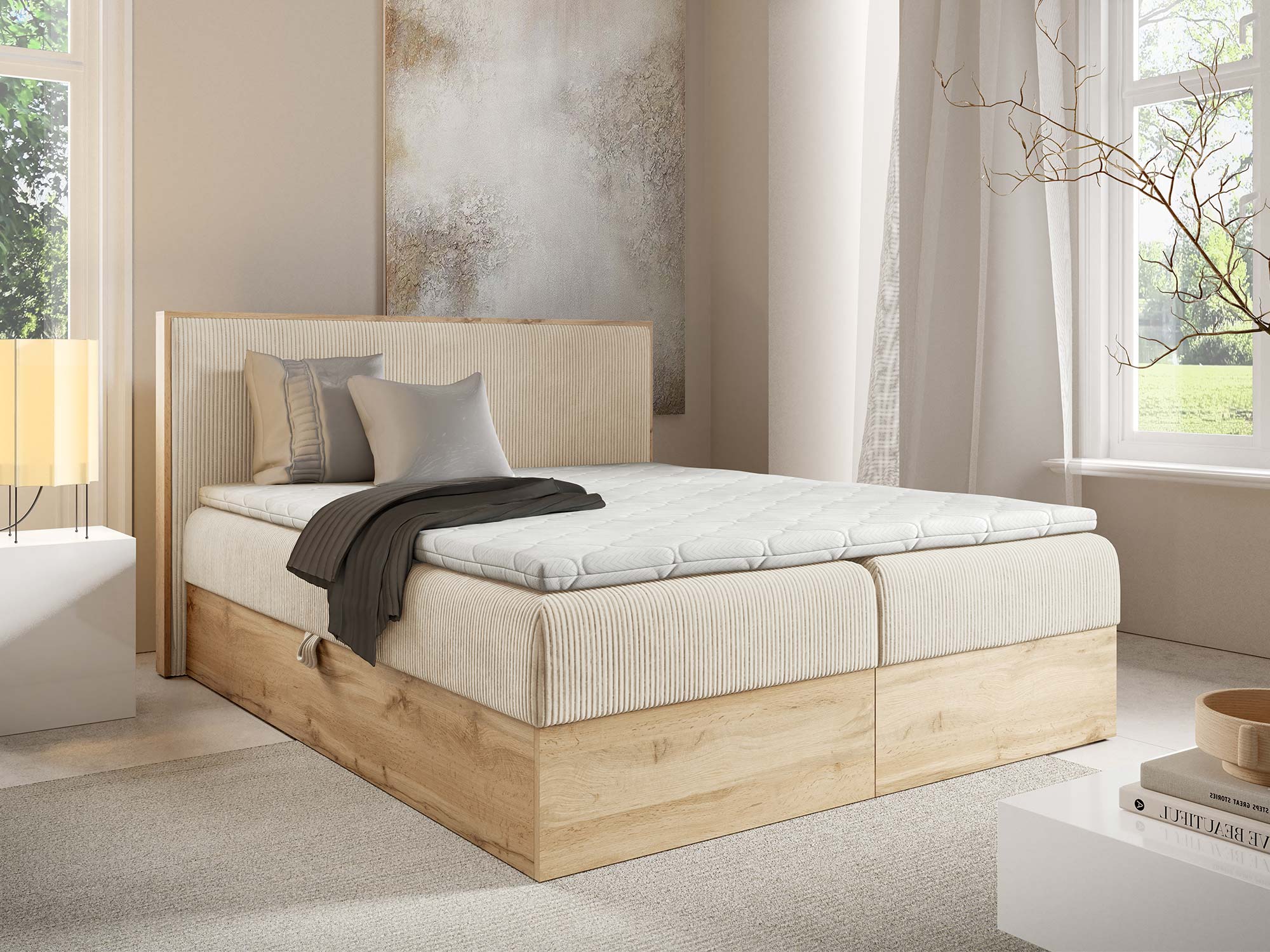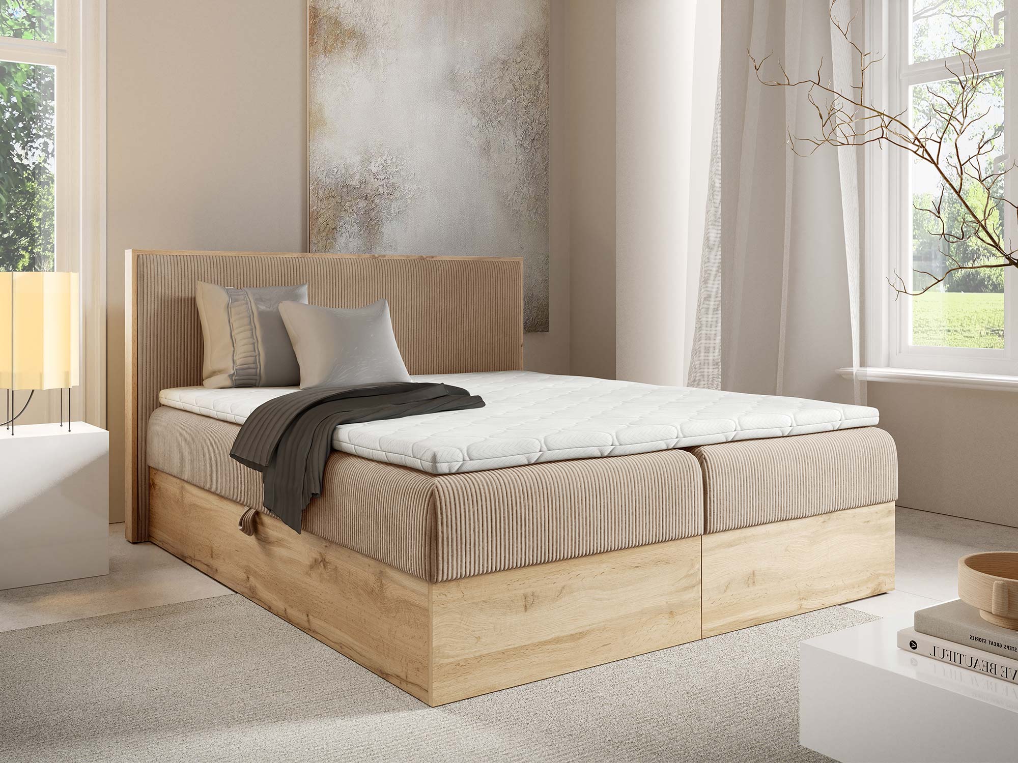Mizon 11 to łóżko, które spełnia potrzeby nowoczesnych kobiet, łącząc funkcjonalność z elegancją i dając pewność, że sypialnia stanie się miejscem pełnym harmonii.