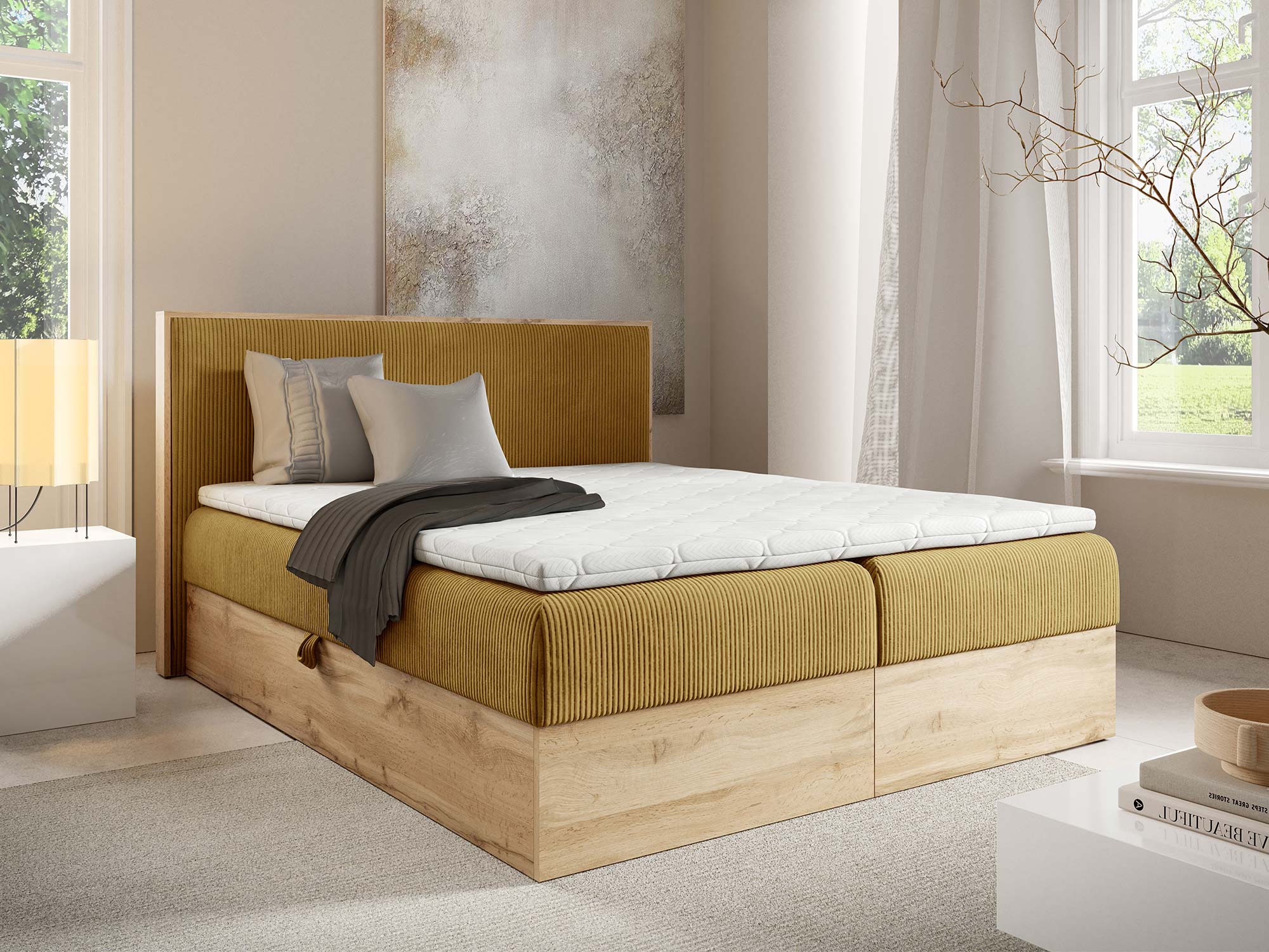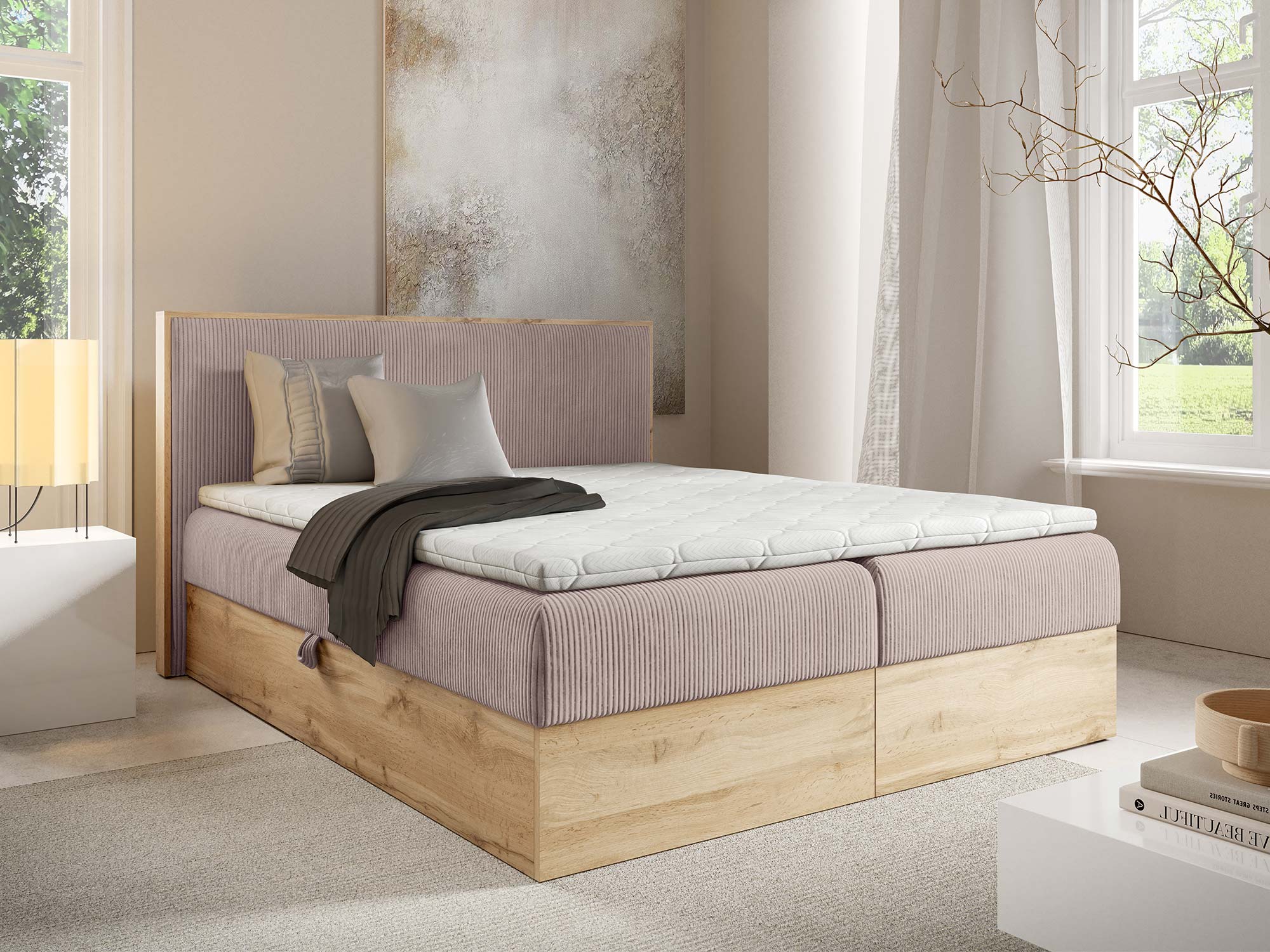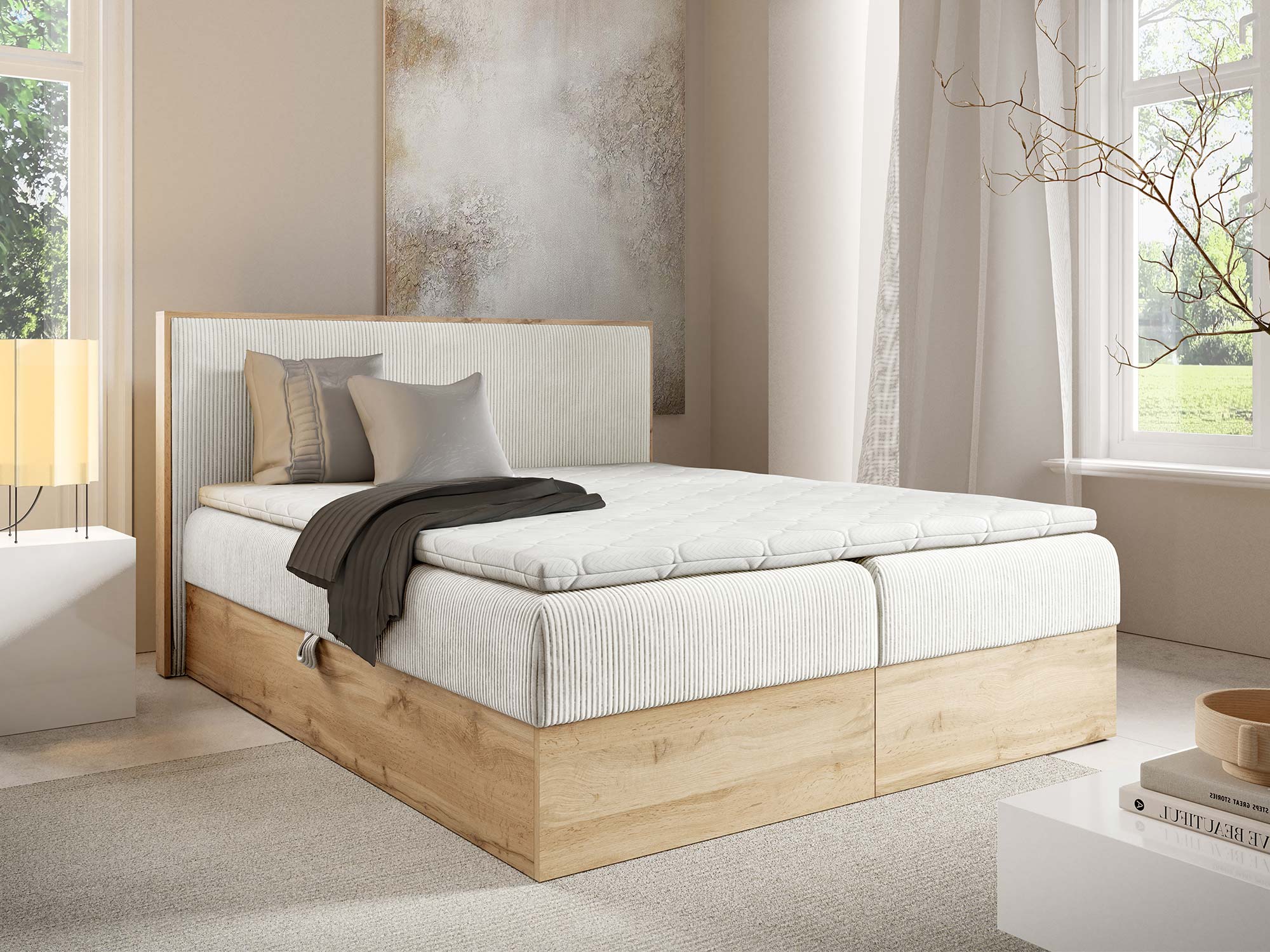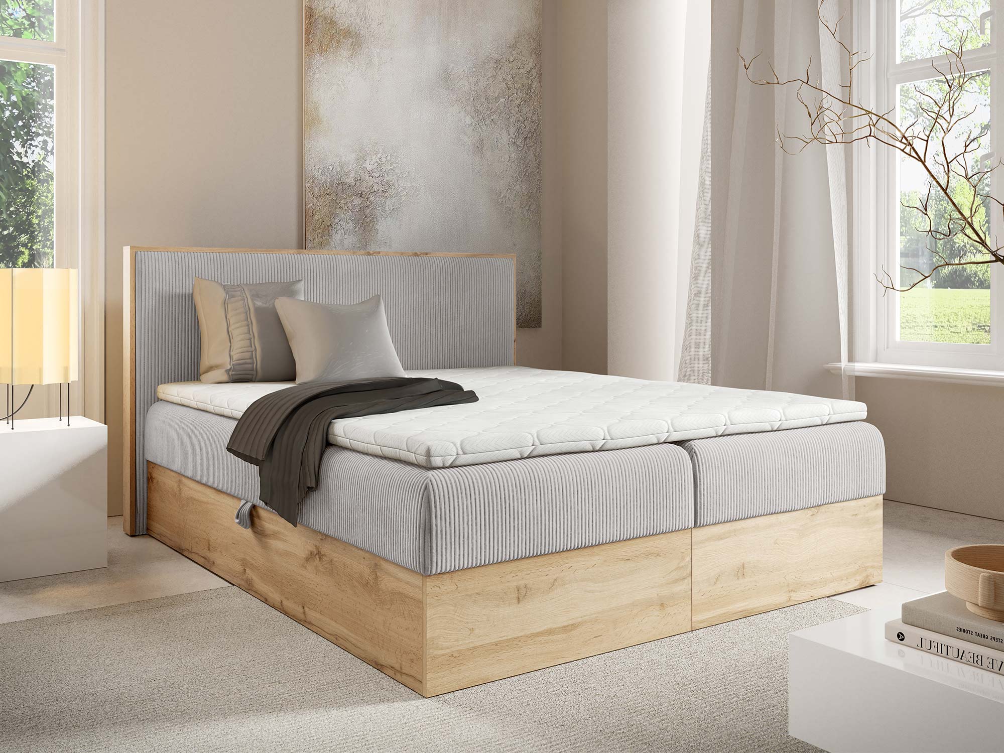 Mizon 11 to łóżko, które spełnia potrzeby nowoczesnych kobiet, łącząc funkcjonalność z elegancją i dając pewność, że sypialnia stanie się miejscem pełnym harmonii.