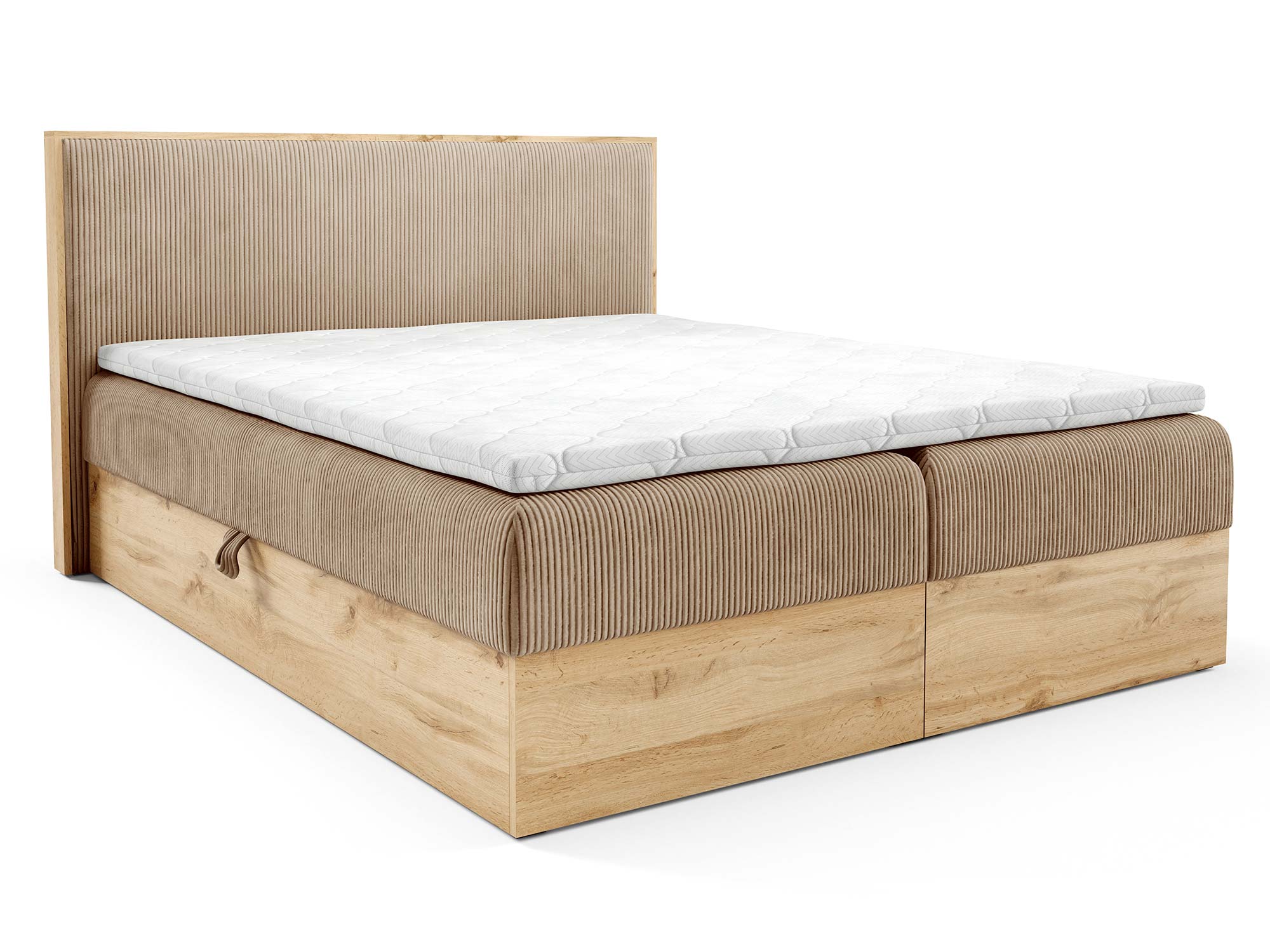 • Łóżko 160×200: wys. zagłowia 105 cm, szer. 169 cm, dł. 210 cm, wys. spania 52 cm, waga 124 kg