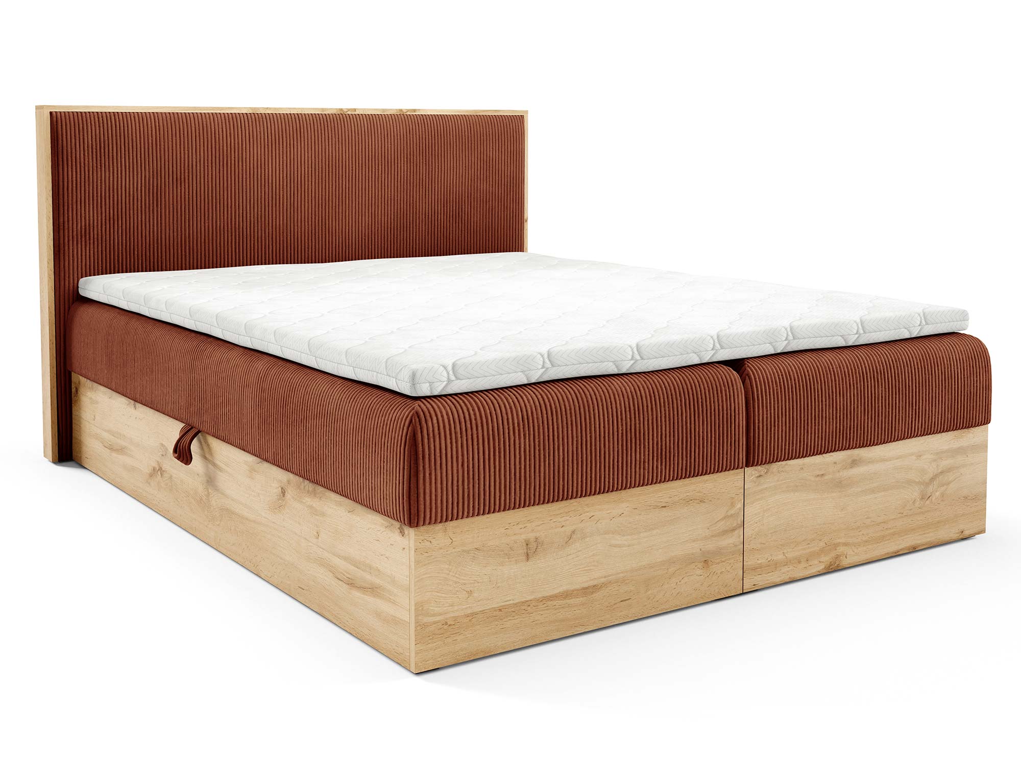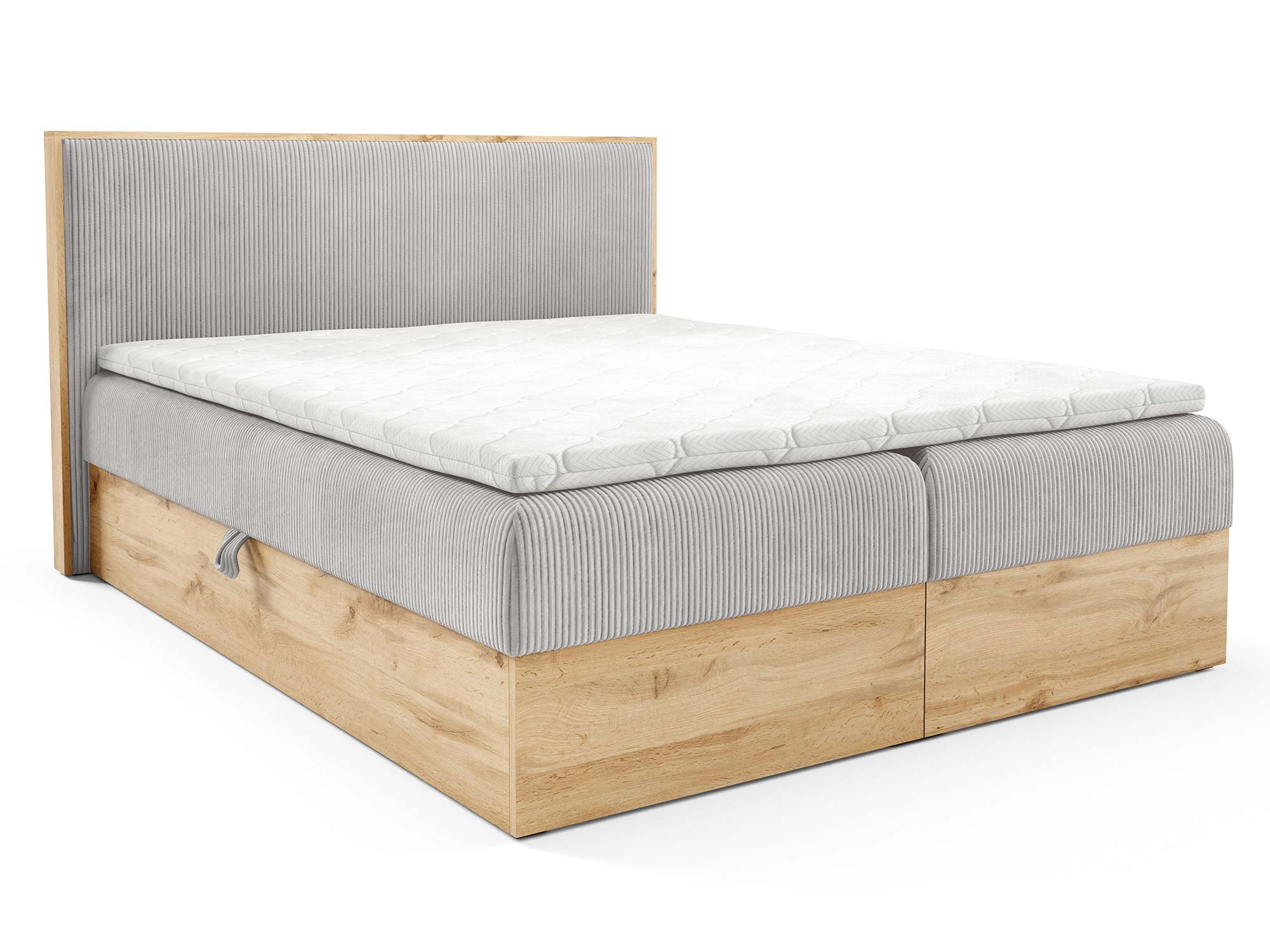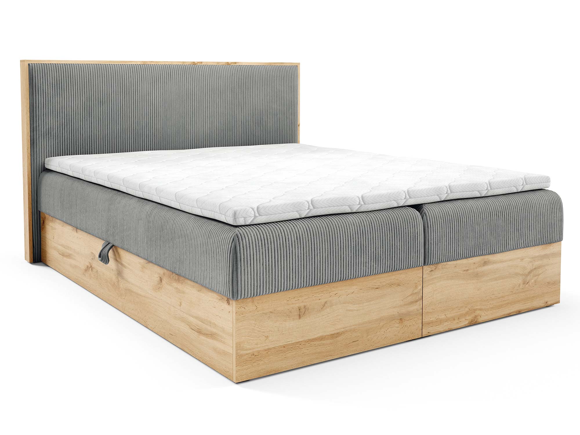 Połączenie klasycznego materaca bonell z komfortowym topperem z pianki T-25 o wysokości 4 cm sprawia, że sen staje się prawdziwą regeneracją ciała i umysłu. Dodatkowo, eleganckie wykończenie w kolorze dąb sonoma nadaje całości naturalnego, ciepłego charakteru, dzięki czemu łóżko Mizon 11 idealnie wpasuje się zarówno w nowoczesne, jak i bardziej klasyczne aranżacje.