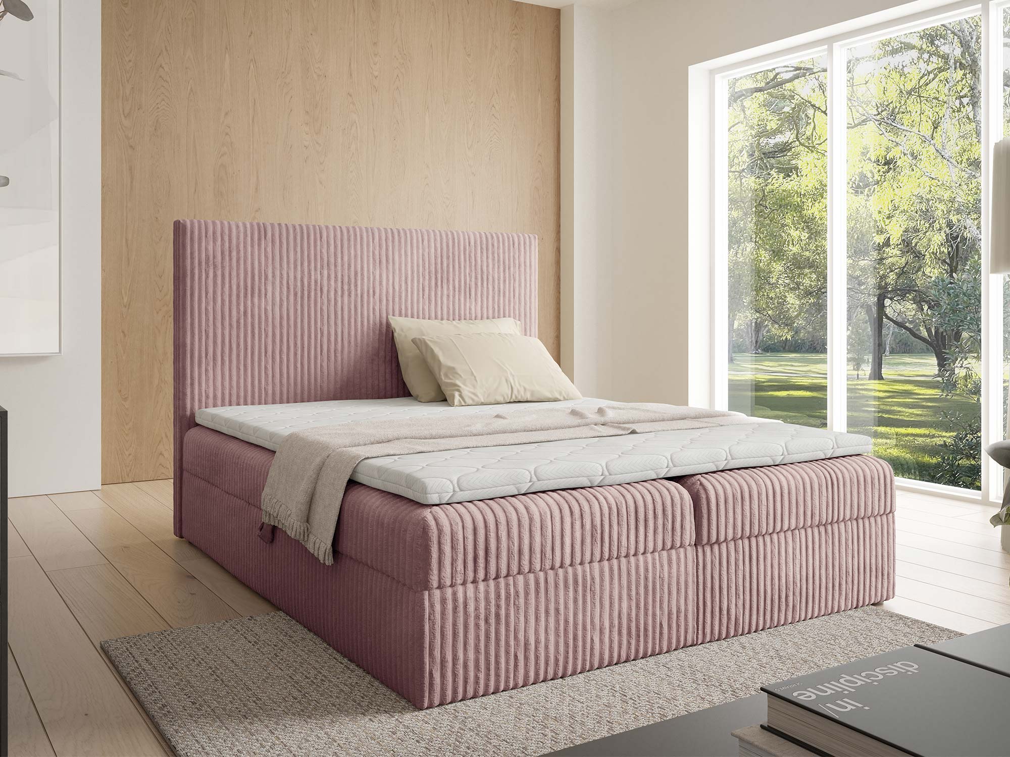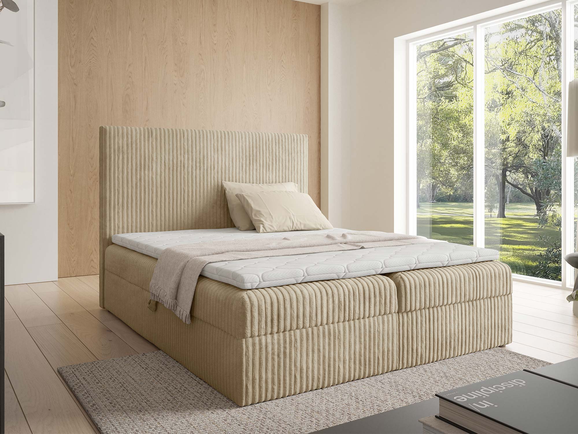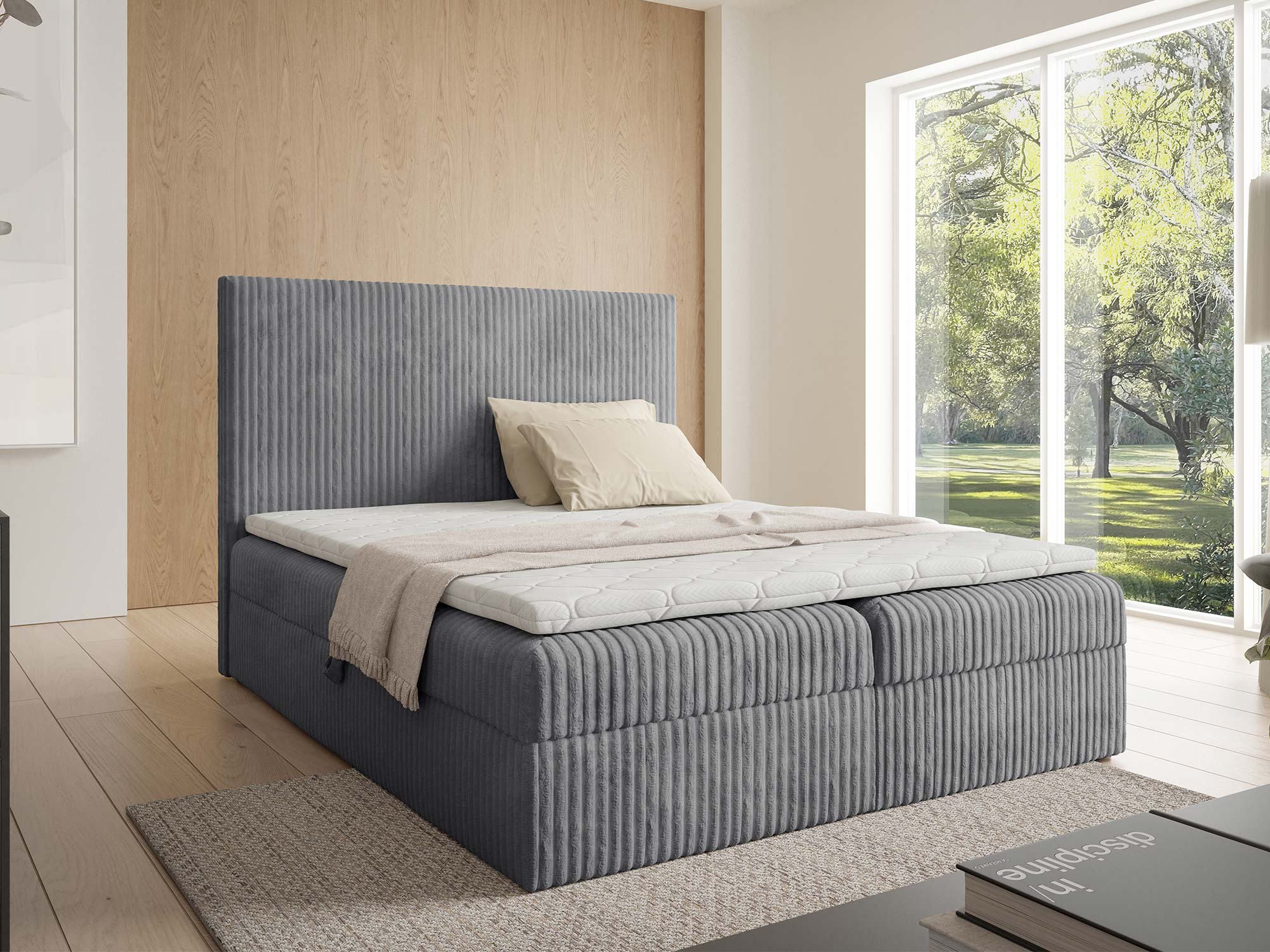 - Stylowa tapicerka – tkanina Tilia podkreśla elegancję sypialni.