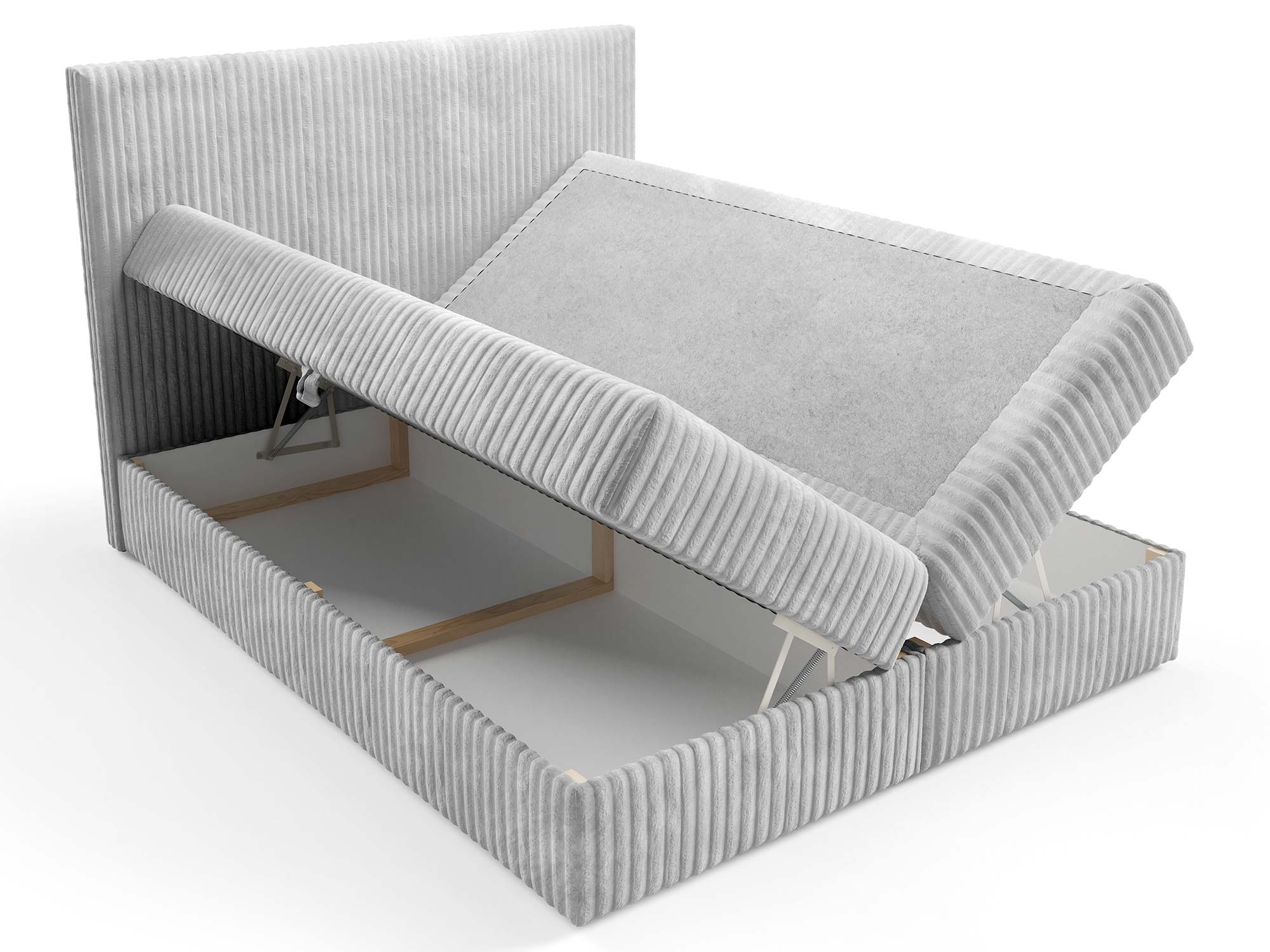Wyjątkową cechą modelu Hagi są dwa pojemniki na pościel. To rozwiązanie, które sprawdzi się nie tylko w małych mieszkaniach, gdzie każdy centymetr przestrzeni ma znaczenie, ale również w większych domach – bo porządek i estetyka są zawsze w cenie. Automat sprężynowy umożliwia bezproblemowe uniesienie materaca, a dzięki temu dostęp do pojemników jest lekki i komfortowy.
