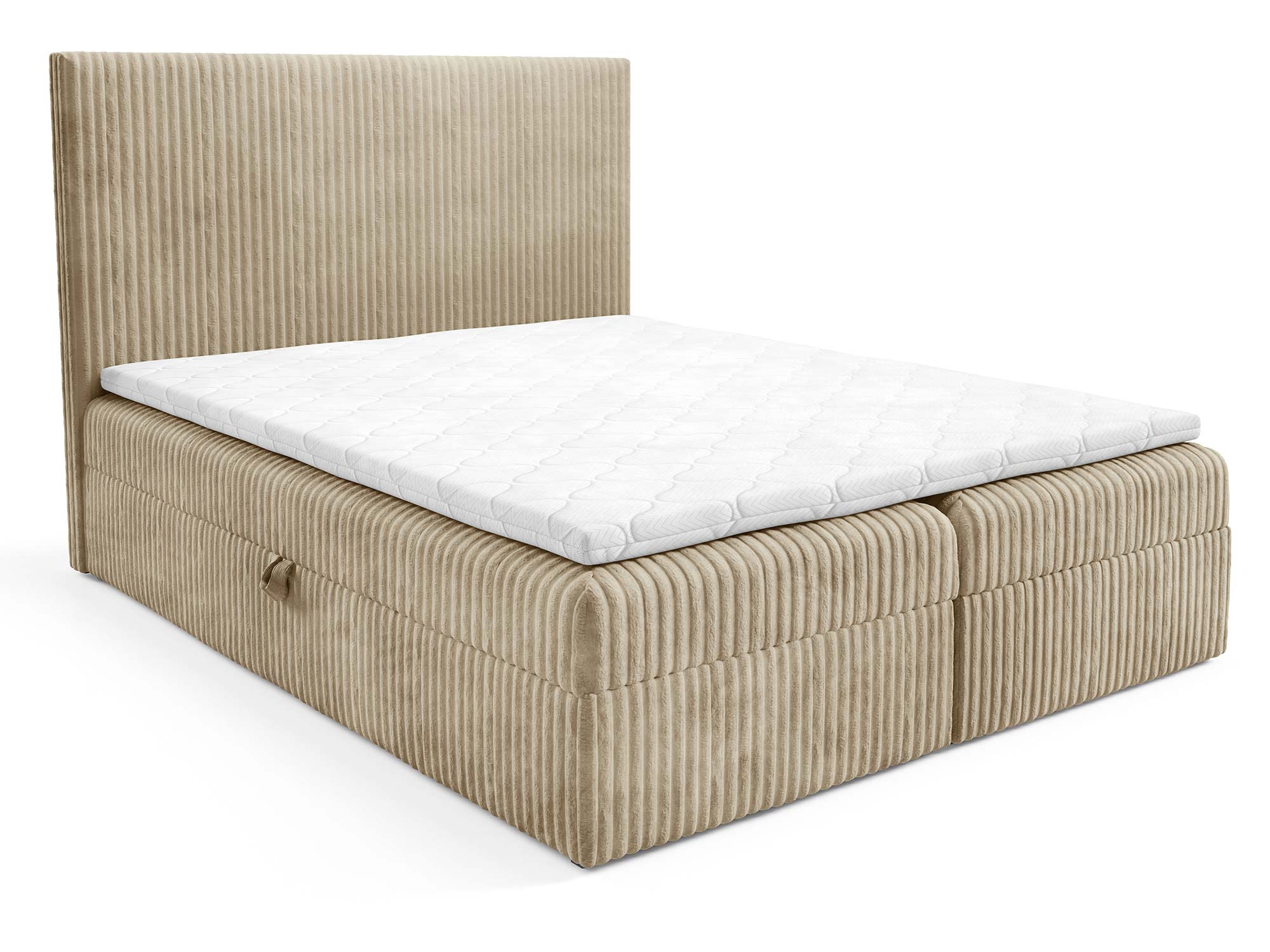 Wyjątkową cechą modelu Hagi są dwa pojemniki na pościel. To rozwiązanie, które sprawdzi się nie tylko w małych mieszkaniach, gdzie każdy centymetr przestrzeni ma znaczenie, ale również w większych domach – bo porządek i estetyka są zawsze w cenie. Automat sprężynowy umożliwia bezproblemowe uniesienie materaca, a dzięki temu dostęp do pojemników jest lekki i komfortowy.