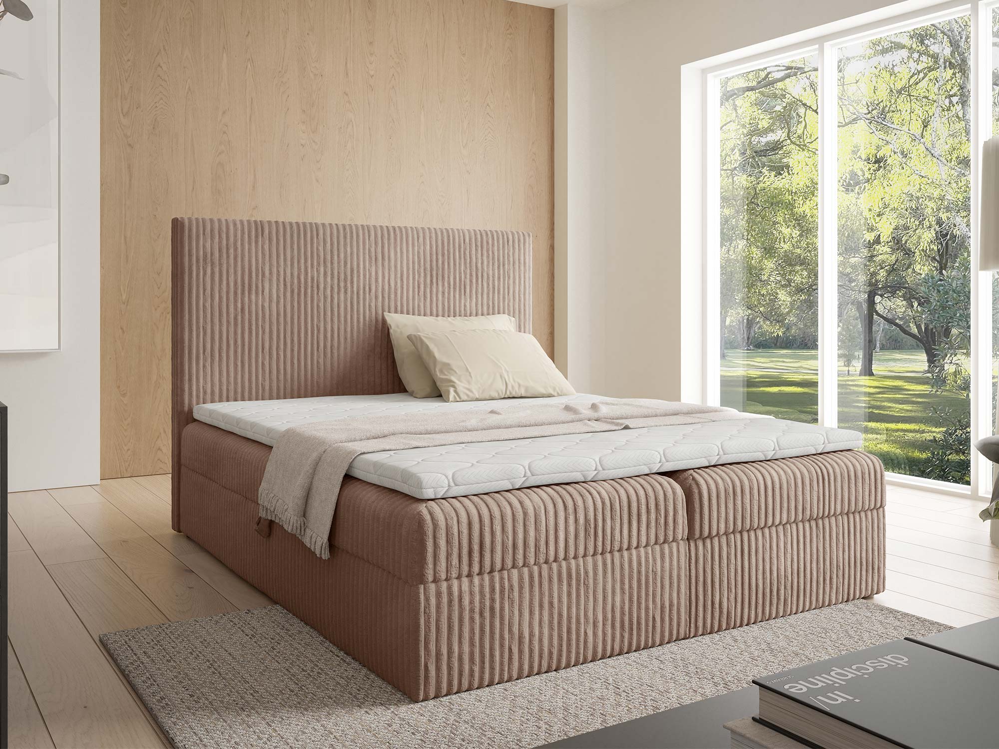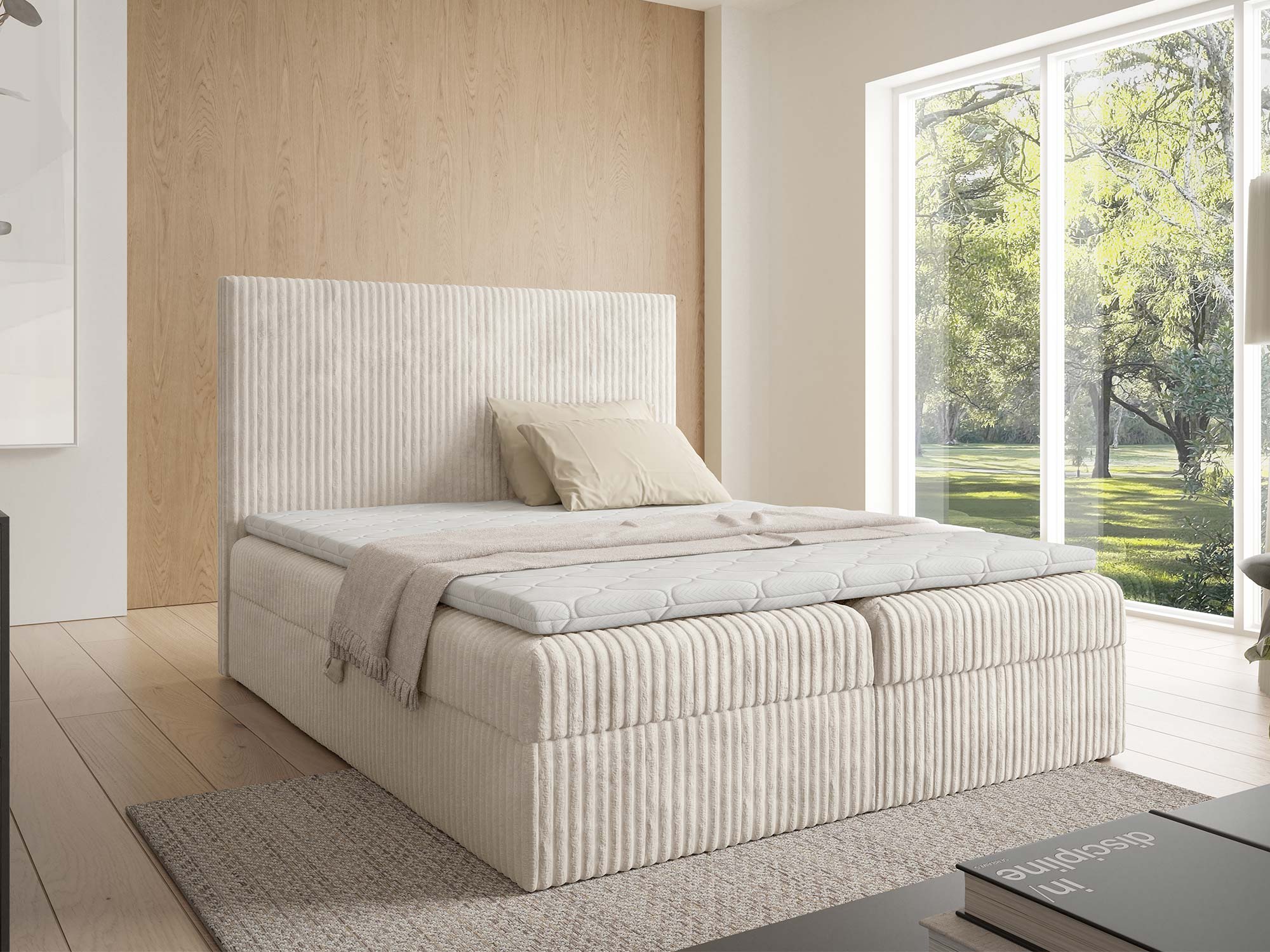 - Stylowa tapicerka – tkanina Tilia podkreśla elegancję sypialni.