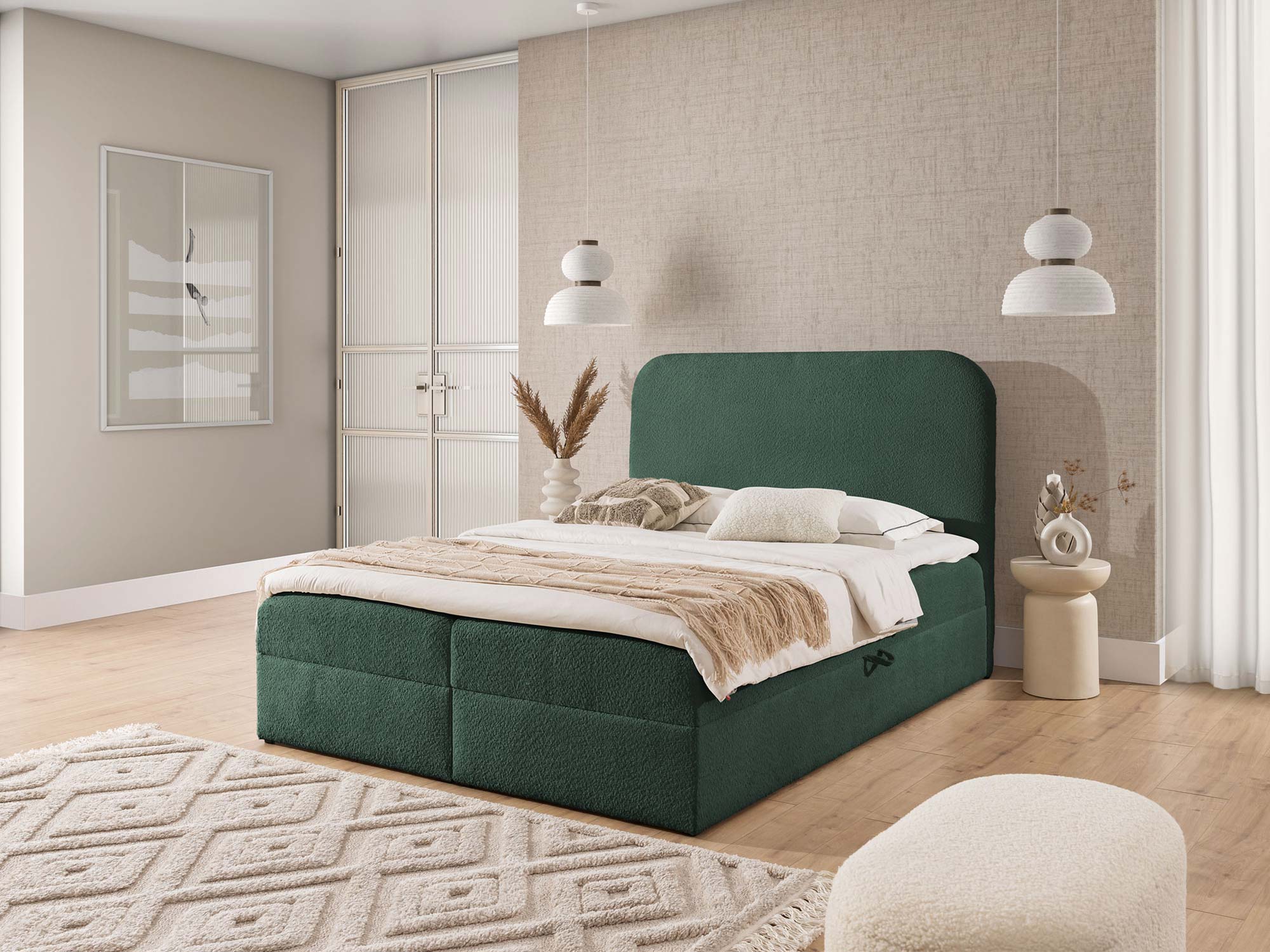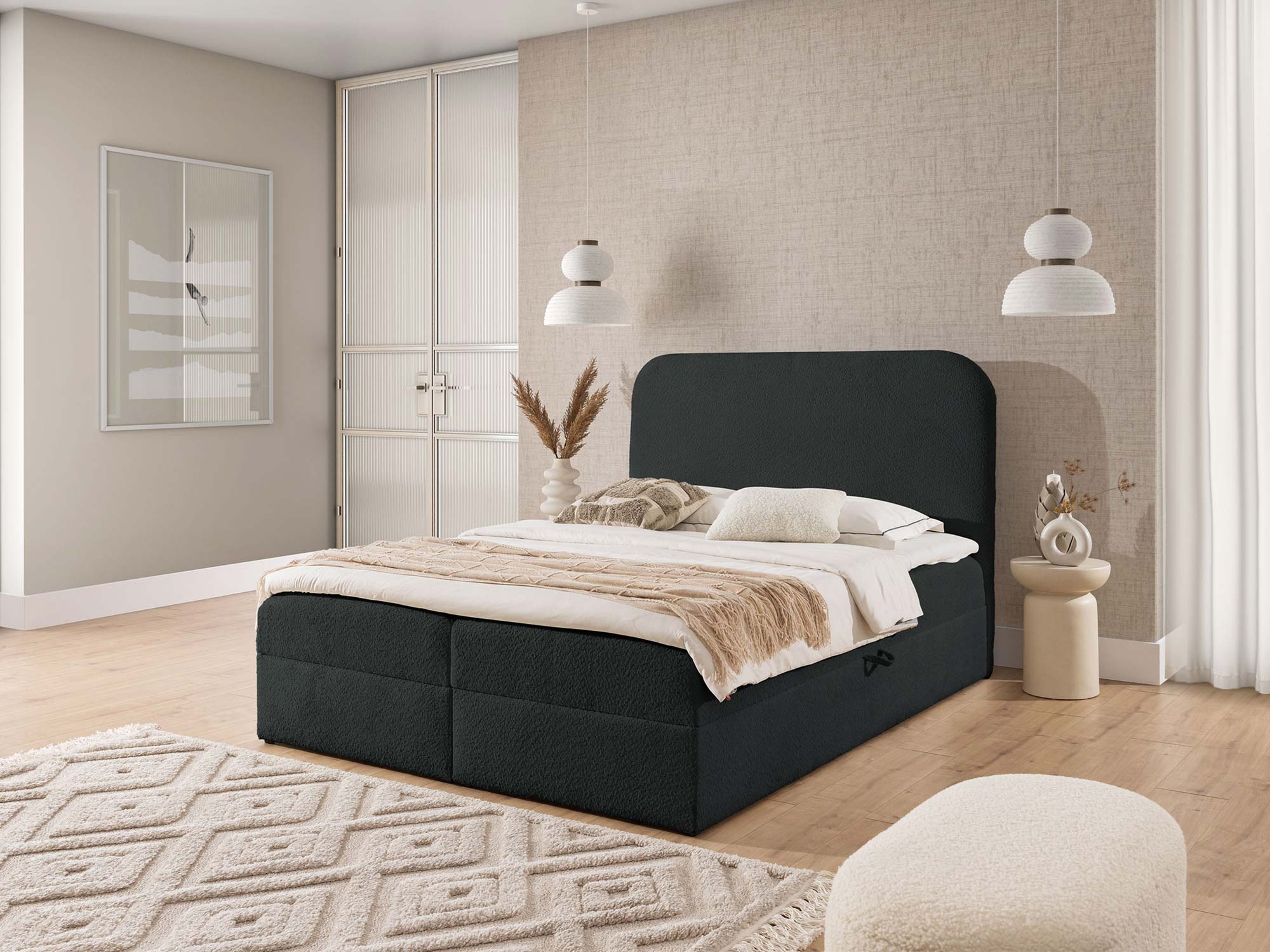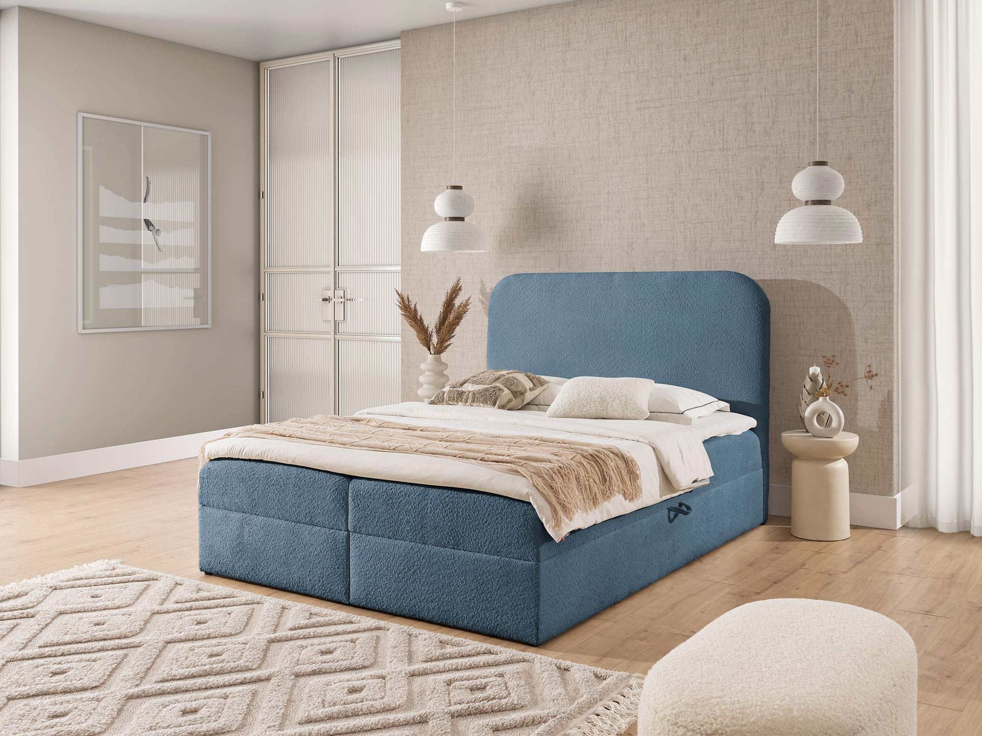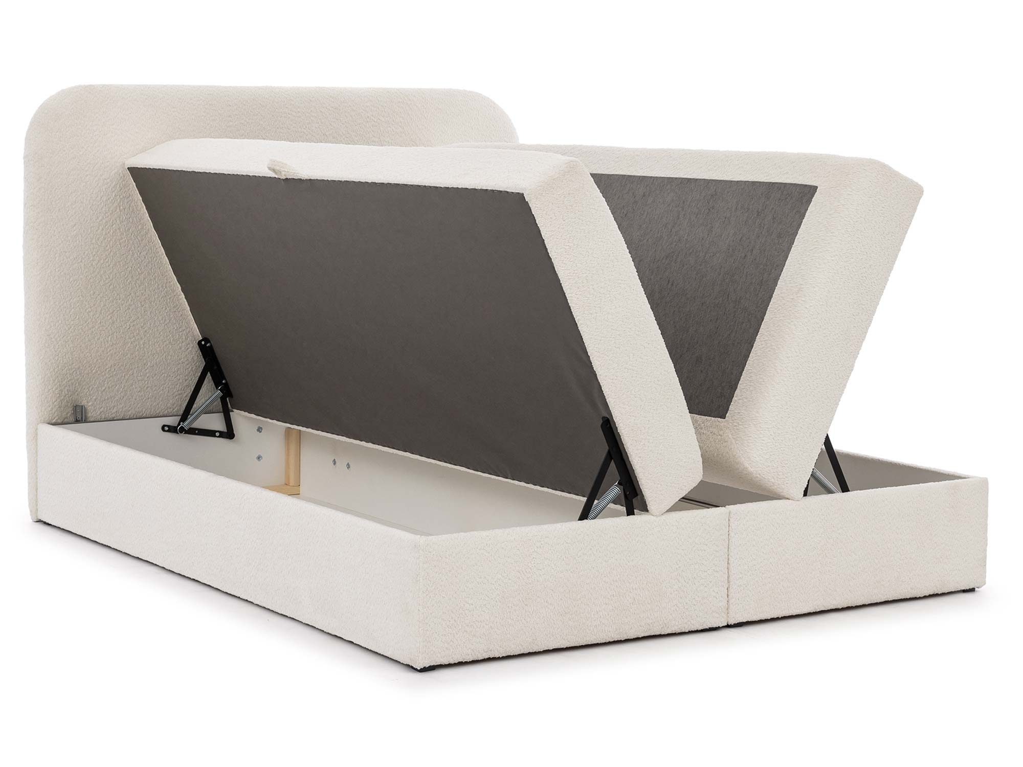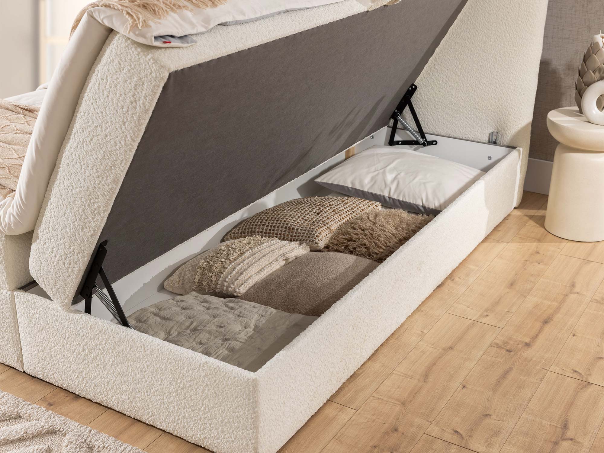 Jednym z największych atutów łóżka są dwa pojemniki na pościel. Dzięki nim przechowywanie staje się niezwykle wygodne – kołdry, poduszki czy sezonowe tekstylia mają swoje miejsce, a Ty możesz cieszyć się uporządkowaną przestrzenią. Automaty na sprężynach ułatwiają otwieranie, co sprawia, że dostęp do pojemników jest lekki i szybki.