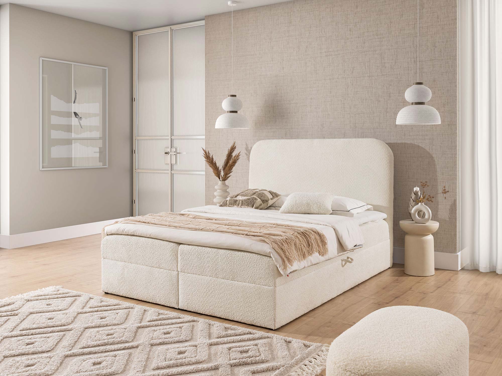 To łóżko wprowadzi do Twojej sypialni harmonię i spokój. Jego prosta, a zarazem stylowa forma oraz wysoka jakość wykonania sprawiają, że stanie się centralnym punktem całego pomieszczenia. Dzięki automatom sprężynowym zyskujesz szybki i wygodny dostęp do pojemników – bez wysiłku, bez problemów. Codzienne korzystanie staje się lekkie i intuicyjne, a Ty cieszysz się wolną przestrzenią i porządkiem w swojej sypialni.