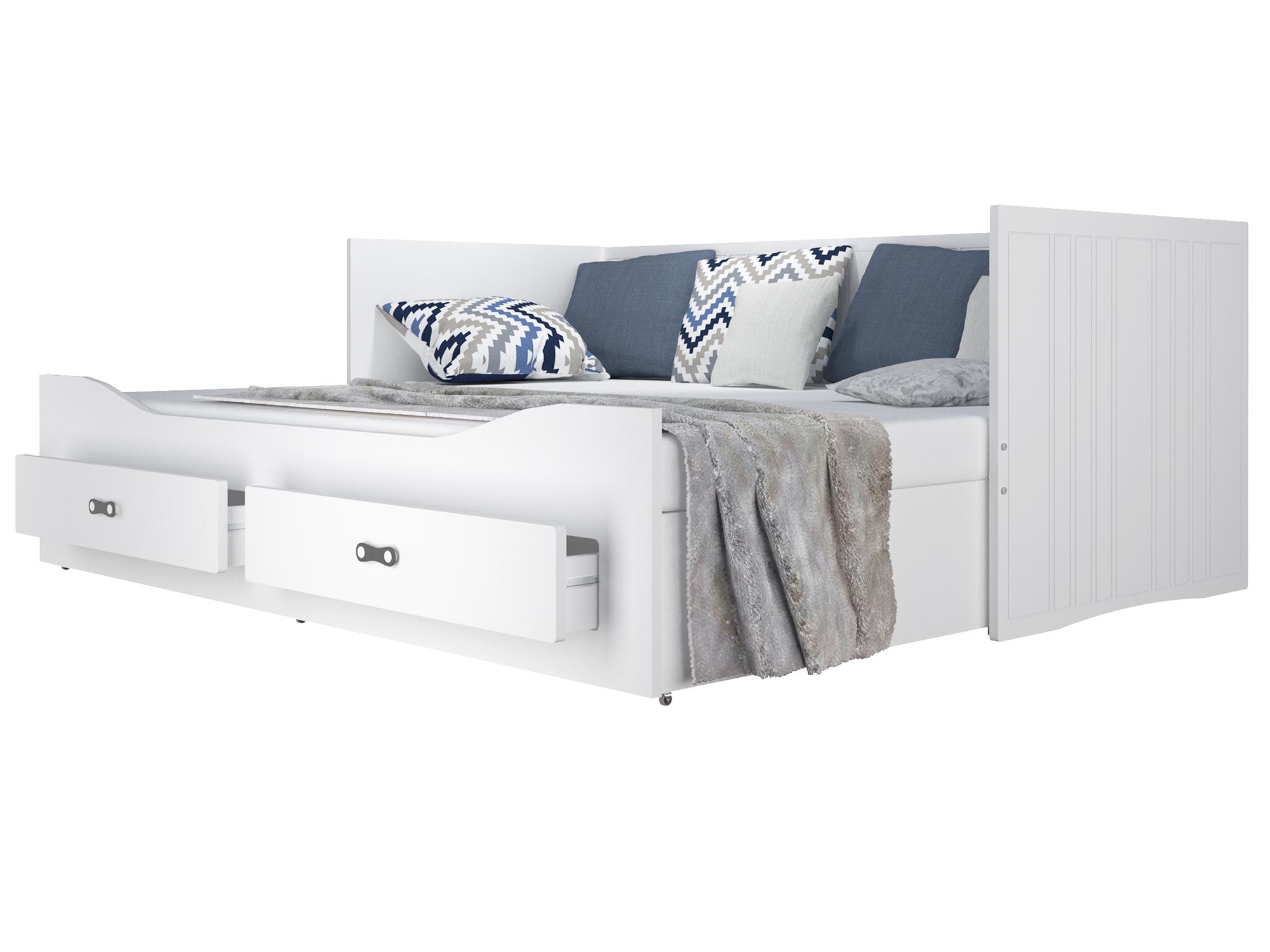 Co najważniejsze łóżko rozkładane BILL z szufladami to mebel cechujący się wygodą i bezpieczeństwem użytkowania, a także niepowtarzalnym charakterem. Ponadto stabilna i trwała konstrukcja gwarantują odporność łóżka. Mebel wyposażono w stelaż  z drewna sosnowego. Do produkcji mebla wykorzystano z wysokiej jakości płyty MDF i zabezpieczono je okleiną ABS. Ponadto łóżko posiada pojemne szuflady mogące służyć jako pojemniki do schowania pościeli czy podręcznych przedmiotów. Do łóżka został dodany zestaw przeznaczony do montażu, który jest prosty i szybki, jak również instrukcja.