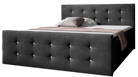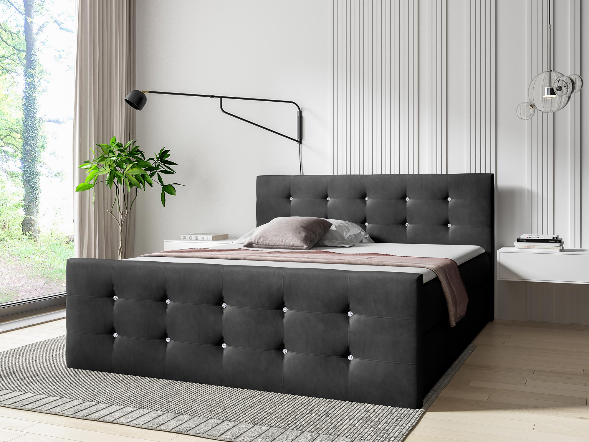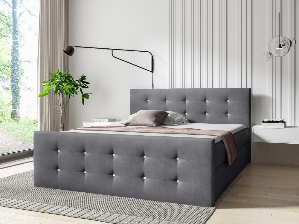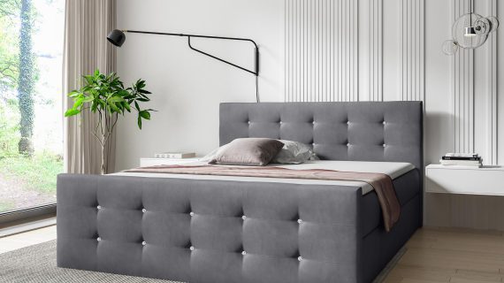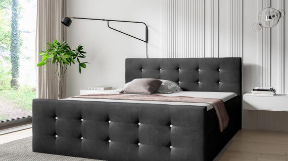Łóżko Tapicerowane z Pikowanym Zagłówkiem Belmondo to idealne rozwiązanie dla osób, które cenią sobie luksusowy design, funkcjonalność oraz wyjątkowy komfort snu. Wykonane w stylu modern classic, łóżko Belmondo łączy w sobie ponadczasową elegancję z nowoczesnymi akcentami, które doskonale wpasują się w każdą sypialnię. Tapicerowany zagłówek z ozdobnymi przeszyciami, imitacja kryształków Svarowskiego oraz w pełni tapicerowany korpus z pikowaniem na przodzie nadają wnętrzu klasy i wyrafinowanego charakteru.