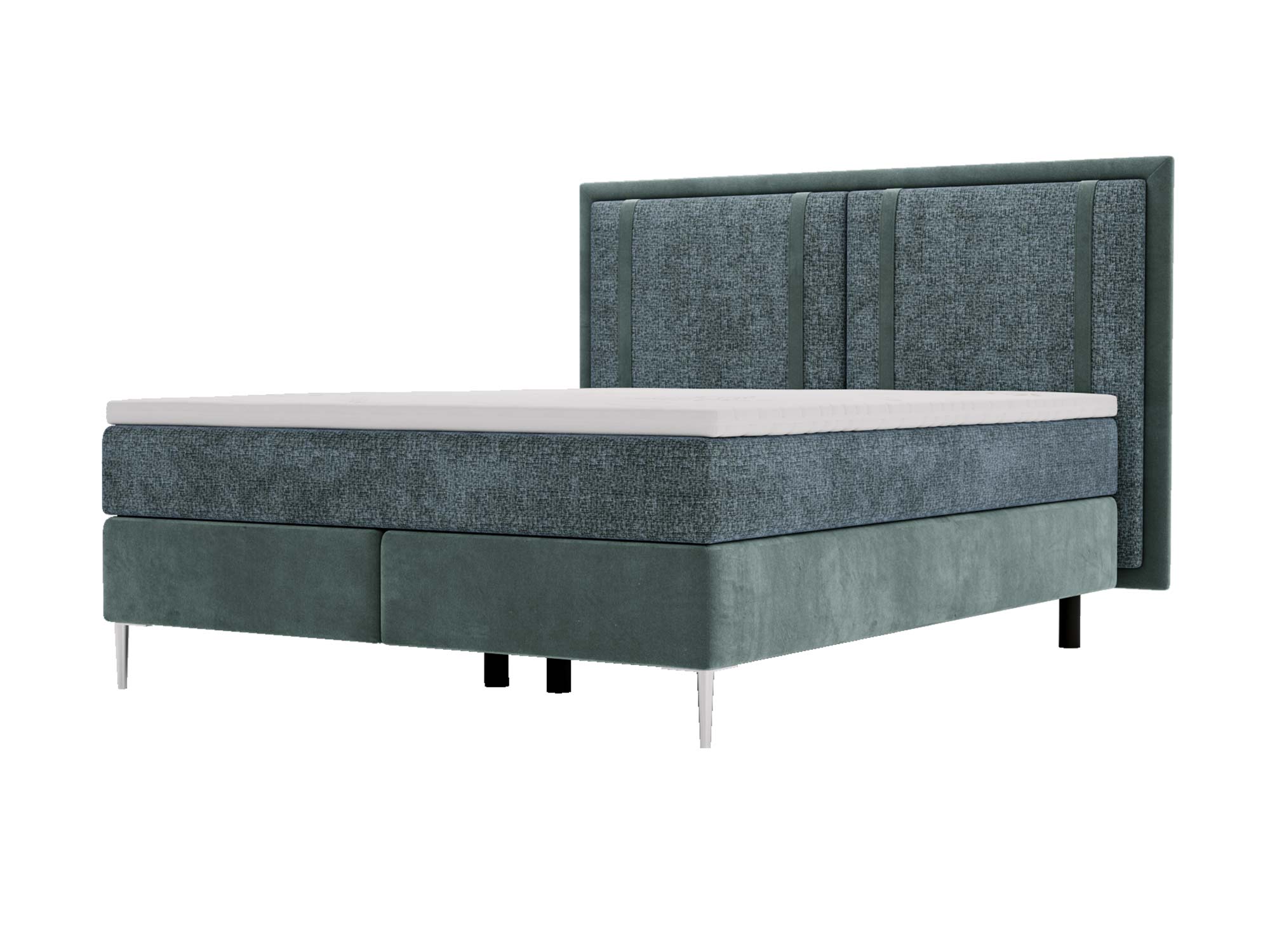 Miętowe łóżko z wysokim zagłówkiem i chromowanymi nóżkami