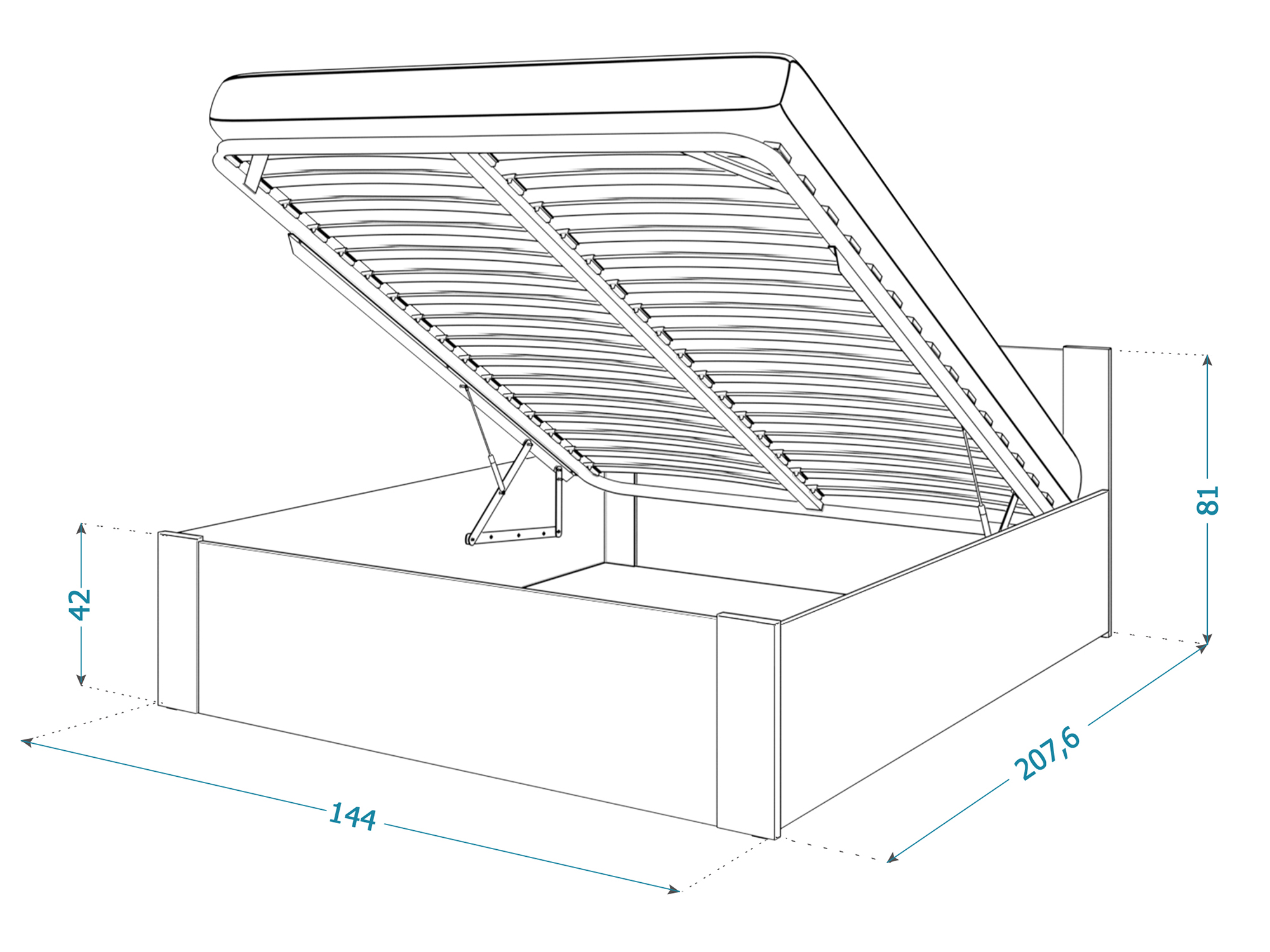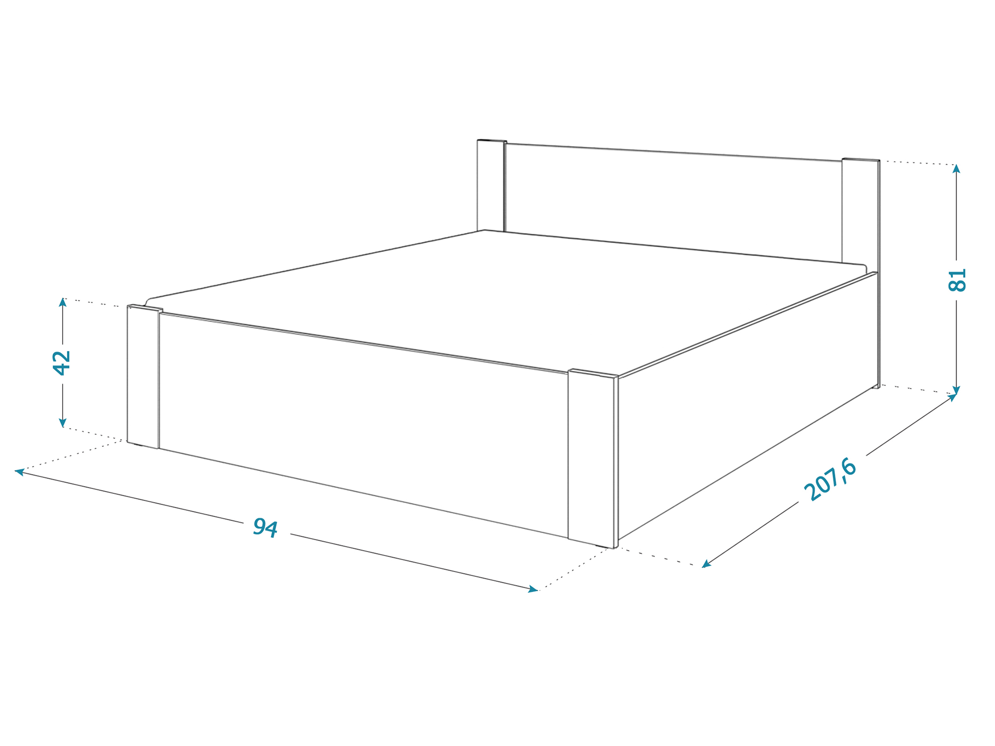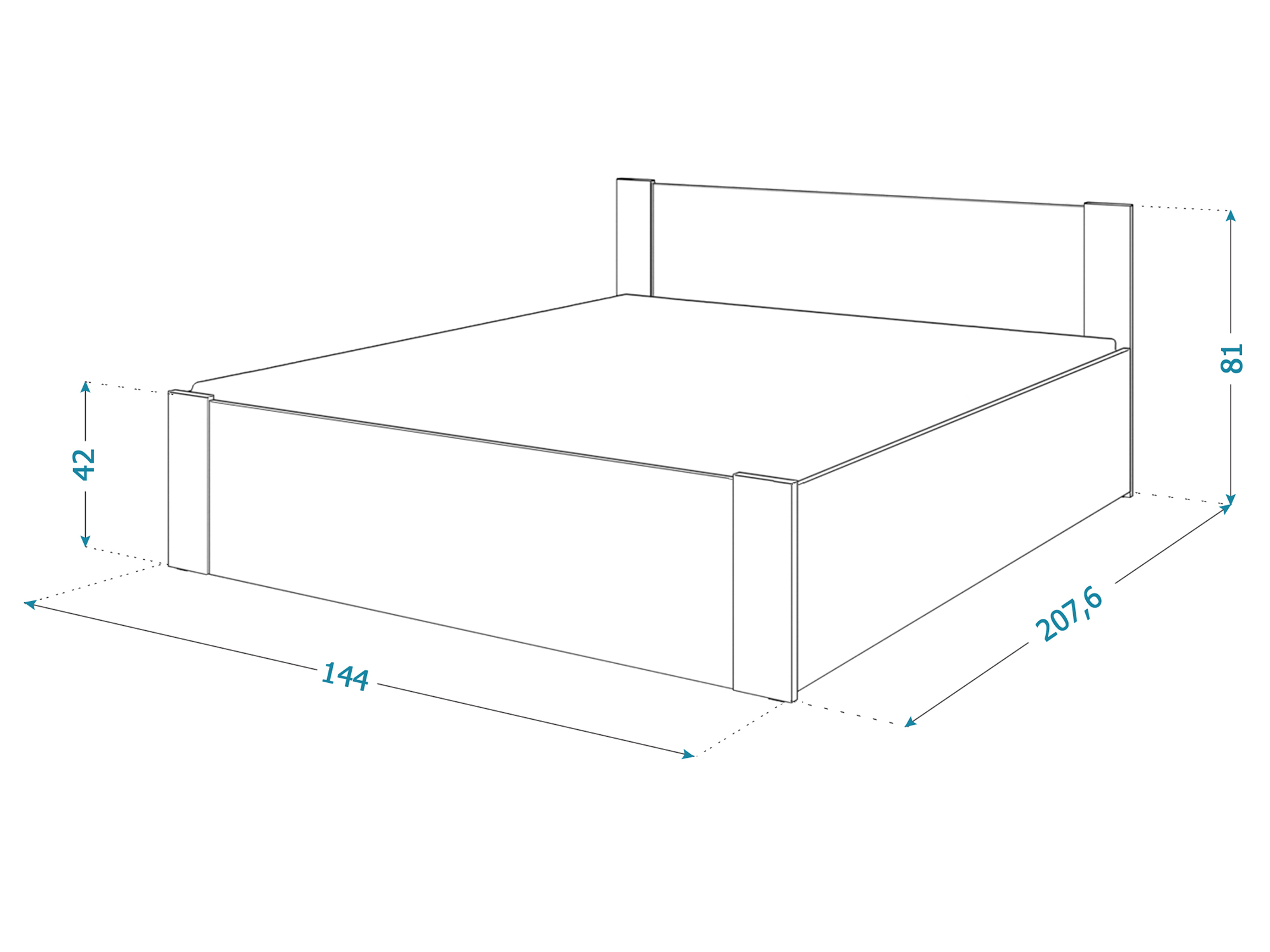 - Powierzchnia spania: 120×200, 140×200, 160×200, 180×200 cm