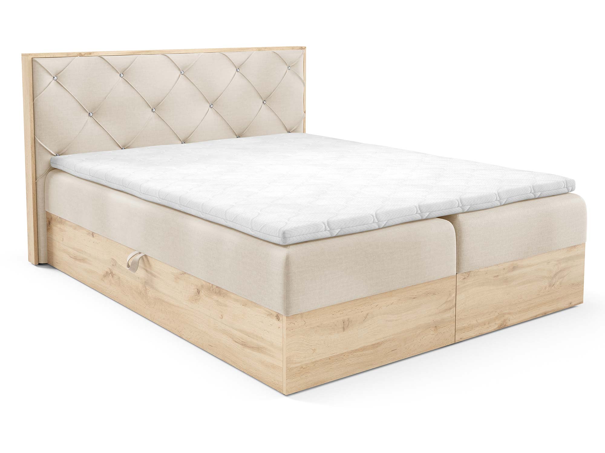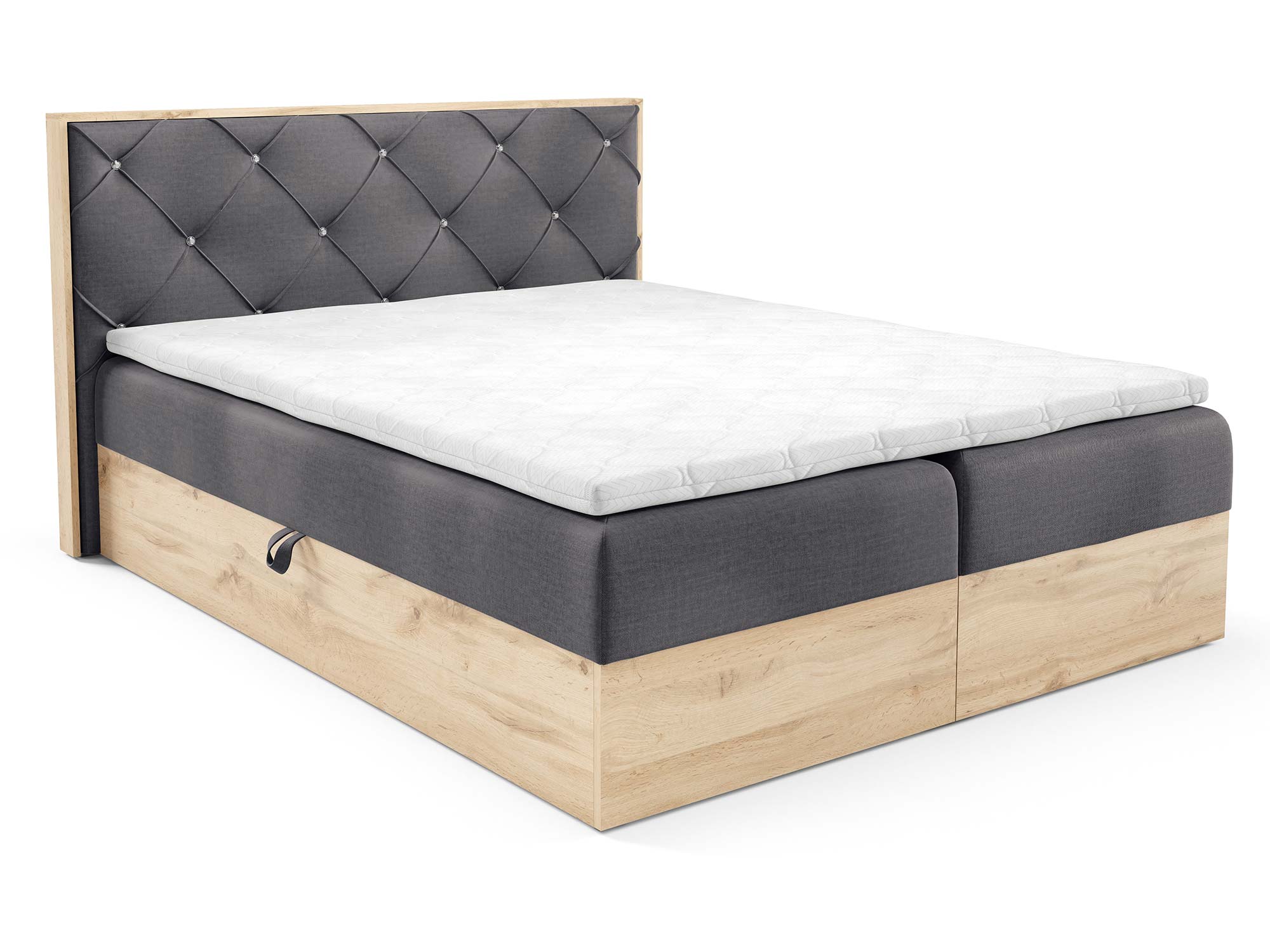 Wyobraź sobie sypialnię, w której króluje styl, elegancja i harmonia. Łóżko z pojemnikiem klasyczne Mizon 12 zostało stworzone po to, aby łączyć piękno klasycznego designu z funkcjonalnością, której potrzebujesz na co dzień. Dzięki pojemnym skrzyniom na pościel, pikowanemu zagłowiu zdobionemu imitacją kryształków Svarowskiego oraz solidnej konstrukcji z płyty laminowanej w kolorze dąb sonoma, to łóżko staje się prawdziwą ozdobą Twojej sypialni. A jednocześnie zapewnia wygodę i praktyczność, które ułatwiają życie.
