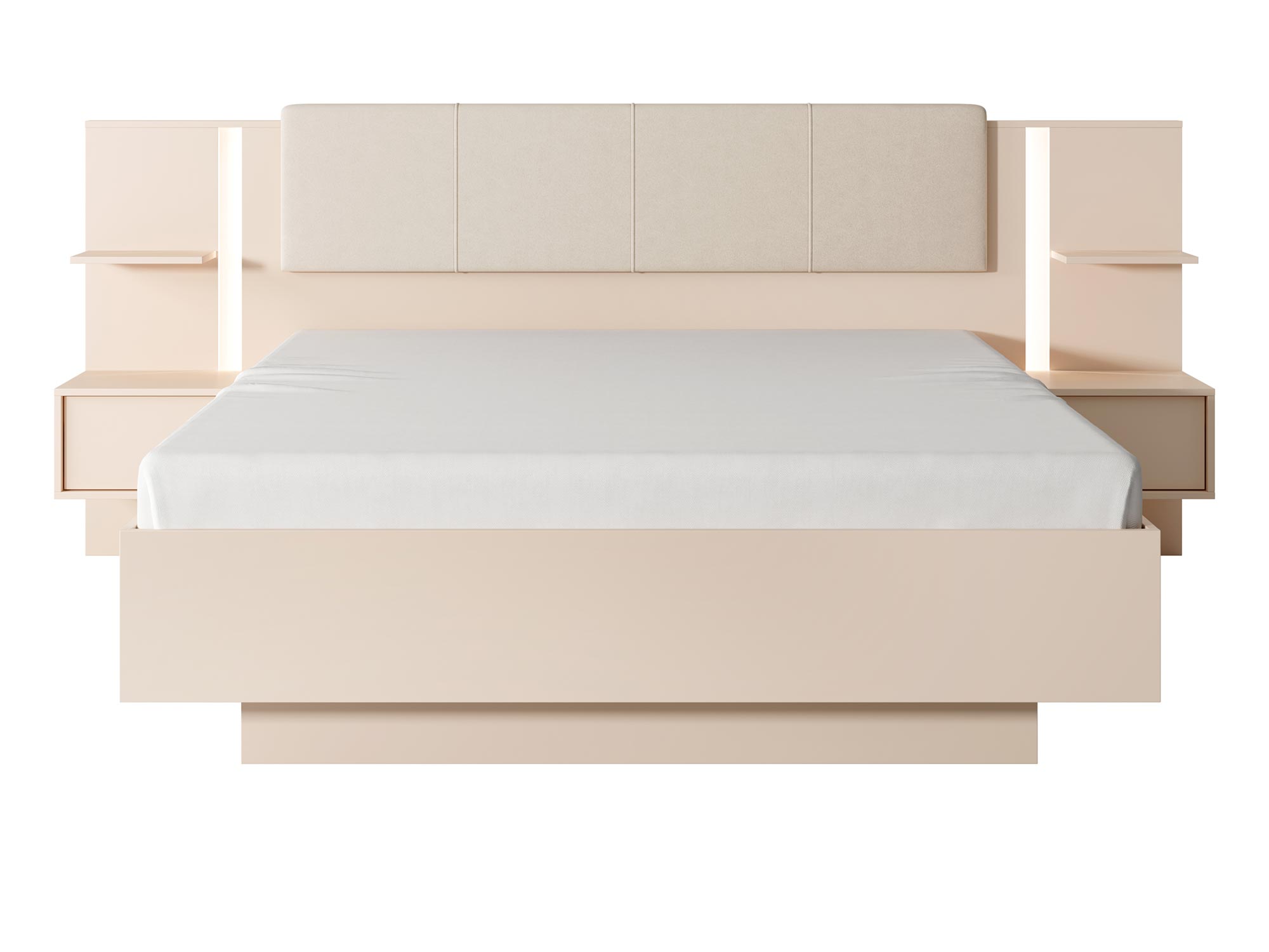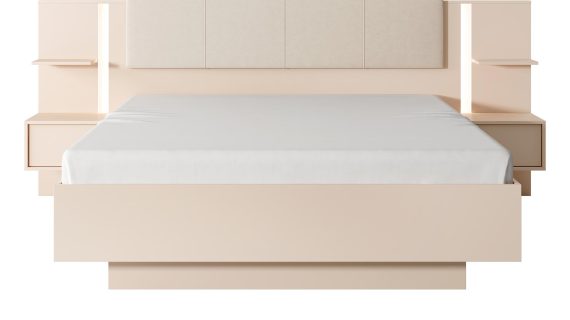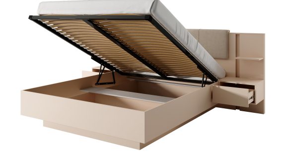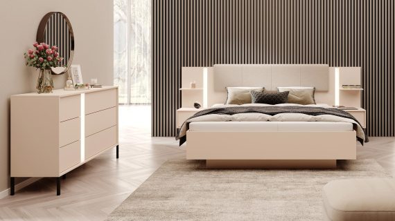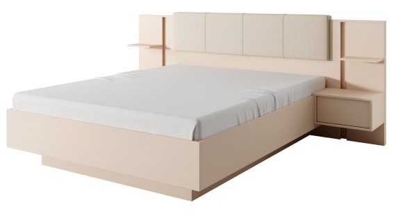 Nowoczesne Łóżko ze Stolikami Nocnymi Solezza to idealne rozwiązanie dla tych, którzy pragną połączyć nowoczesny design z wysoką funkcjonalnością. Wykonane z najwyższej jakości materiałów, gwarantuje trwałość i estetykę. Ponadto, innowacyjne rozwiązania techniczne zapewniają komfort użytkowania. Dzięki subtelnej beżowej kolorystyce i nowoczesnemu designowi, łóżko Solezza doskonale wkomponuje się w każdą sypialnię, dodając jej elegancji i stylu.