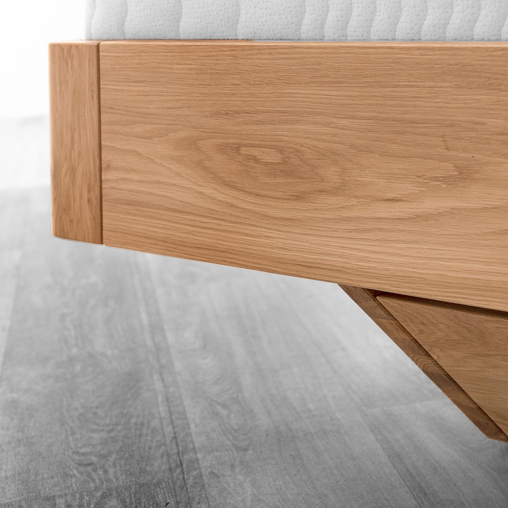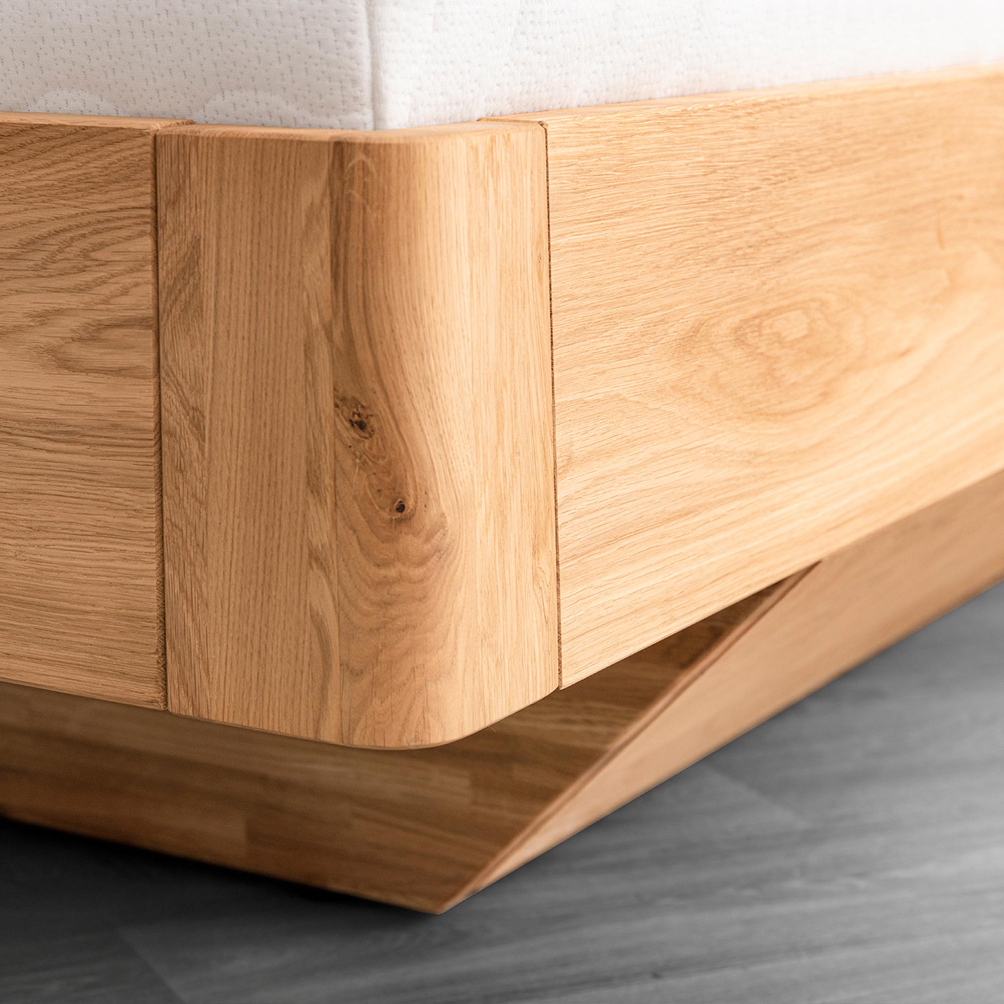 Garo B czerpie siłę z natury. Lity dąb — twardy, stabilny i szlachetny — pięknie się starzeje, a jego rysunek słojów wprowadza do sypialni ciepło i spokój. Zastosowany olejowosk nie tylko chroni drewno, ale też wydobywa jego naturalny kolor i subtelny połysk o satynowym wykończeniu. Drobne sęki i różnice tonów to znak autentyczności — każdy egzemplarz jest trochę inny, tak jak Twoje wnętrze.