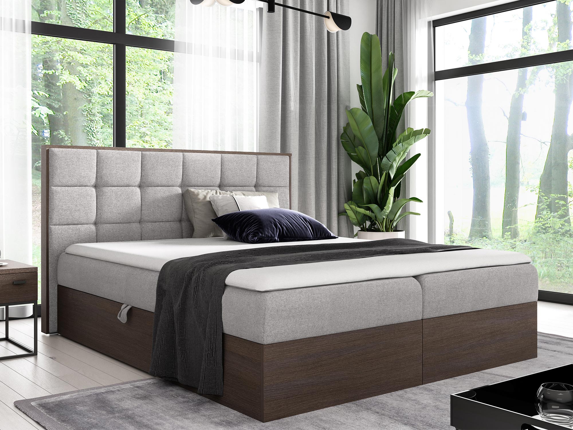 Jeśli marzysz o sypialni, która łączy nowoczesny industrialny styl z wysokim komfortem, Tapicerowane Łóżko BRAGA 1 z Drewnianymi Akcentami to idealne rozwiązanie. To łóżko, zaprojektowane z myślą o funkcjonalności i elegancji, jest doskonałym wyborem do każdego wnętrza, które stawia na surowość formy i minimalistyczny wygląd. Dzięki solidnej konstrukcji, nowoczesnym materiałom i praktycznym rozwiązaniom, BRAGA 1 łączy w sobie estetykę i wygodę użytkowania, co czyni je wyjątkowym elementem wyposażenia sypialni.