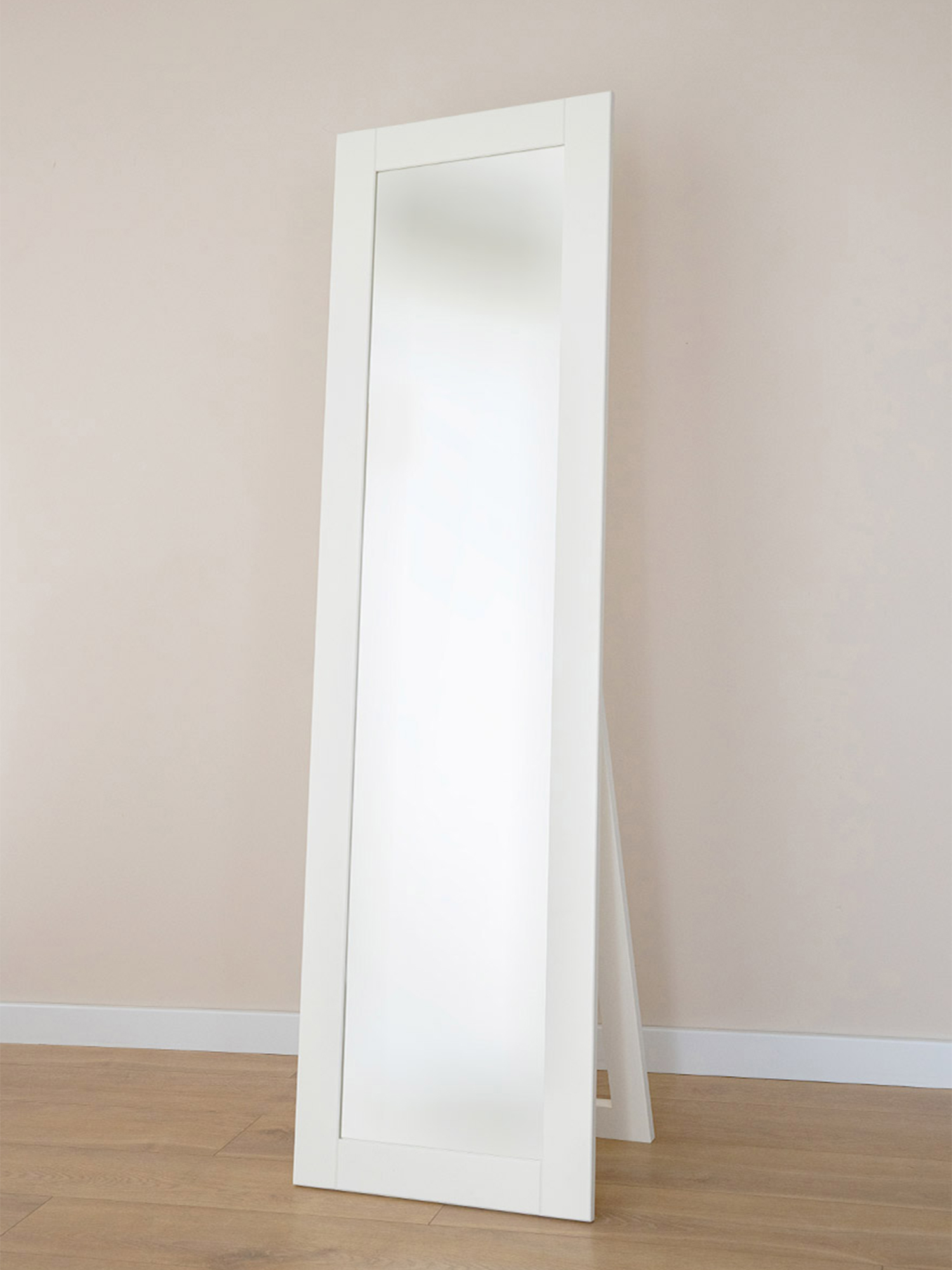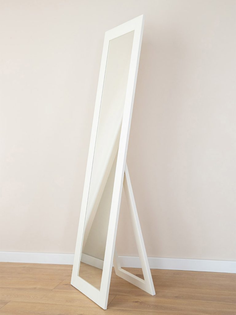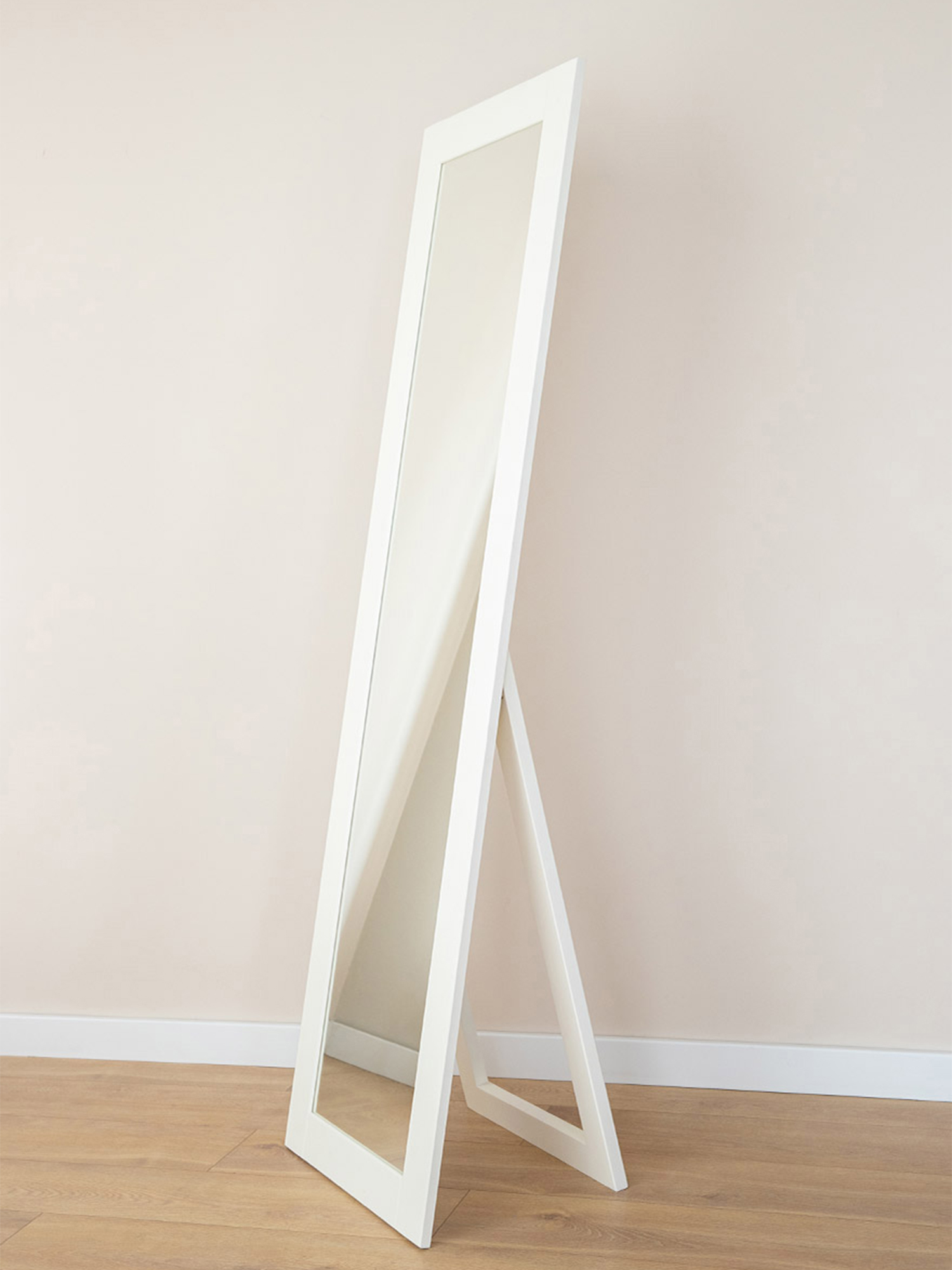 Lustro stojące białe – minimalistyczny detal, który robi wrażenie