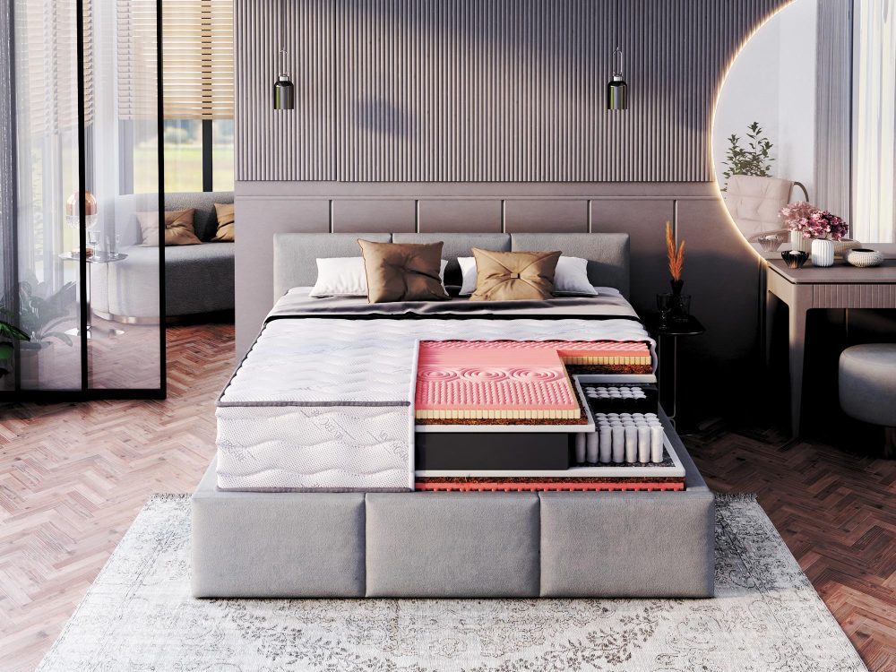 | Wypełnienie | 7- strefowe sprężyny kieszeniowe, kokos, lateks, pianka poliuretanowa, pianka termoplastyczna VISCO, profilowana pianka VISCO, przekładka tapicerska |