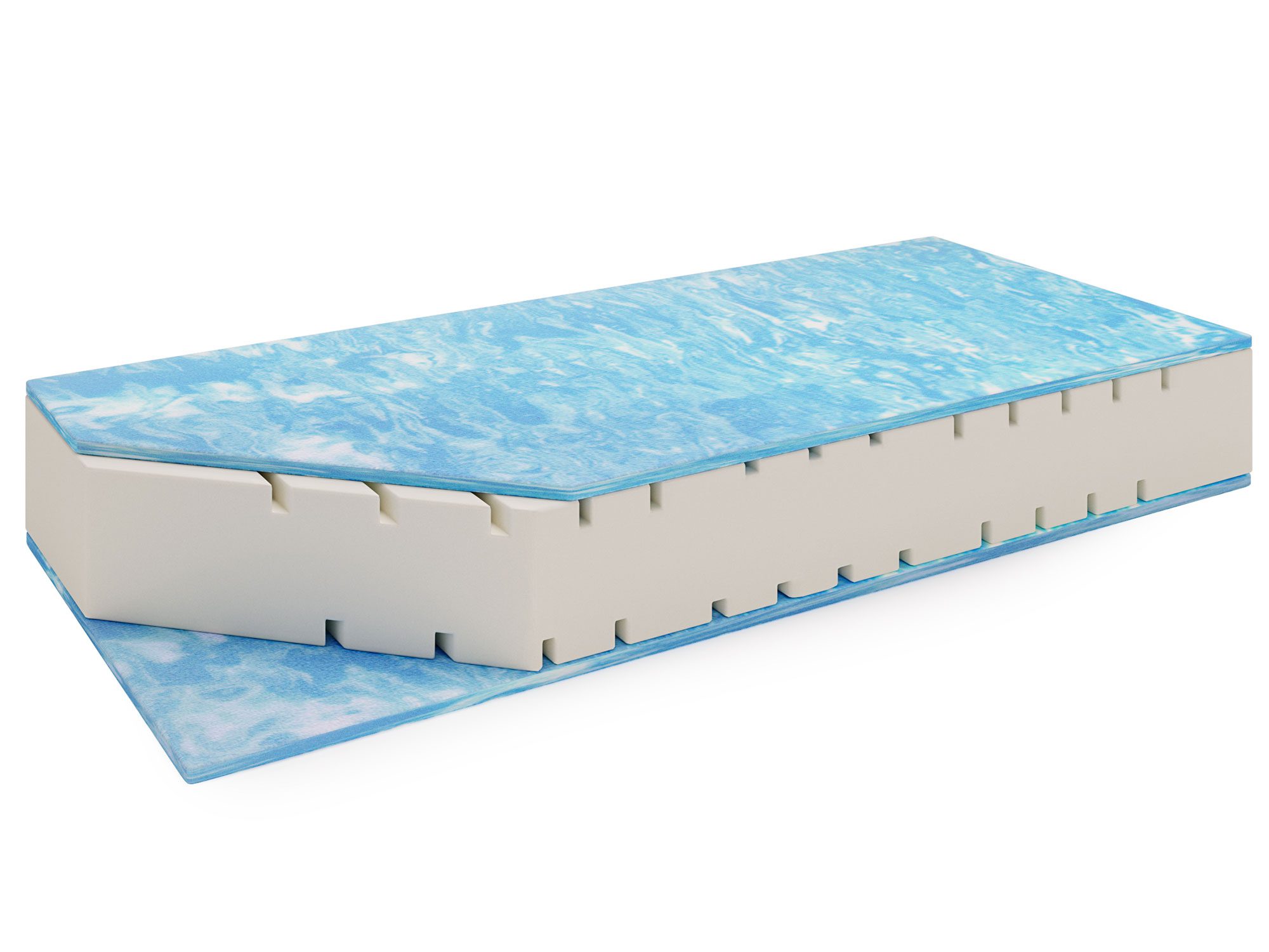 - Dolna warstwa pianki Gel Foam (2,5 cm): Kolejna warstwa Gel Foam nie tylko zapewnia komfort termiczny, ale także absorbuje ruchy, minimalizując ich przenoszenie, co sprawia, że materac MEREMID jest idealny dla par.