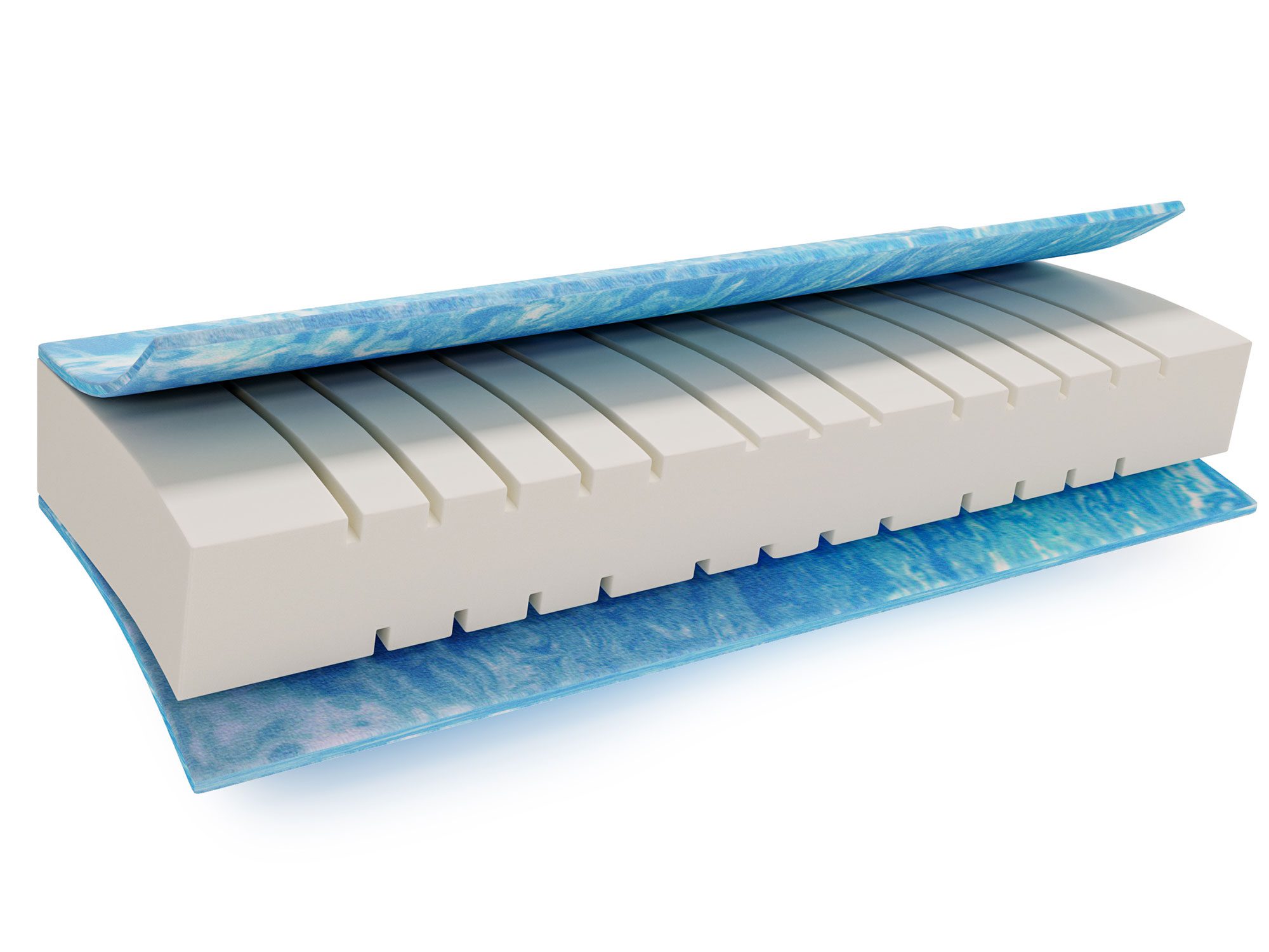 - Warstwa pianki Gel Foam (2,5 cm): Górna warstwa chłodzącej pianki Gel Foam zapewnia przyjemne uczucie chłodu, co jest szczególnie korzystne w cieplejsze noce. Dzięki właściwościom termoregulacyjnym ta warstwa zapobiega przegrzewaniu się, zapewniając optymalny komfort termiczny przez całą noc.