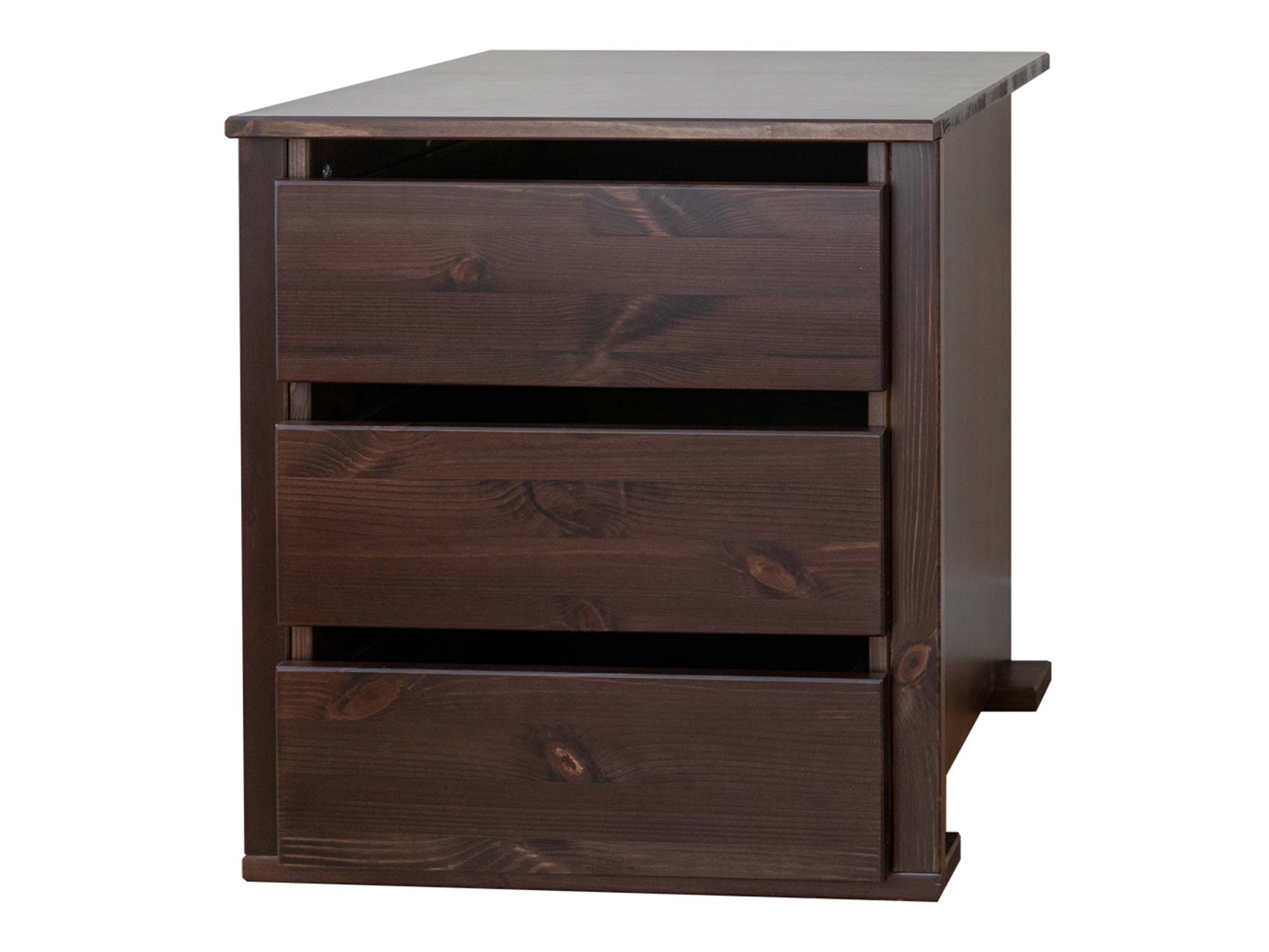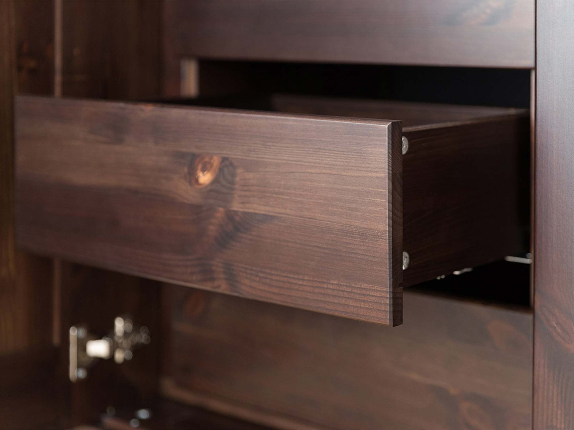 Ciepły, głęboki kolor tabacco dodaje wnętrzu przytulności i świetnie odnajduje się w stylach: prowansalskim, rustykalnym, skandynawskim i nowoczesnym. Harmonijne proporcje bryły oraz gładko wykończone krawędzie sprawiają, że moduł wygląda elegancko zarówno wewnątrz bieliźniarki, jak i jako osobny element w garderobie. Każda z trzech szuflad działa na prowadnicach z systemem cichego domyku – bez trzaskania, bez zacinania, zawsze płynnie i lekko. To drobny detal, który docenisz zwłaszcza rano lub późnym wieczorem, kiedy reszta domu jeszcze śpi.