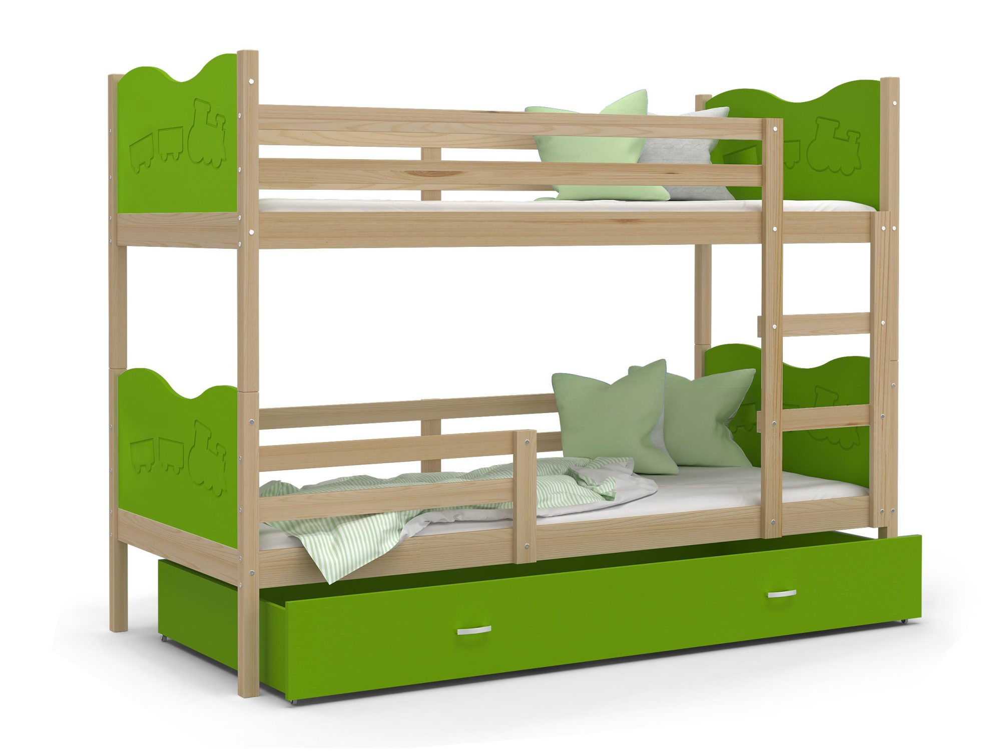 Łóżko piętrowe dla dziecka JERRY to mebel, który charakteryzuje się wygodą, bezpiecznym użytkowaniem i oryginalnym designem. Wytrzymała i trwała konstrukcja gwarantują odporność łóżka a także jego wytrzymałość. Mebel zrobiono z wysokiego gatunku płyty MDF i sosnowego drewna o zaokrąglonych krawędziach i wyprofilowanymi ściankami, które mają za zadanie zagwarantować bezpieczeństwo śpiącym dzieciom. Do łóżka dołączono pojemną wysuwaną na kółkach szufladę przeznaczoną do przechowywania pościeli, drabinkę która ułatwia wejście na wyższy poziom łóżka oraz barierki ochronne, które uniemożliwiają wypadnięcie dziecka, a także stelaż flex wykonany z osadzonych w plastikowych kieszonkach sprężynujących listw. W opcji jest też piankowy materac w pokrowcu o grubości 7 cm. Przez wzgląd na bogactwo estetyki i form w jakich urządzono dziecięce pokoje nasze produkty są dostępne w wielu kolorach oraz wzorach do wyboru. Do łóżka został dodany zestaw przeznaczony do montażu jak również instrukcja.