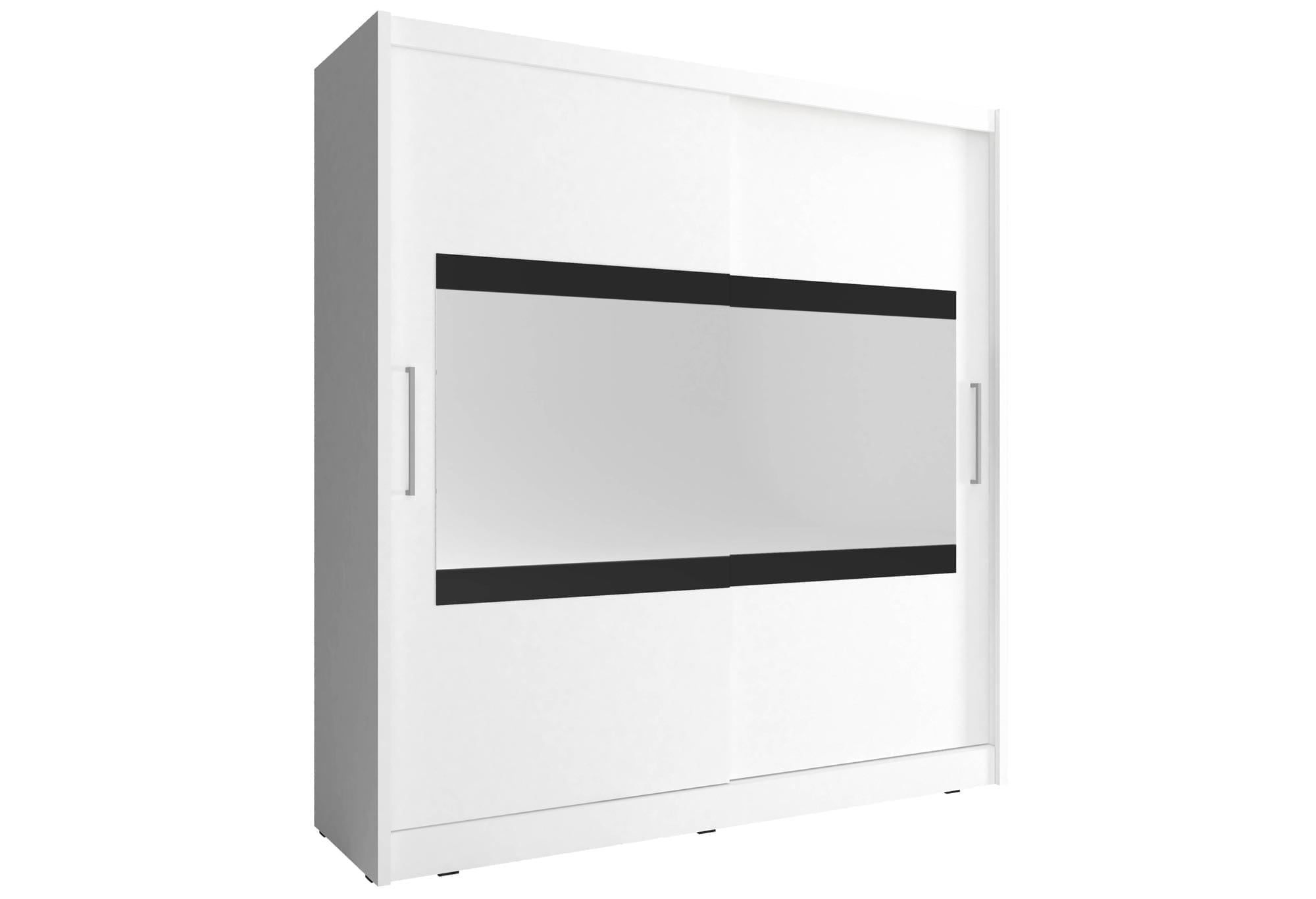 Funkcjonalna szafa ubraniowa FEBUS IV 200cm doskonała do sypialni oraz garderoby. Co więcej wyposażona w funkcjonalne przesuwne drzwi z stylowym lustrem na froncie. Dodatkowym atutem jest dostępność w trzech wersjach kolorystycznych do wyboru. Wykonana z wysokiej klasy materiałów.