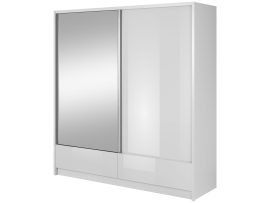 Przesuwna szafa z lustrzanymi frontami ESKULAP II 150 cm wykonana jest z wysokiej klasy materiałów. Dodatkowo wyposażona w przesuwne drzwi z lustrami na froncie. Z pewnością funkcjonalność i pojemność szafy zachwyci najbardziej wymagającego klienta.