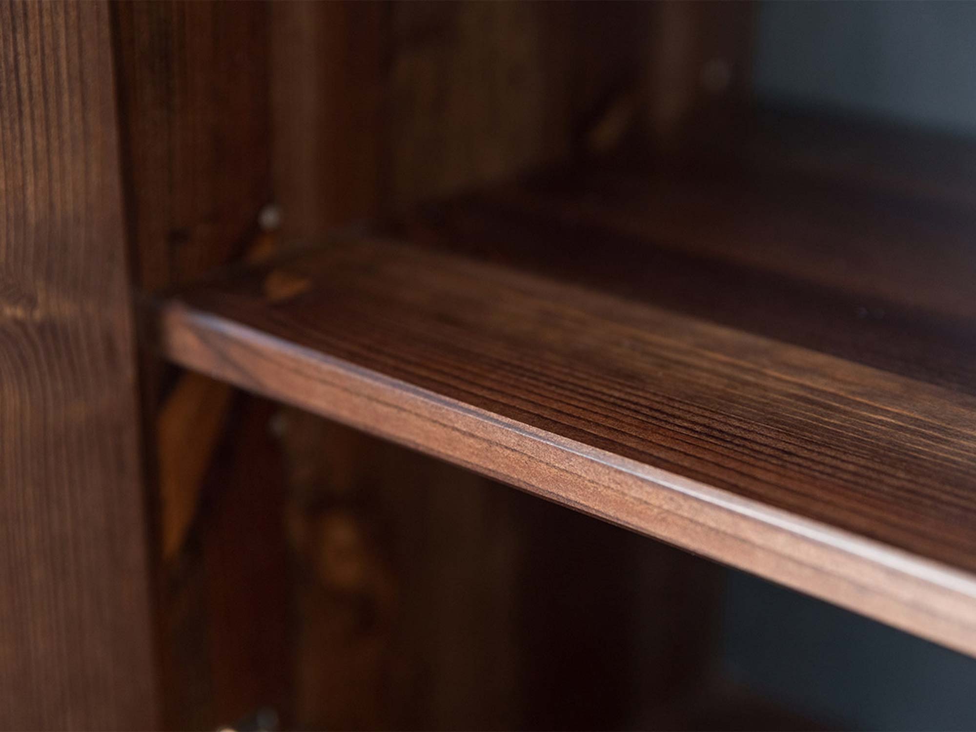 Ta półka to nie „dodatek z przypadku”, lecz przemyślany element systemu Kalari. Wykonana z litego drewna sosnowego, pięknie eksponuje naturalne słoje i sęki, a półtransparentne wykończenie farbą wodną (70% krycia) pozwala drewnu „oddychać”. Efekt? Szlachetny, matowy wygląd i powierzchnia, która jest odporna na codzienne użytkowanie. Każdy egzemplarz jest unikatowy – bo tak właśnie działa natura, a my pozwalamy jej grać pierwsze skrzypce.