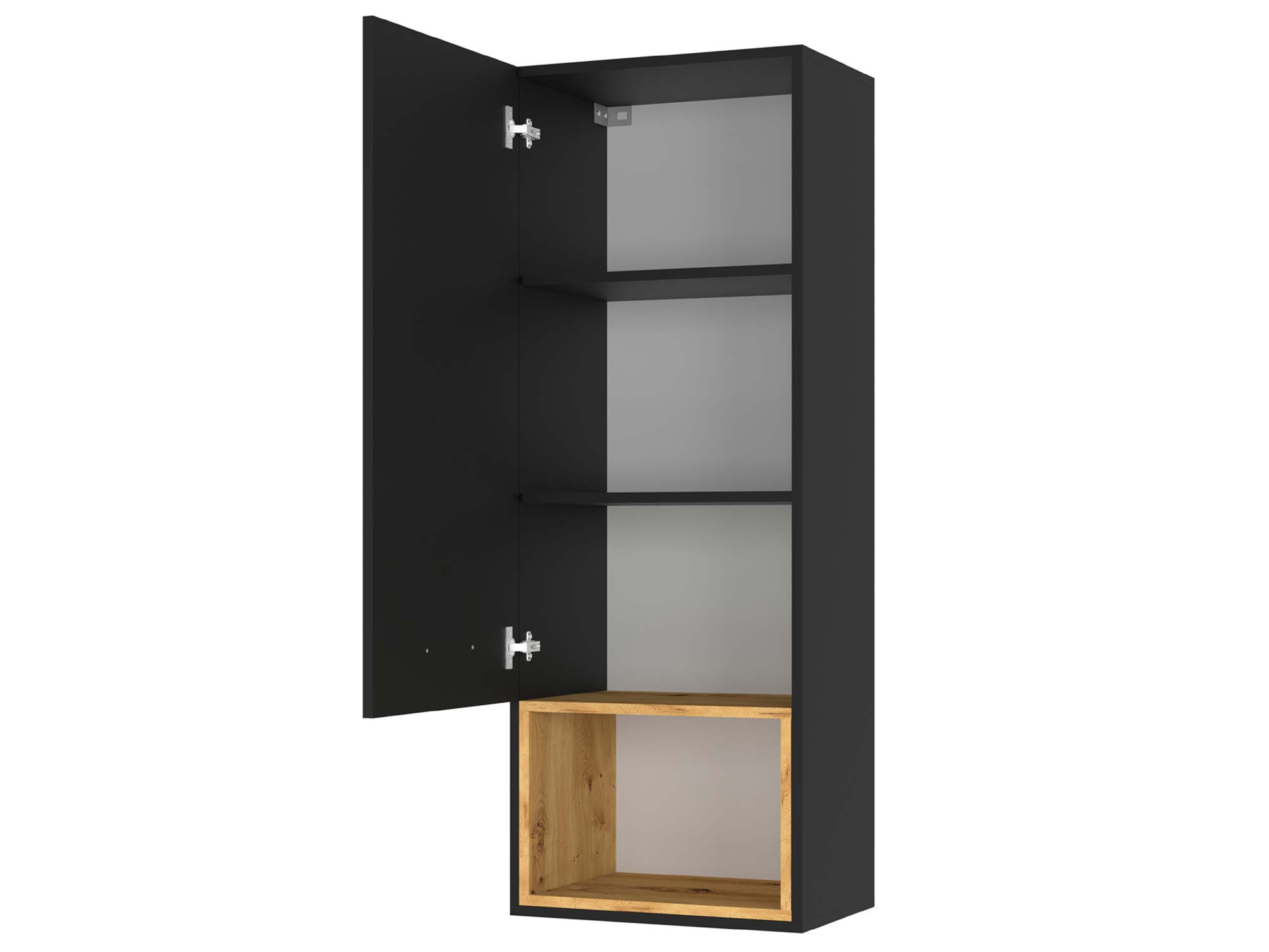 • Nowoczesny styl: Połączenie czarnego matu i dębu artisan idealnie pasuje do wnętrz o nowoczesnym charakterze.