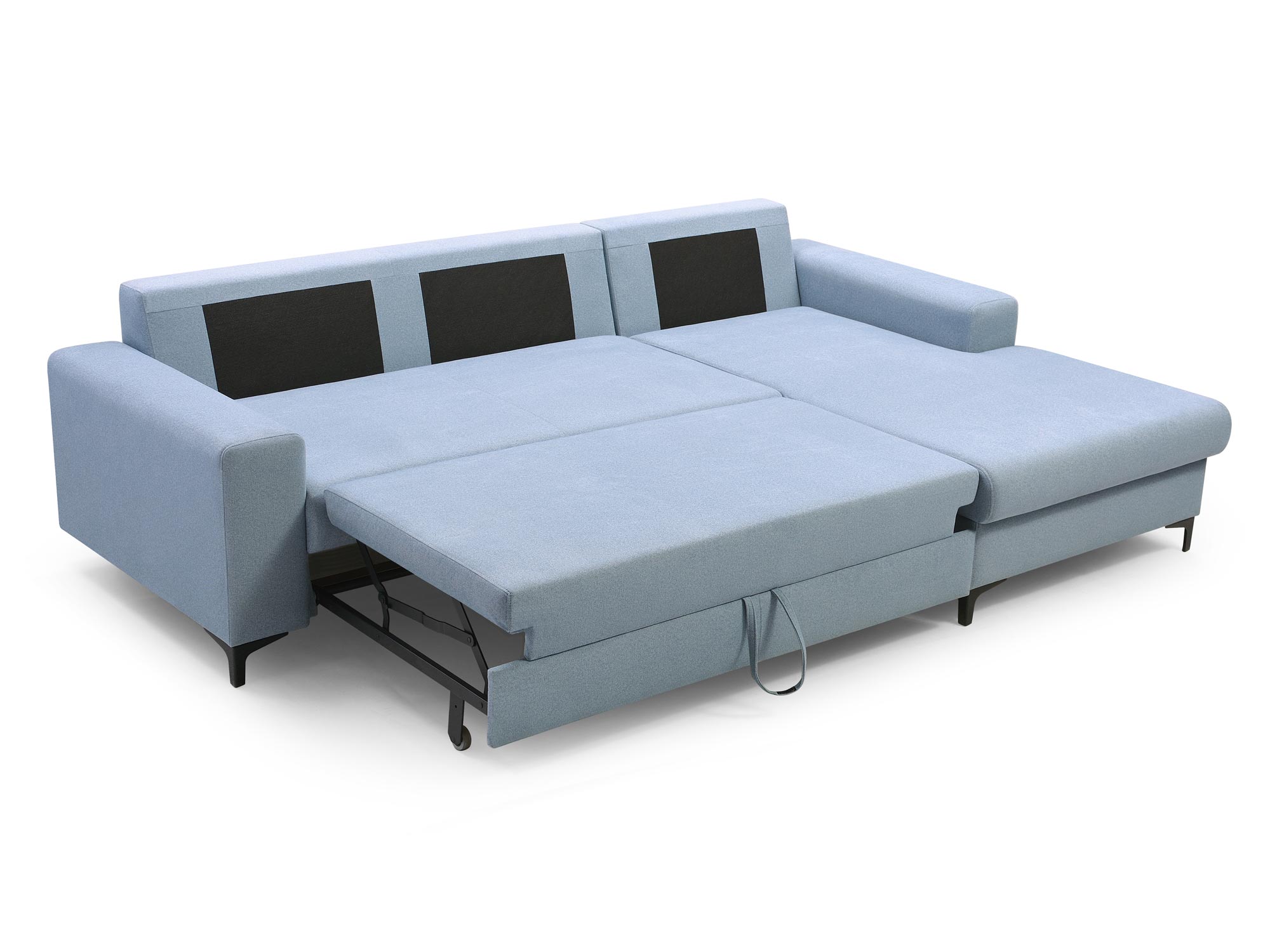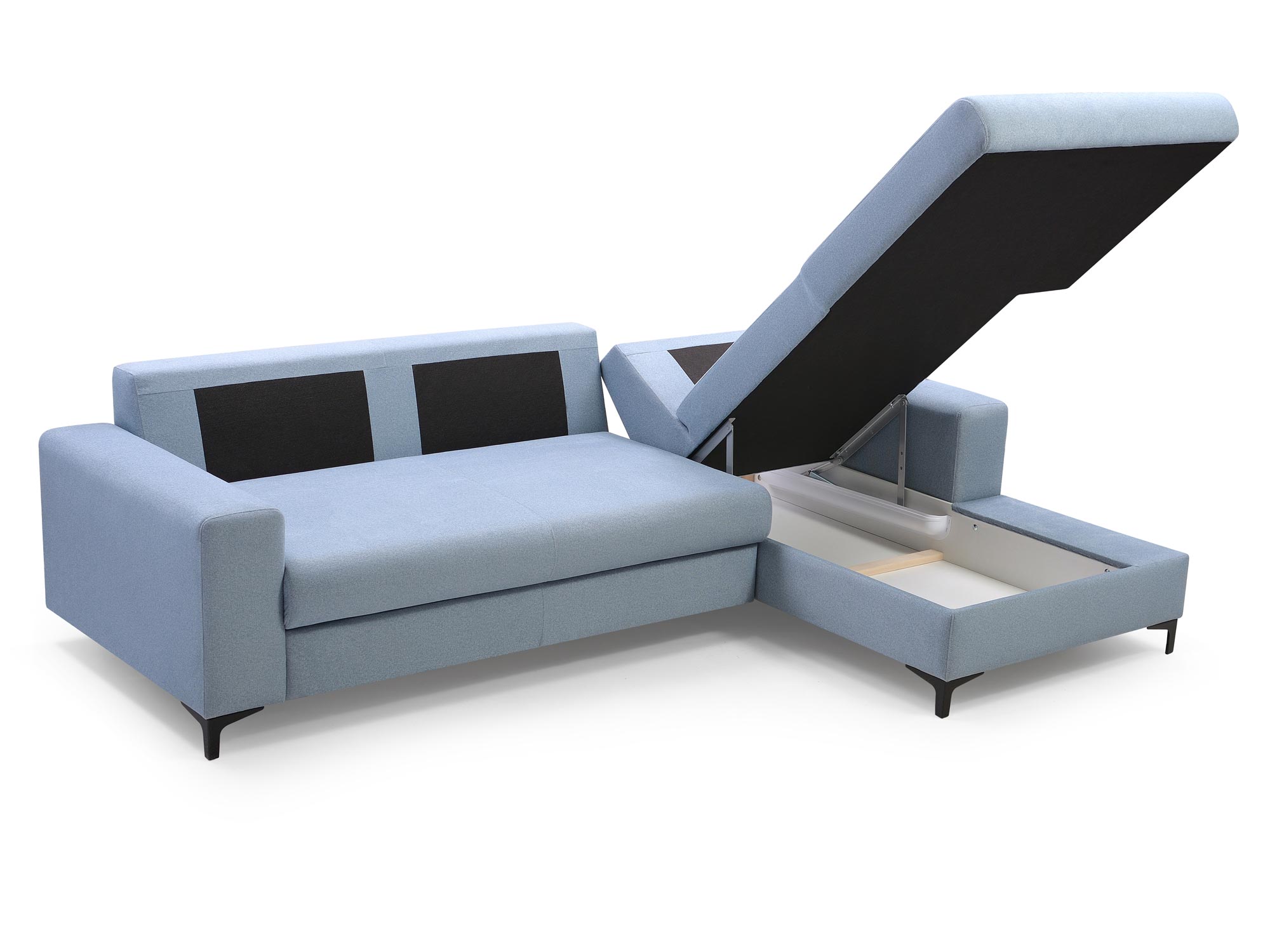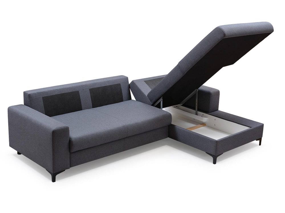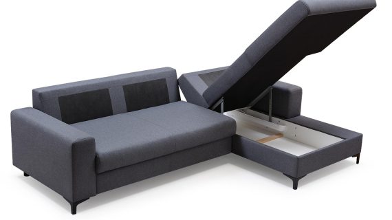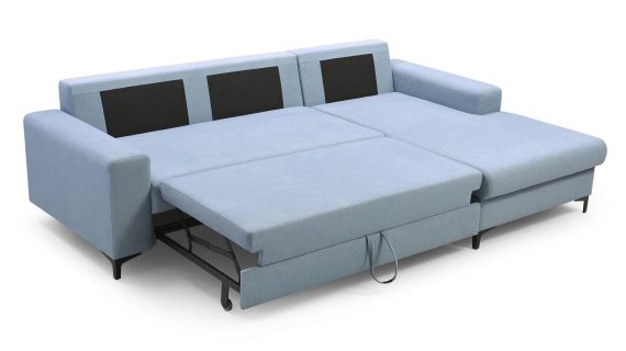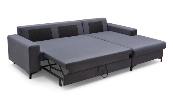 - Pojemnik na pościel: Praktyczny pojemnik na pościel zapewnia dodatkowe miejsce do przechowywania, pomagając utrzymać porządek w salonie. Ponadto, pojemnik jest łatwo dostępny dzięki automatycznemu mechanizmowi wspomagającemu rozkładanie, co znacznie ułatwia jego użytkowanie.