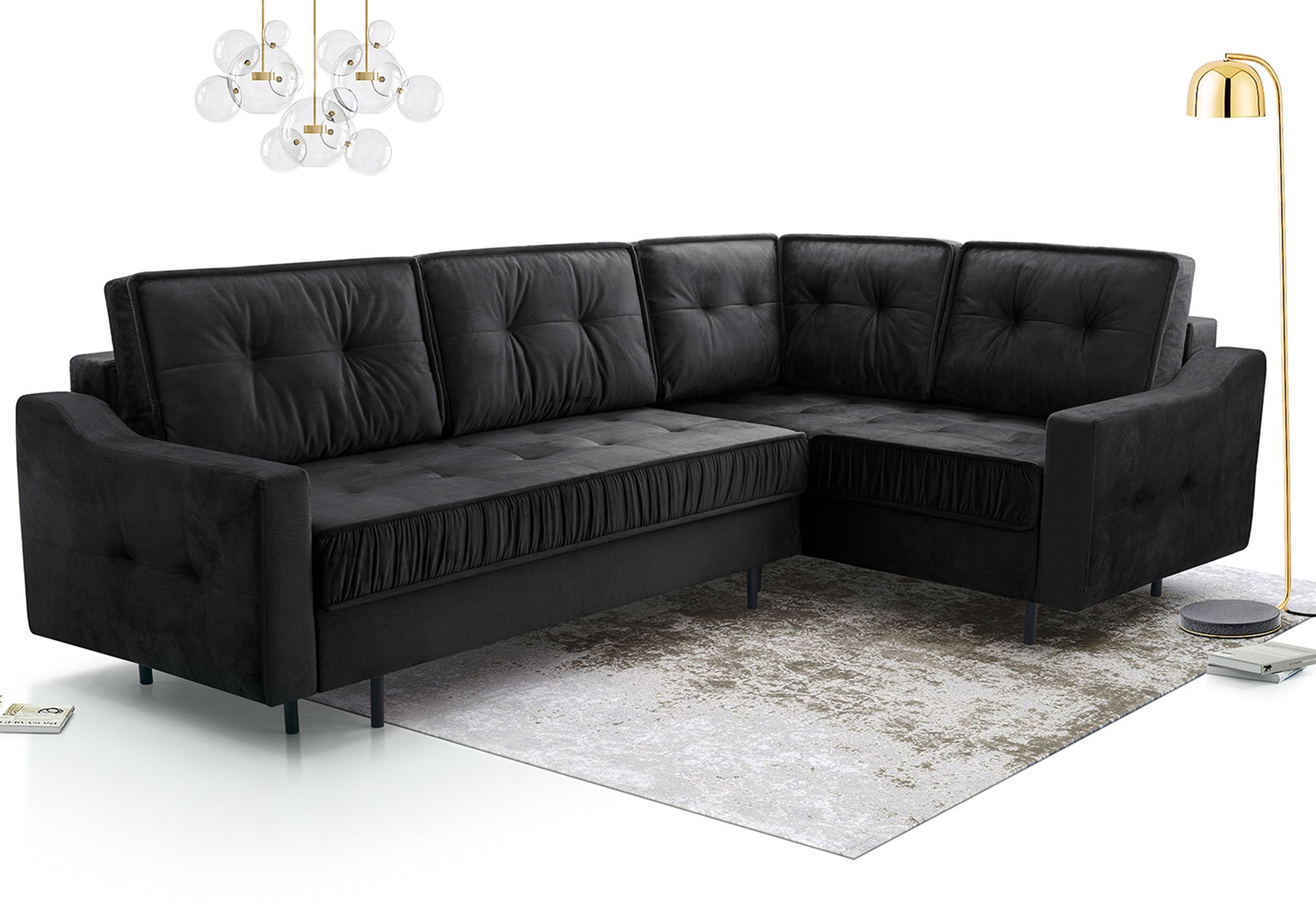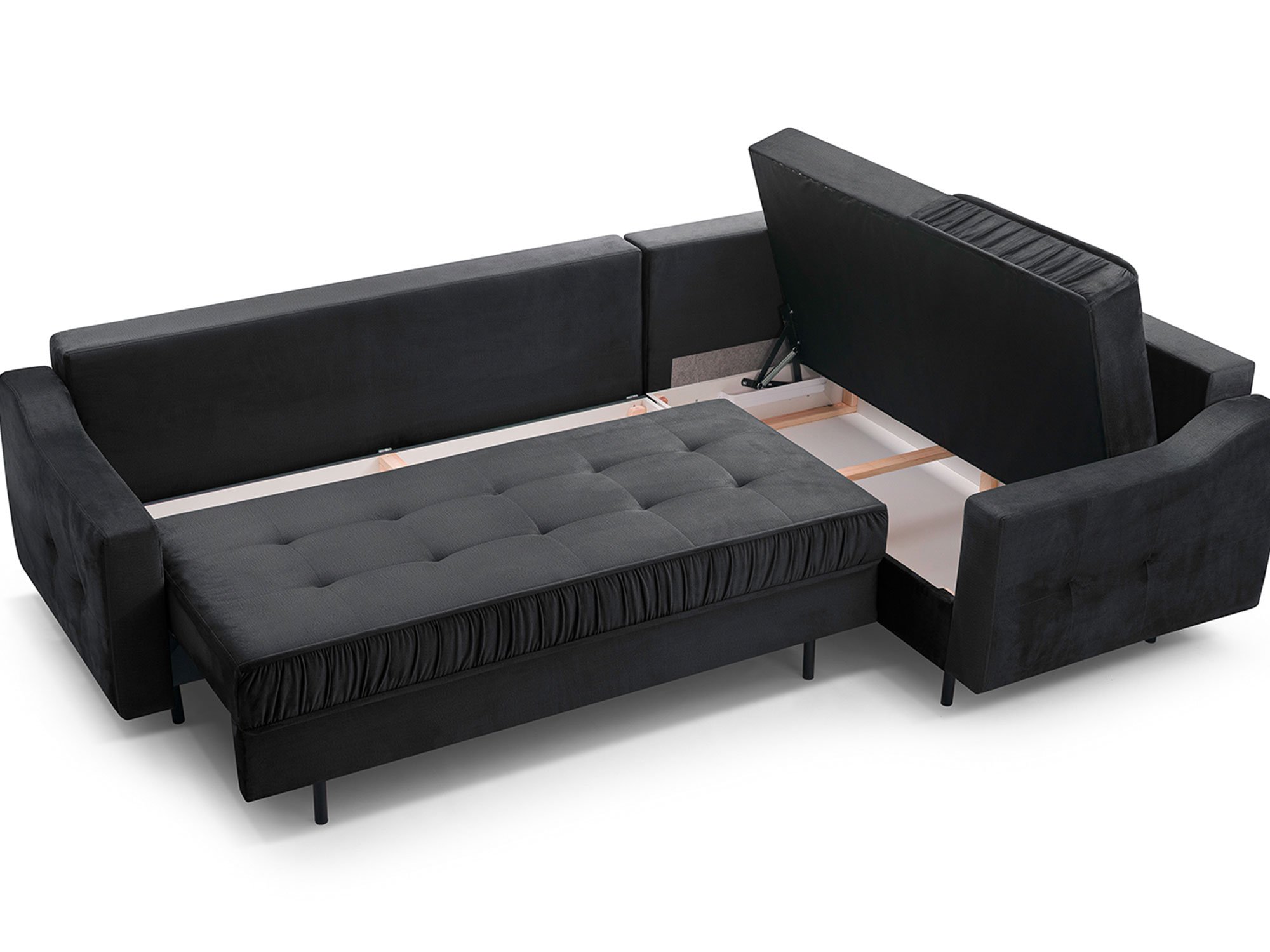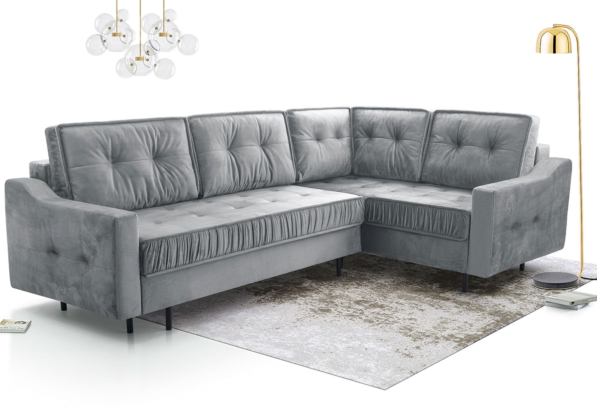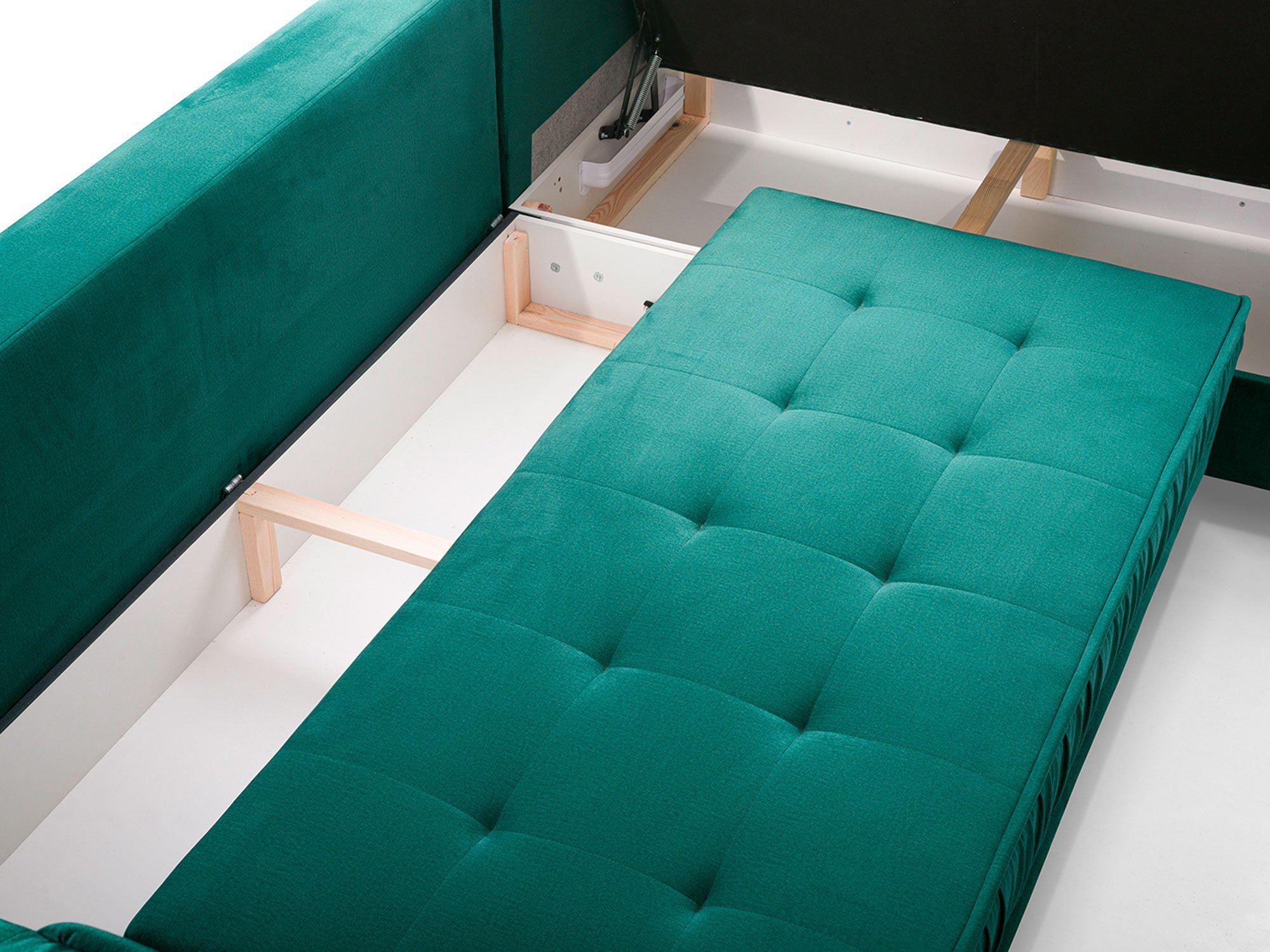 Kanapa Tulano została zaprojektowana z myślą o praktycznym wykorzystaniu przestrzeni. System rozkładania DL pozwala w prosty sposób zmienić ją w wygodne łóżko o powierzchni spania 250×147 cm. To rozwiązanie sprawdzi się doskonale podczas wizyty gości, jak i w codziennym użytkowaniu. Dodatkowo dwa pojemniki na pościel zapewniają odpowiednią ilość miejsca na przechowywanie kołder, poduszek czy koców, co ułatwia utrzymanie porządku w salonie.