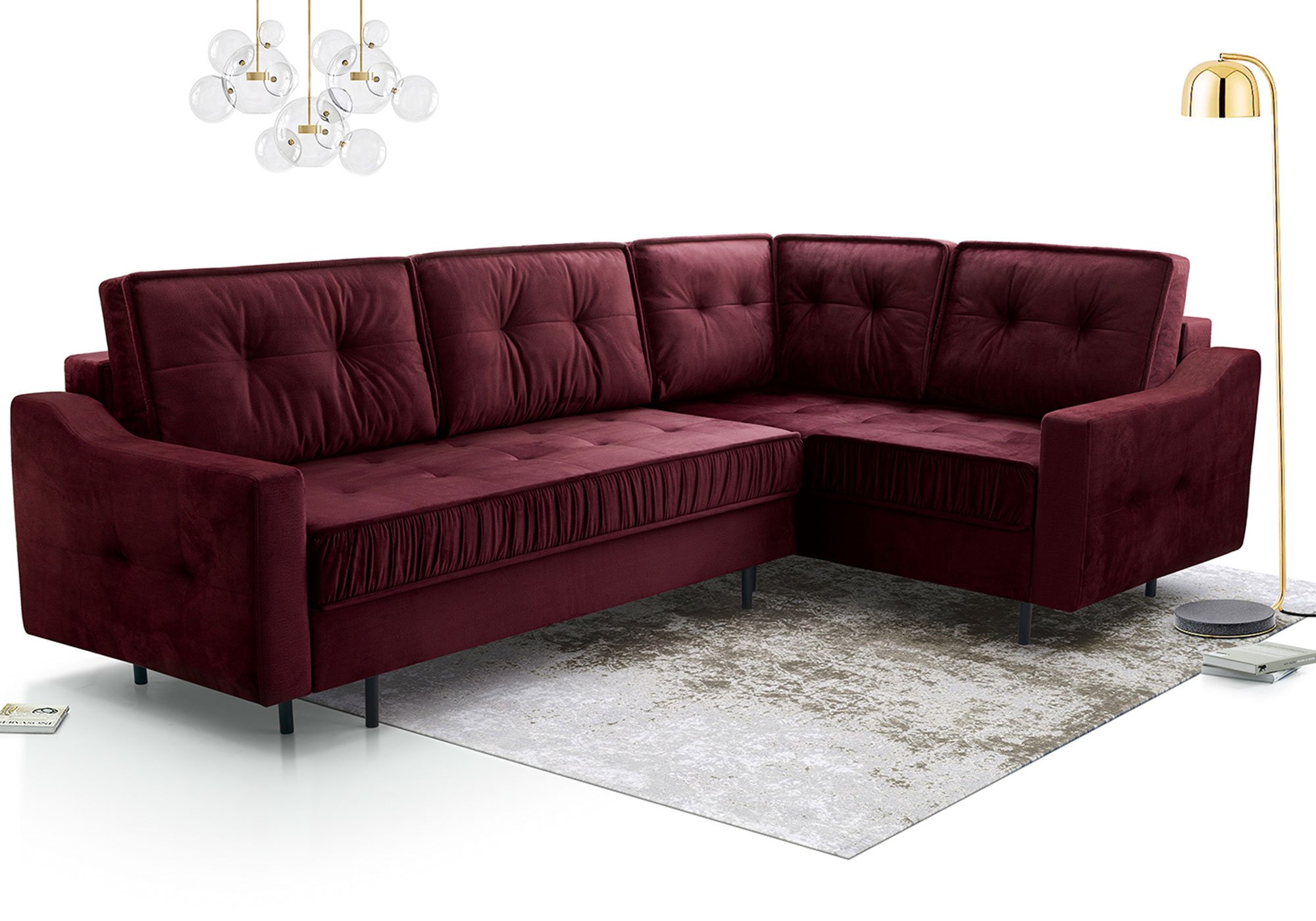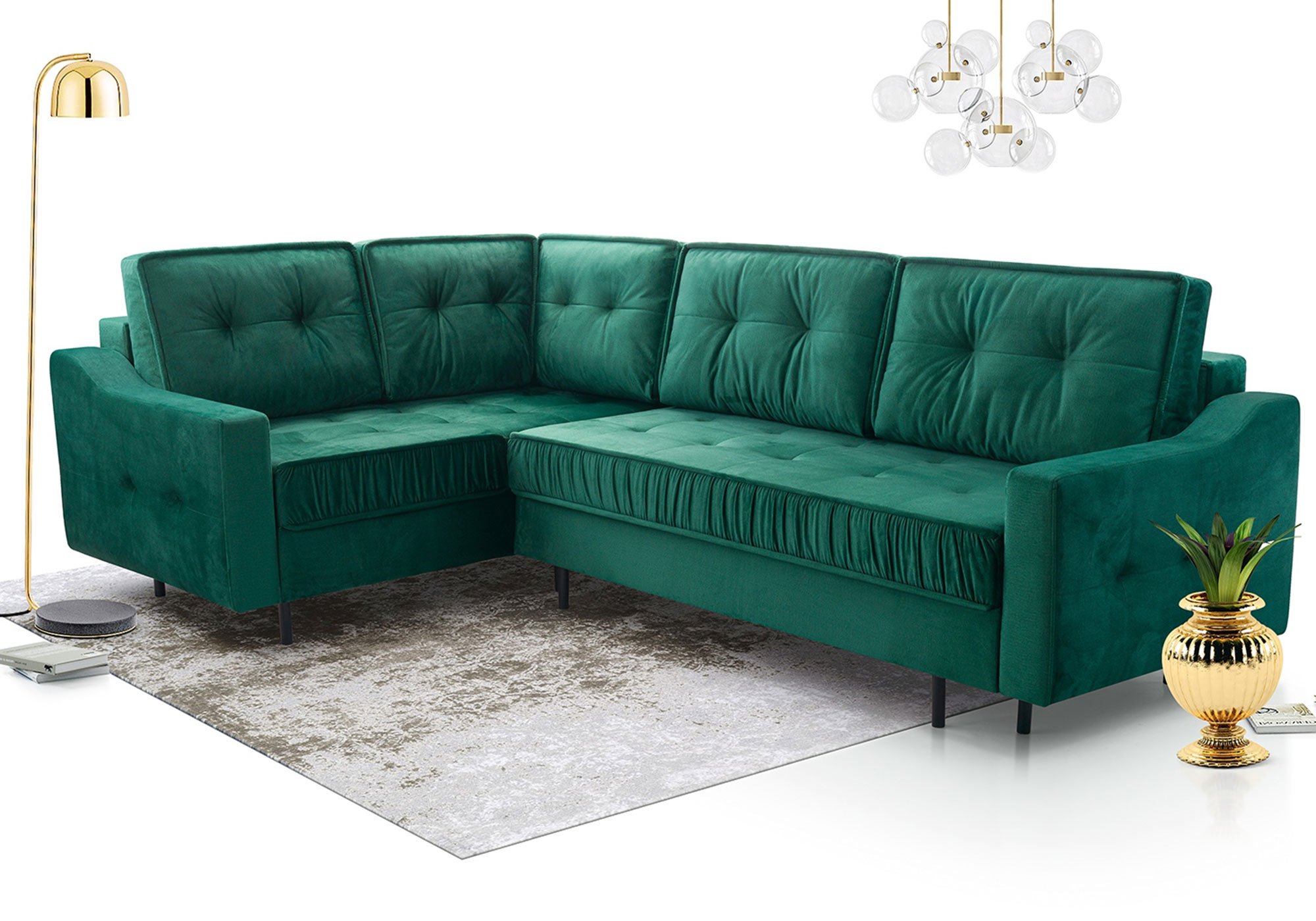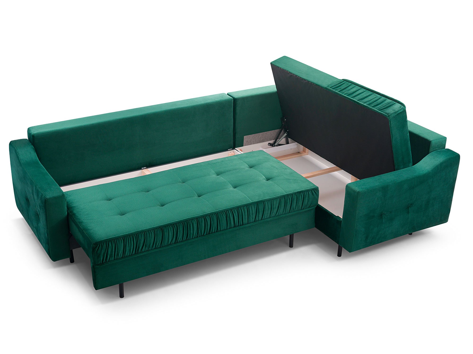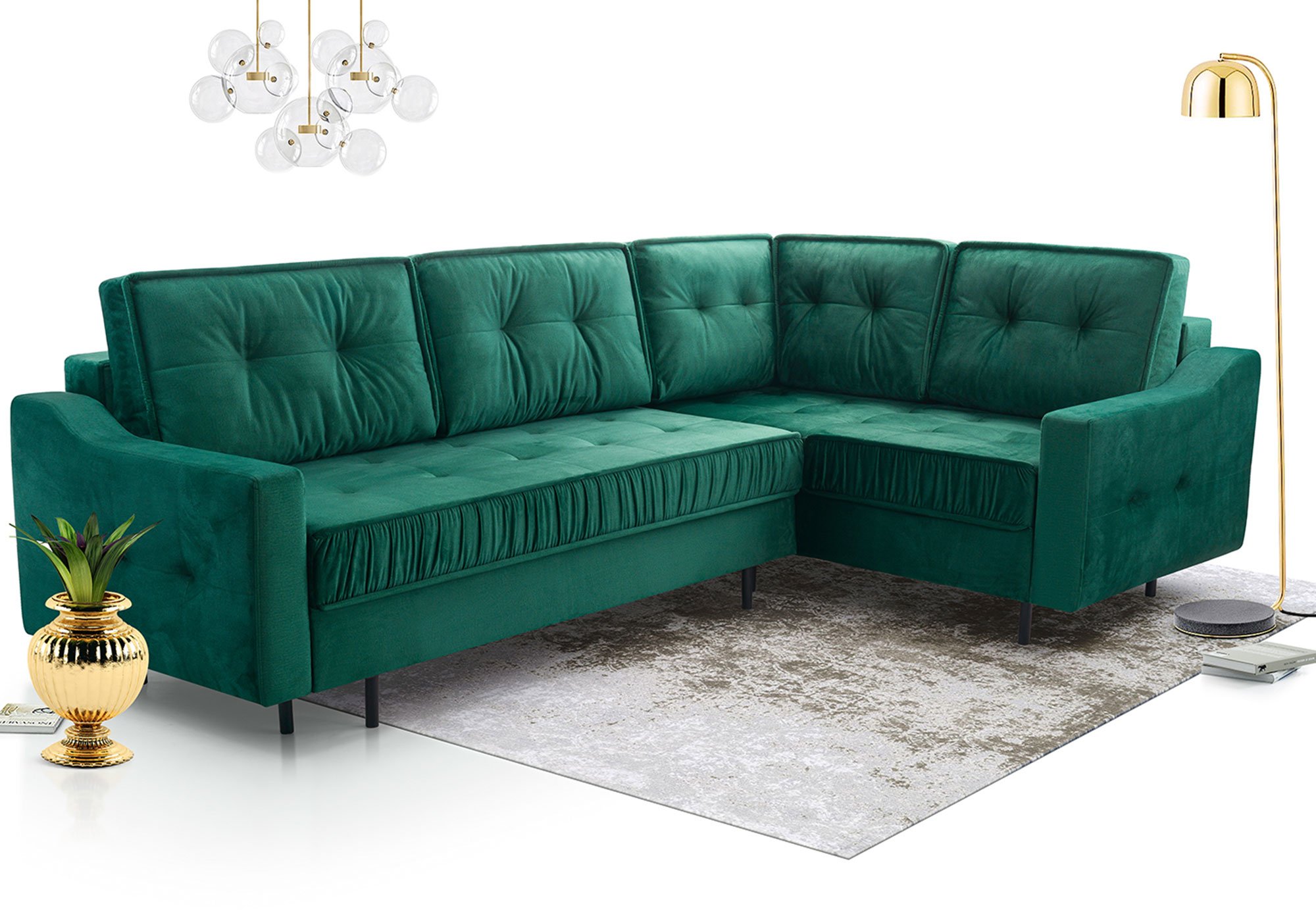 Kanapa Tulano została zaprojektowana z myślą o praktycznym wykorzystaniu przestrzeni. System rozkładania DL pozwala w prosty sposób zmienić ją w wygodne łóżko o powierzchni spania 250×147 cm. To rozwiązanie sprawdzi się doskonale podczas wizyty gości, jak i w codziennym użytkowaniu. Dodatkowo dwa pojemniki na pościel zapewniają odpowiednią ilość miejsca na przechowywanie kołder, poduszek czy koców, co ułatwia utrzymanie porządku w salonie.