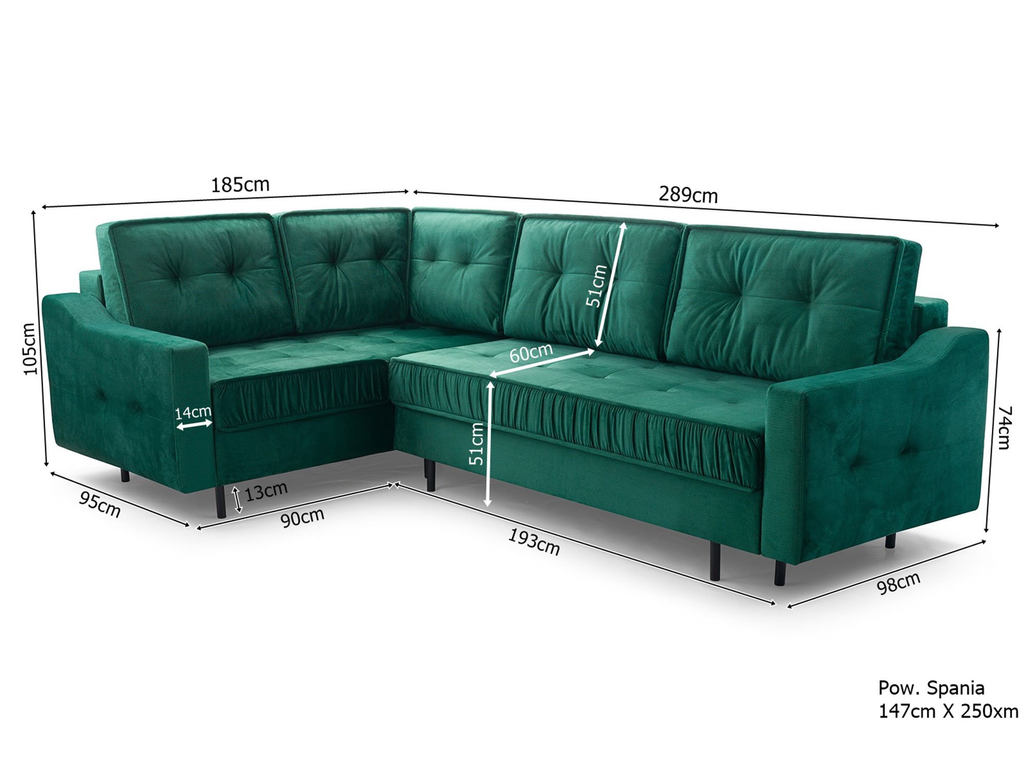 - Funkcja spania – system DL i powierzchnia spania 250×147 cm.